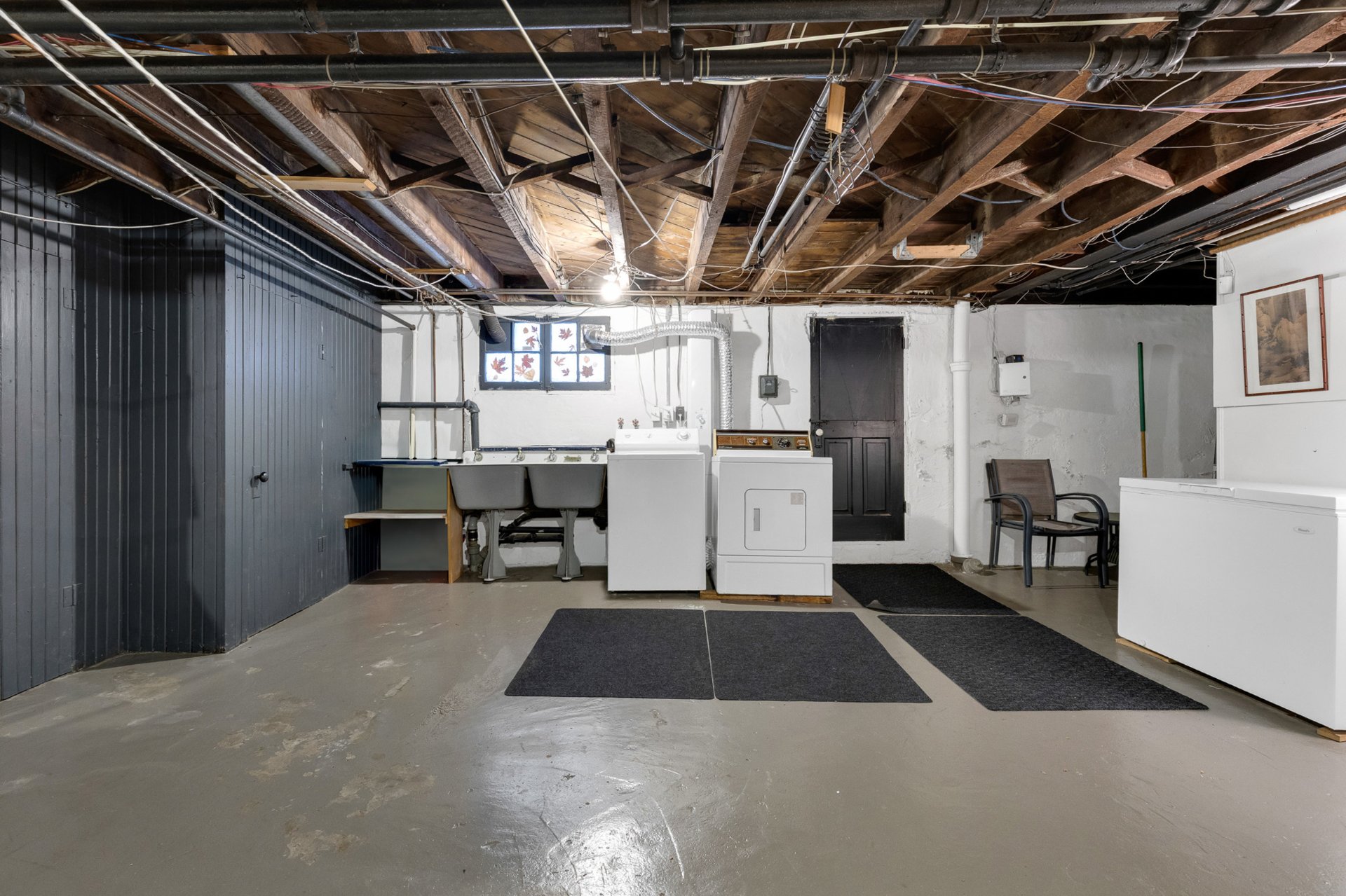 - Réfrigérateur, congélateur au sous-sol, cuisinière, four mural, four à micro-ondes, lave-vaisselle, lave-linge, sèche-linge, barbecue, rideaux, stores, luminaires (suspendus, appliques murales), système d'alarme, deux caméras, crochets à manteau en forme d'élan, système de filtration d'eau, petite table d'appoint dans la salle à manger.