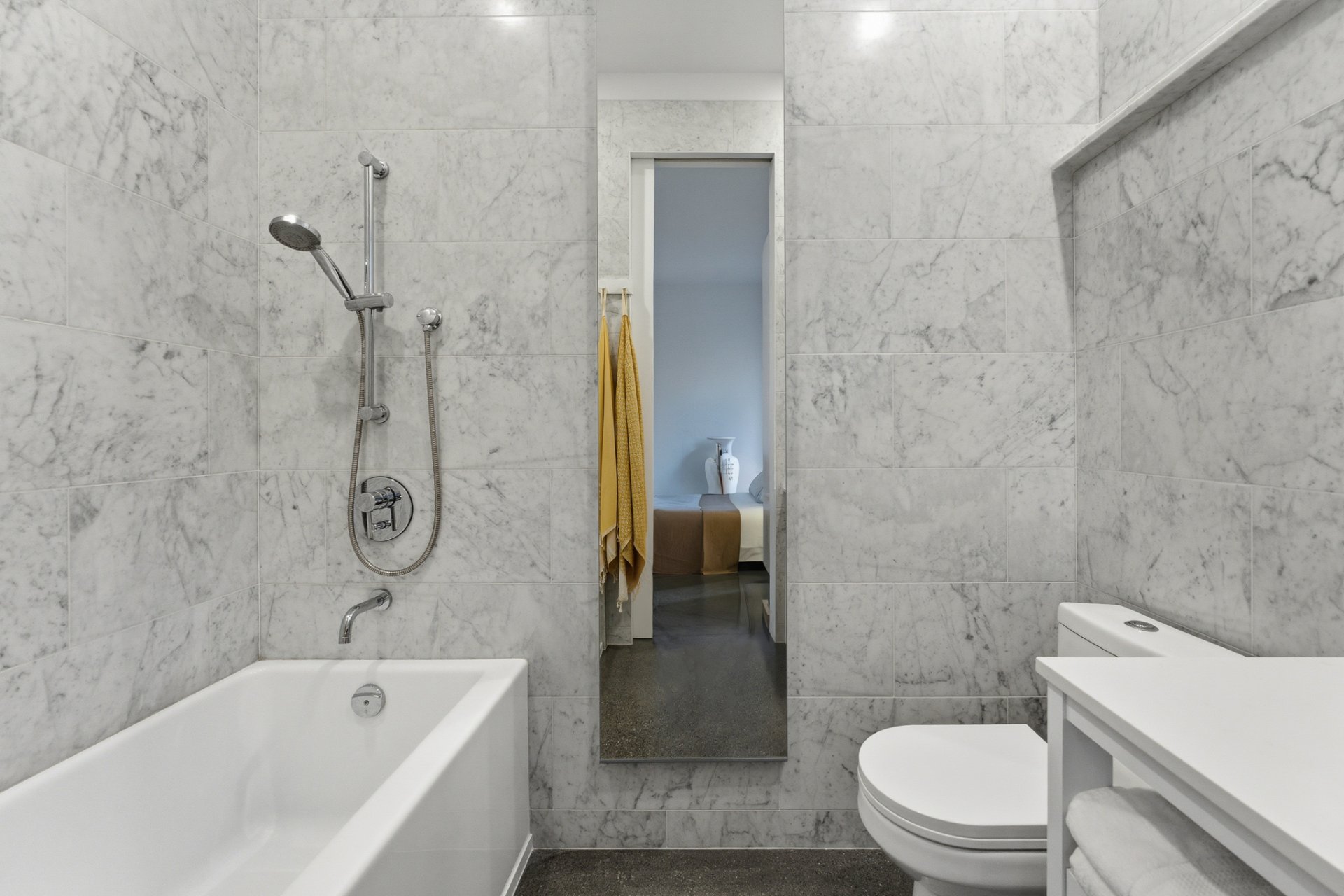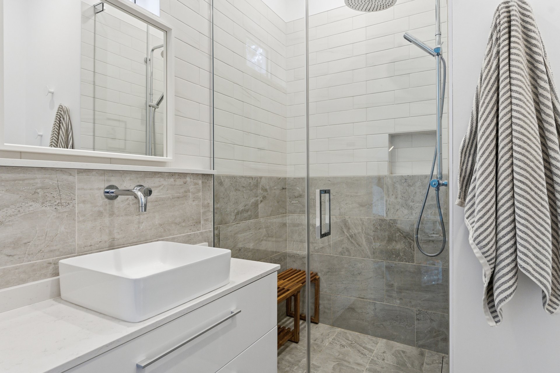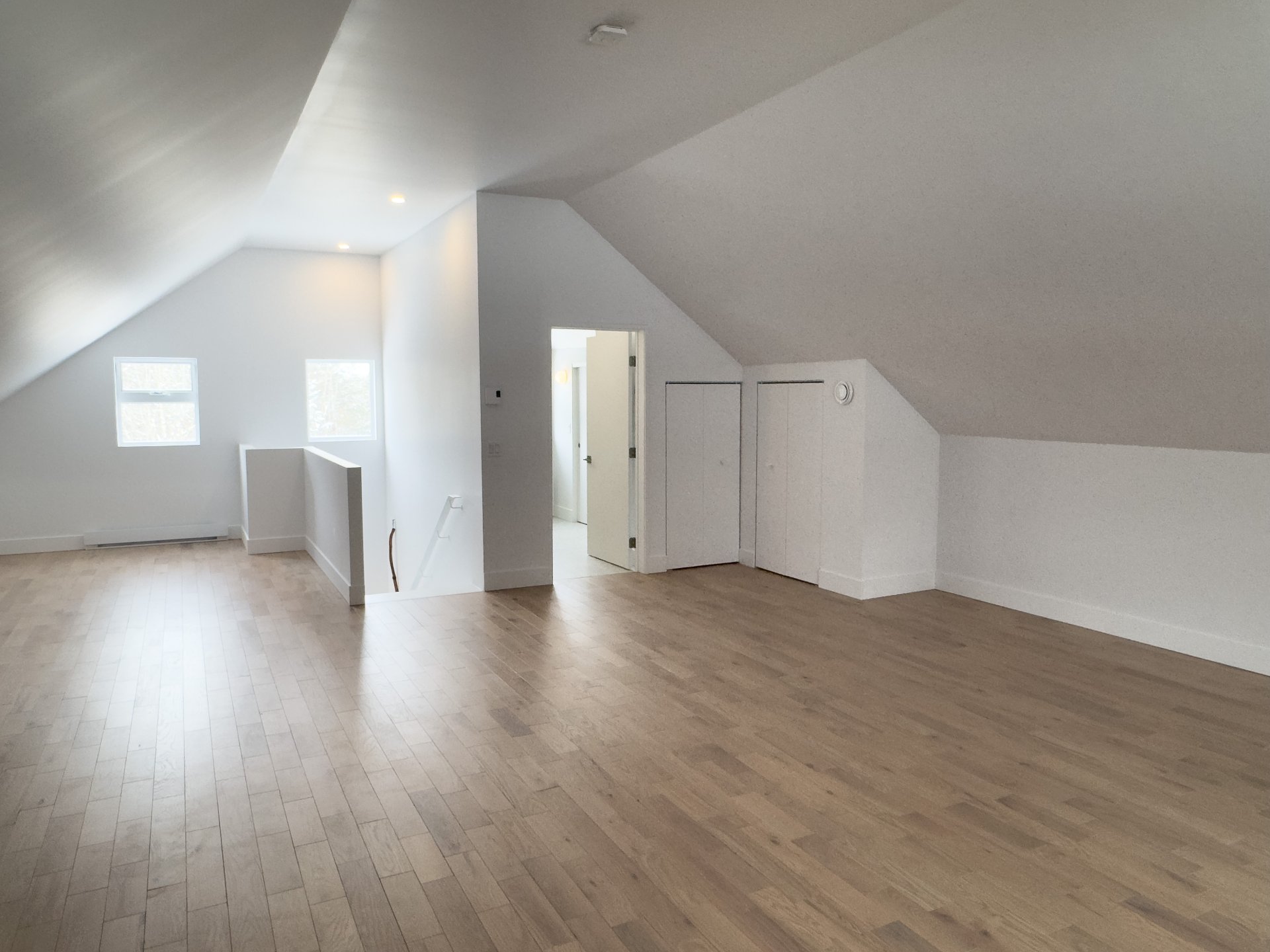 La propriété compte deux suites principales, chacune dotée de sa salle de bain complète, offrant intimité et équilibre spatial. À l'étage, une grande pièce polyvalente s'élève sous un haut plafond de 10 pieds et s'adapte à toutes les vocations : salon secondaire, bureau d'atelier, espace de jeu ou chambre additionnelle. Une salle de bain complète y complète l'ensemble, permettant une occupation totalement indépendante.