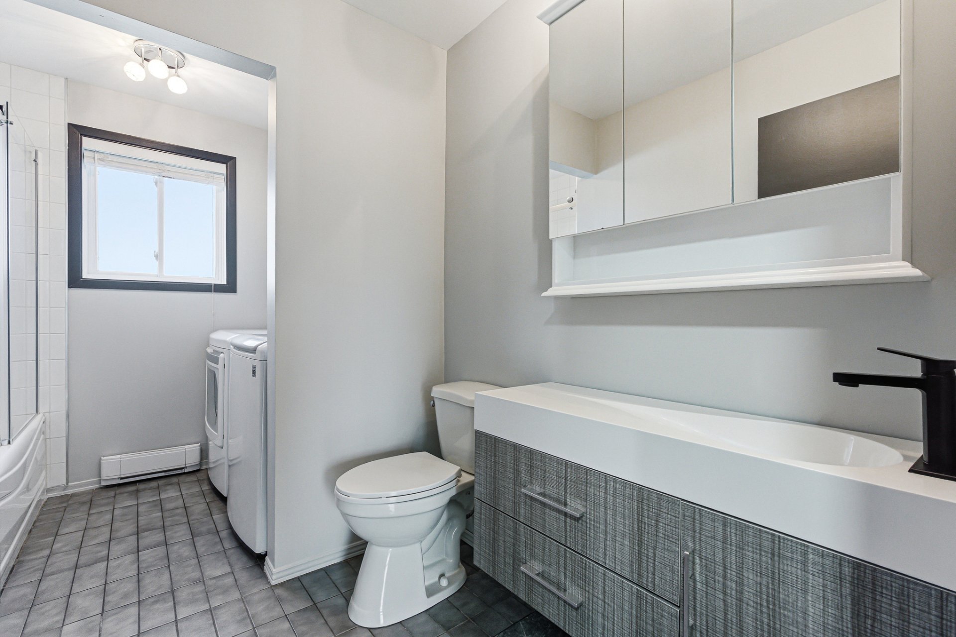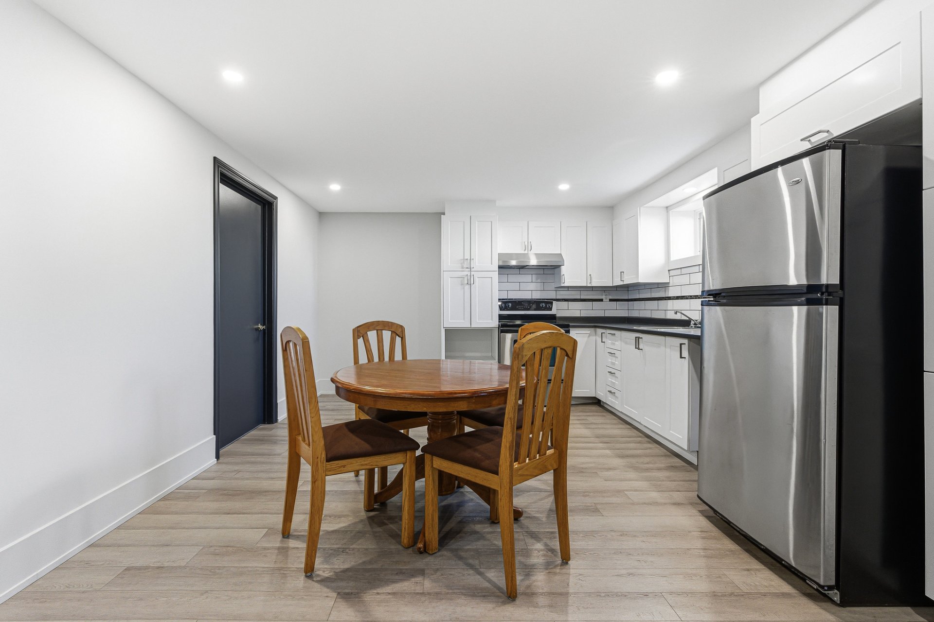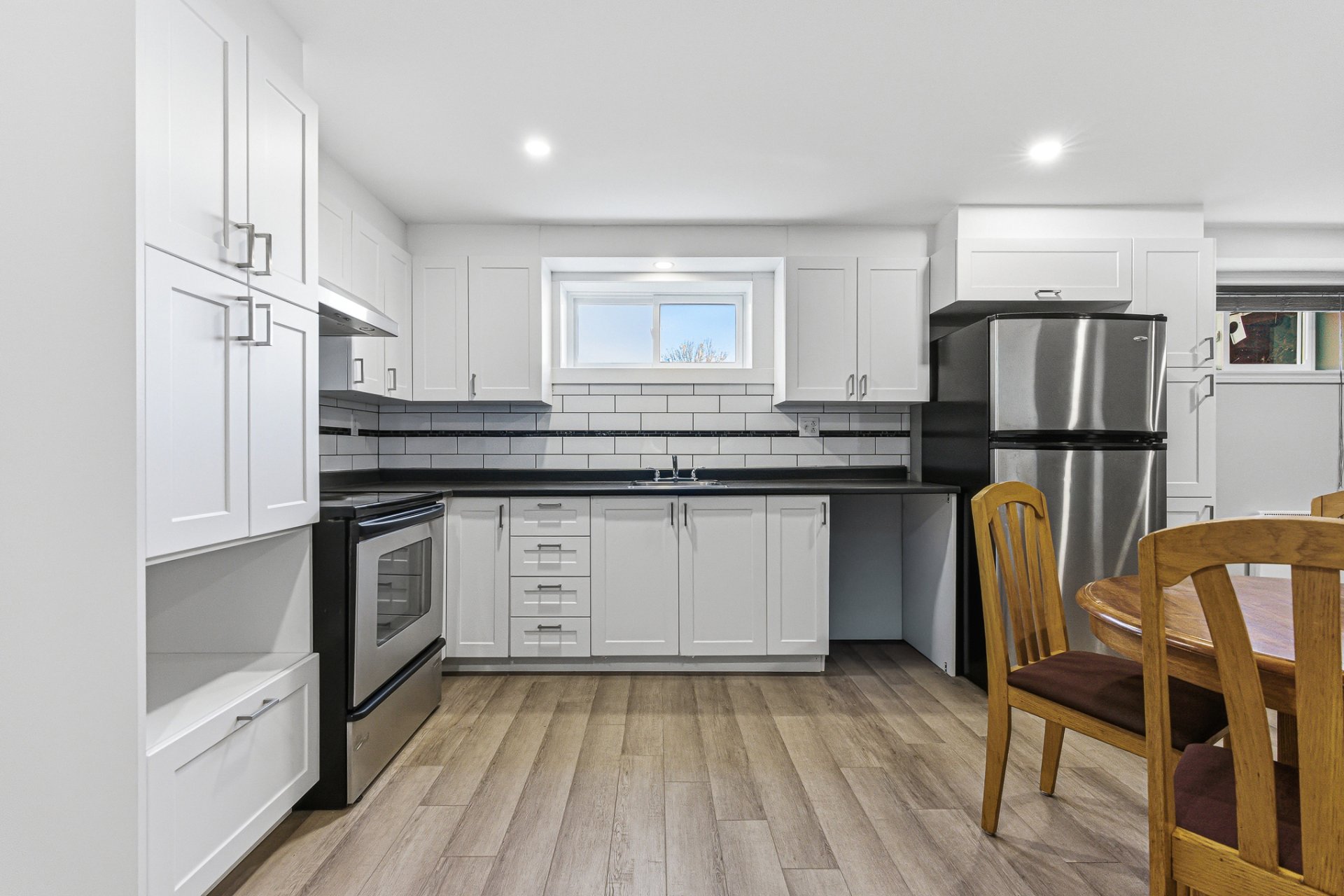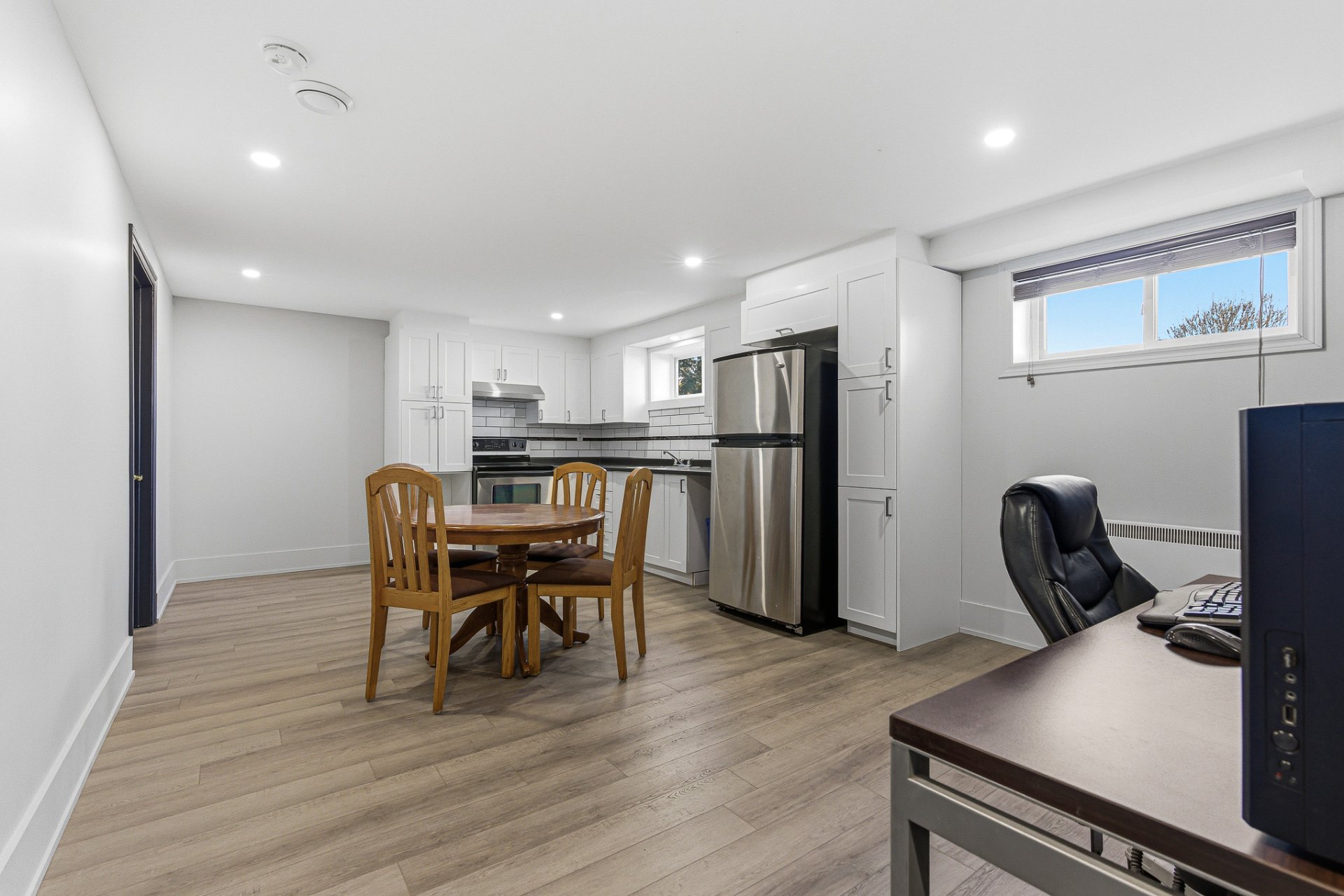 Le sous-sol est accessible par l'entrée principale ou par une entrée indépendante située sur le côté de la maison. L'espace est très bien éclairé grâce aux encastrés et à une grande fenestration au salon, qui apporte une belle luminosité naturelle. Vous y trouverez aussi une salle de lavage de bonne dimension, une deuxième salle de bain, une cuisine pratique, ainsi que deux chambres supplémentaires.