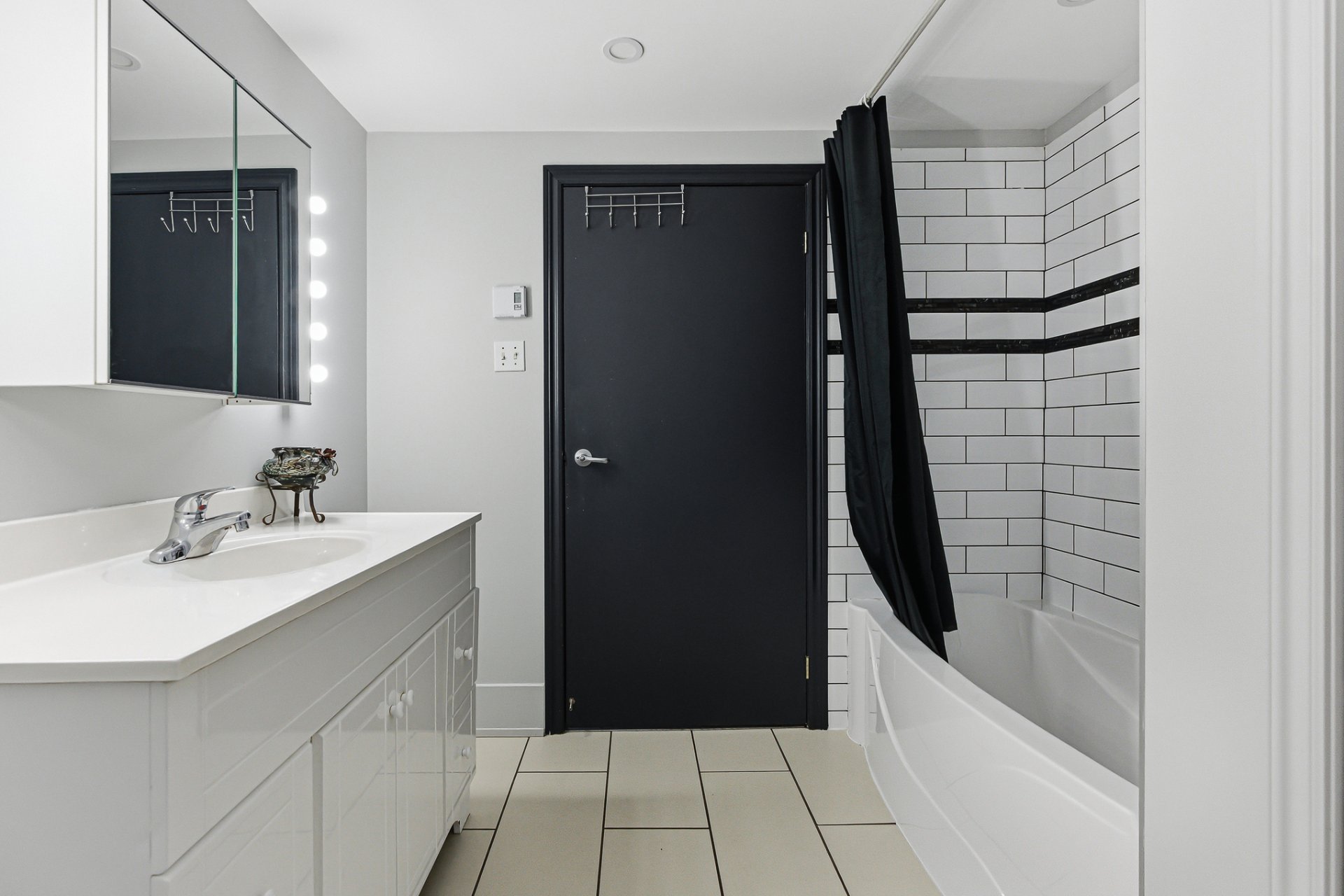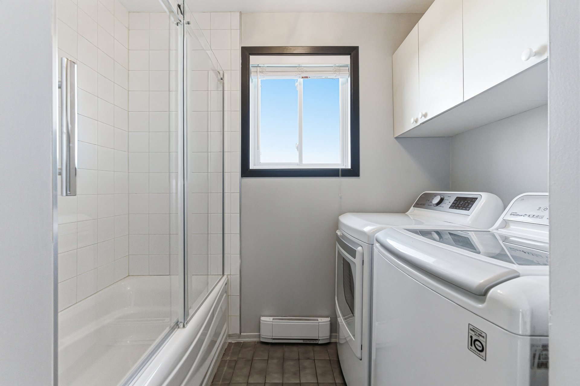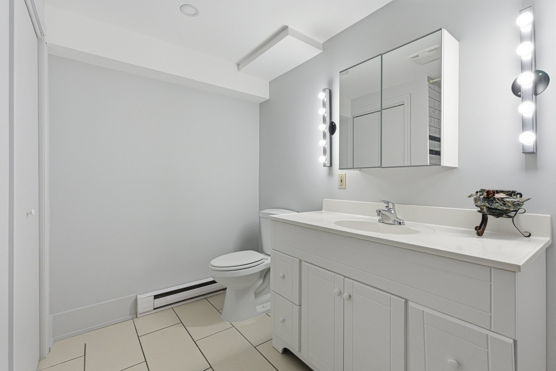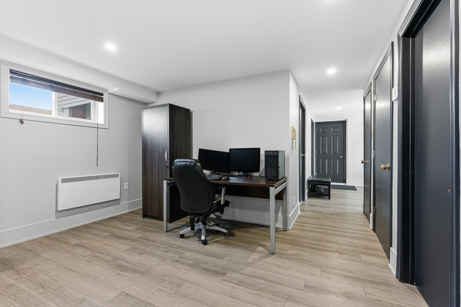 Le sous-sol est accessible par l'entrée principale ou par une entrée indépendante située sur le côté de la maison. L'espace est très bien éclairé grâce aux encastrés et à une grande fenestration au salon, qui apporte une belle luminosité naturelle. Vous y trouverez aussi une salle de lavage de bonne dimension, une deuxième salle de bain, une cuisine pratique, ainsi que deux chambres supplémentaires.