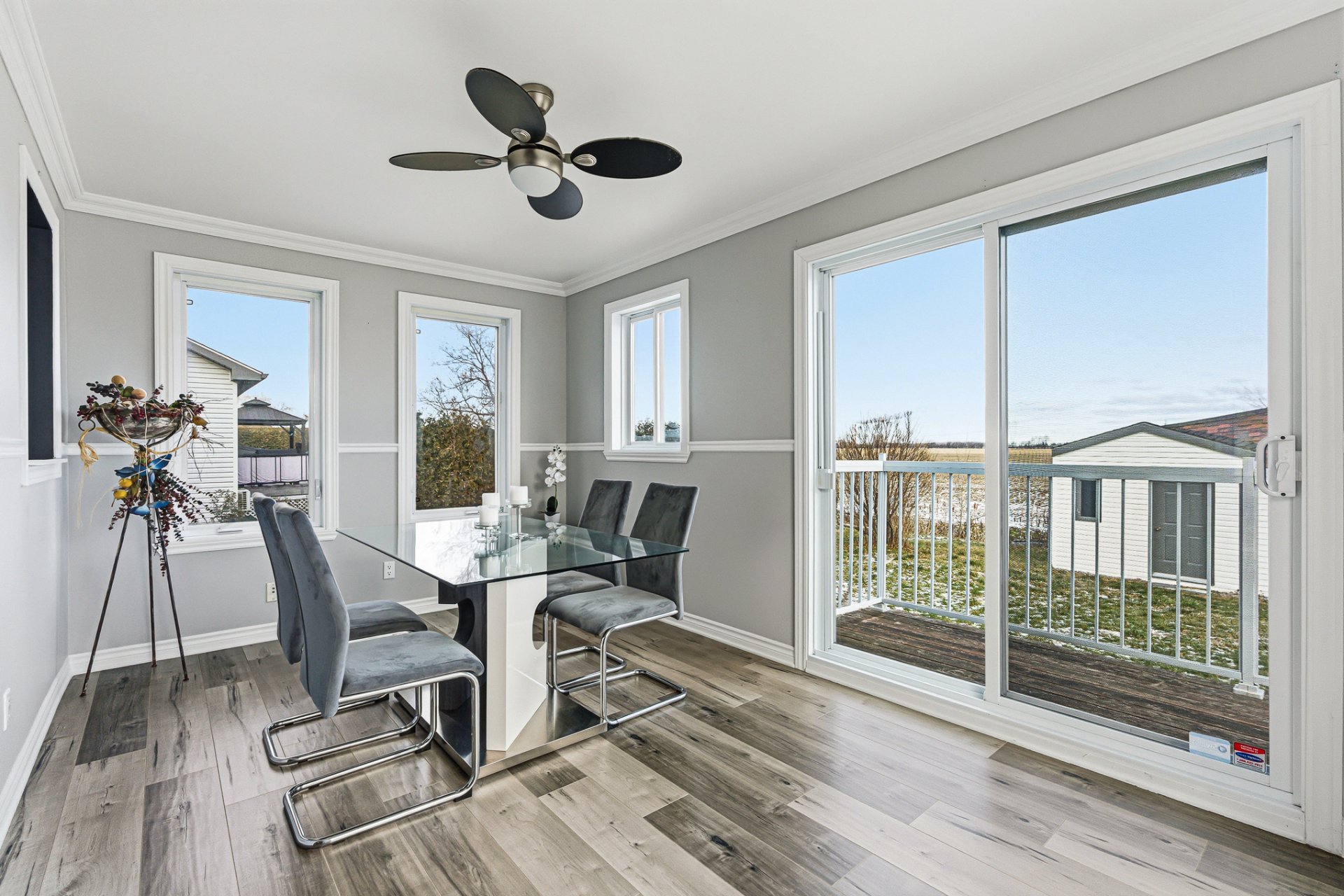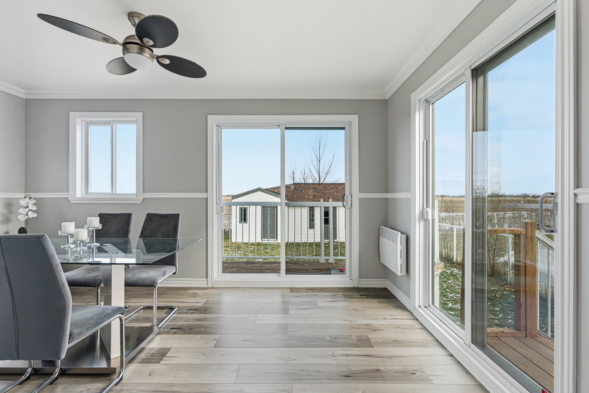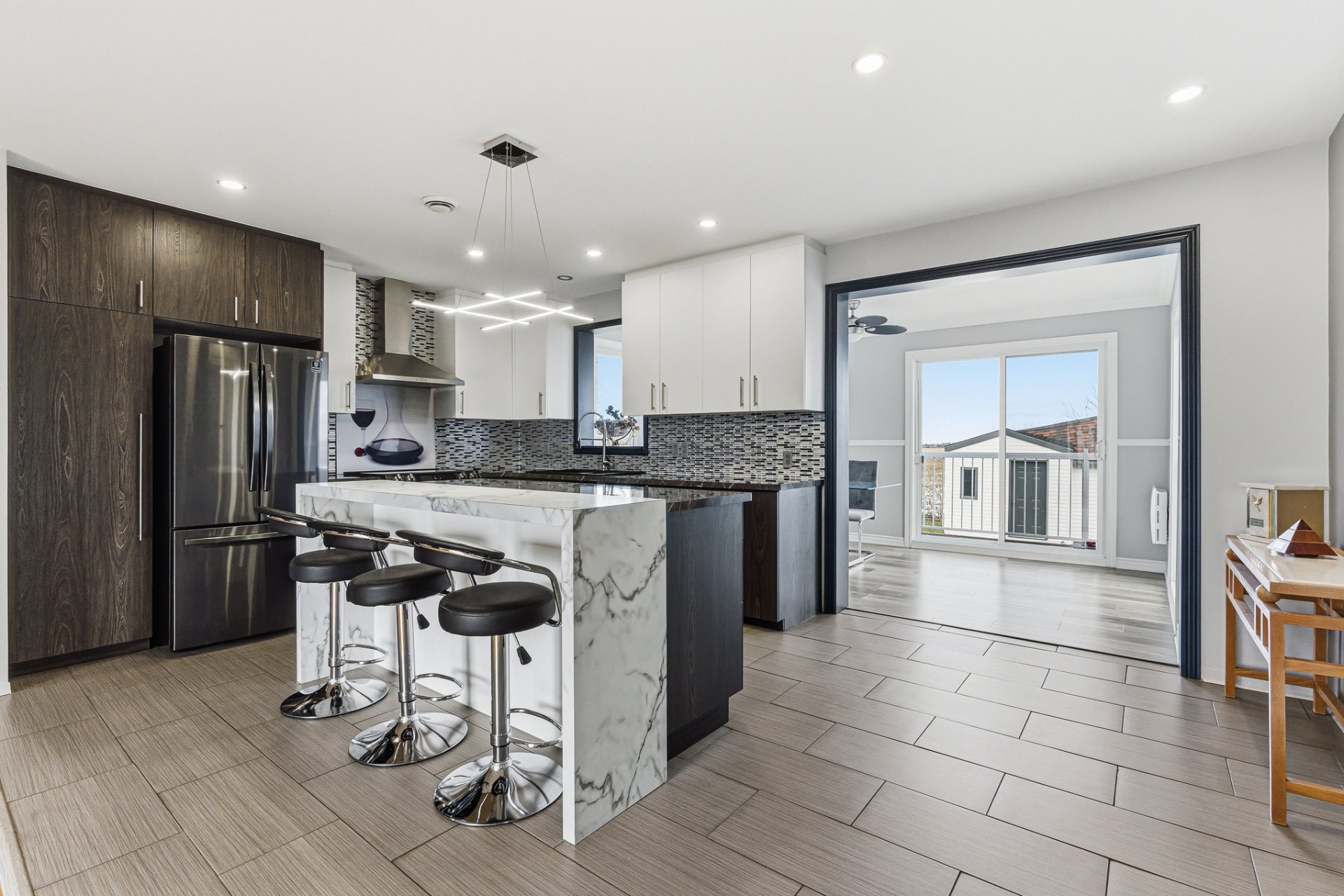 Au rez-de-chaussée, vous profiterez d'une cuisine moderne avec un grand îlot central, ainsi qu'une salle à manger ultra lumineuse, dotée de nombreuses fenêtres et de deux portes-patio qui offrent une vue apaisante sur la cour arrière, complètement dégagée et ouverte sur le paysage à l'horizon. Le salon propose un bel espace de détente et l'étage regroupe également trois chambres et une salle de bain incluant l'emplacement laveuse/sécheuse.