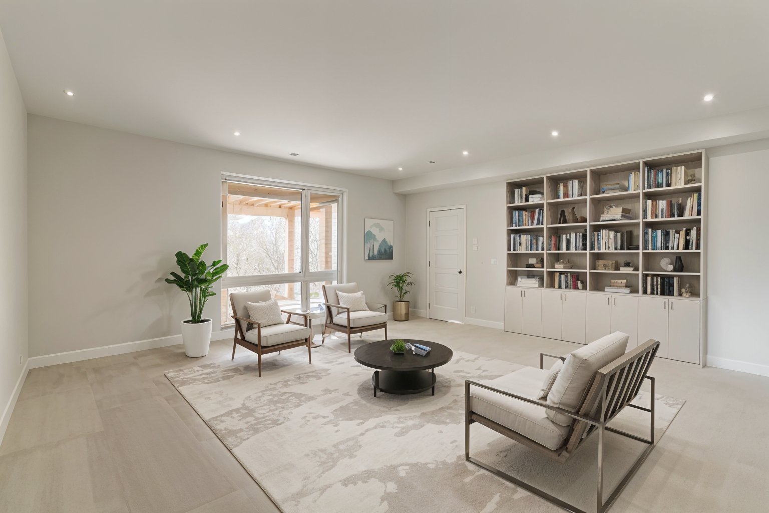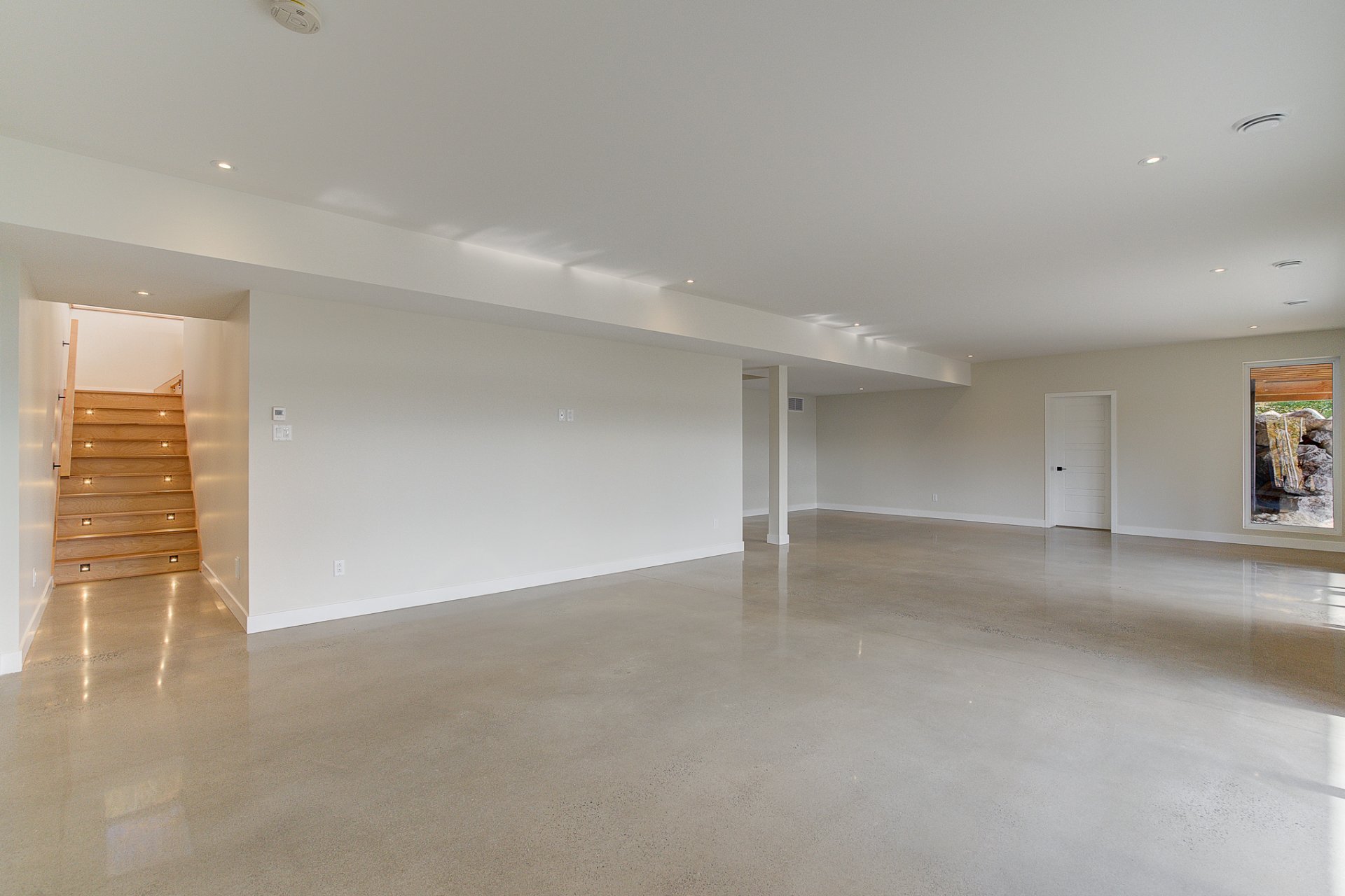 Le rez-de-jardin est inondé de lumière et donne accès directement à la cour arrière. Il dispose de deux chambres à coucher, chacune avec sa salle de bain privative, une spacieuse salle familiale, une pièce polyvalente pouvant servir de salle de cinéma ou de gym, ainsi qu'une buanderie et une troisième salle de bain.