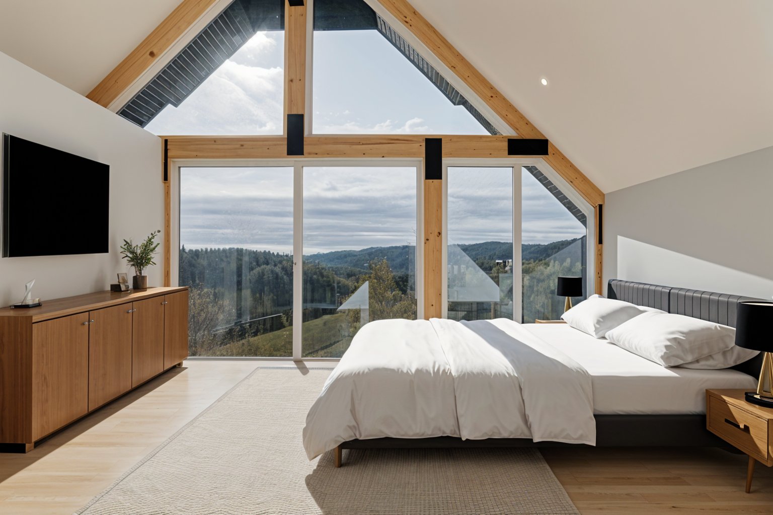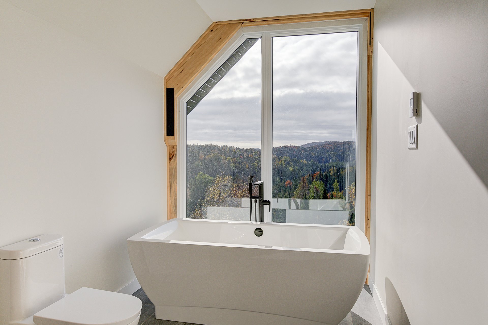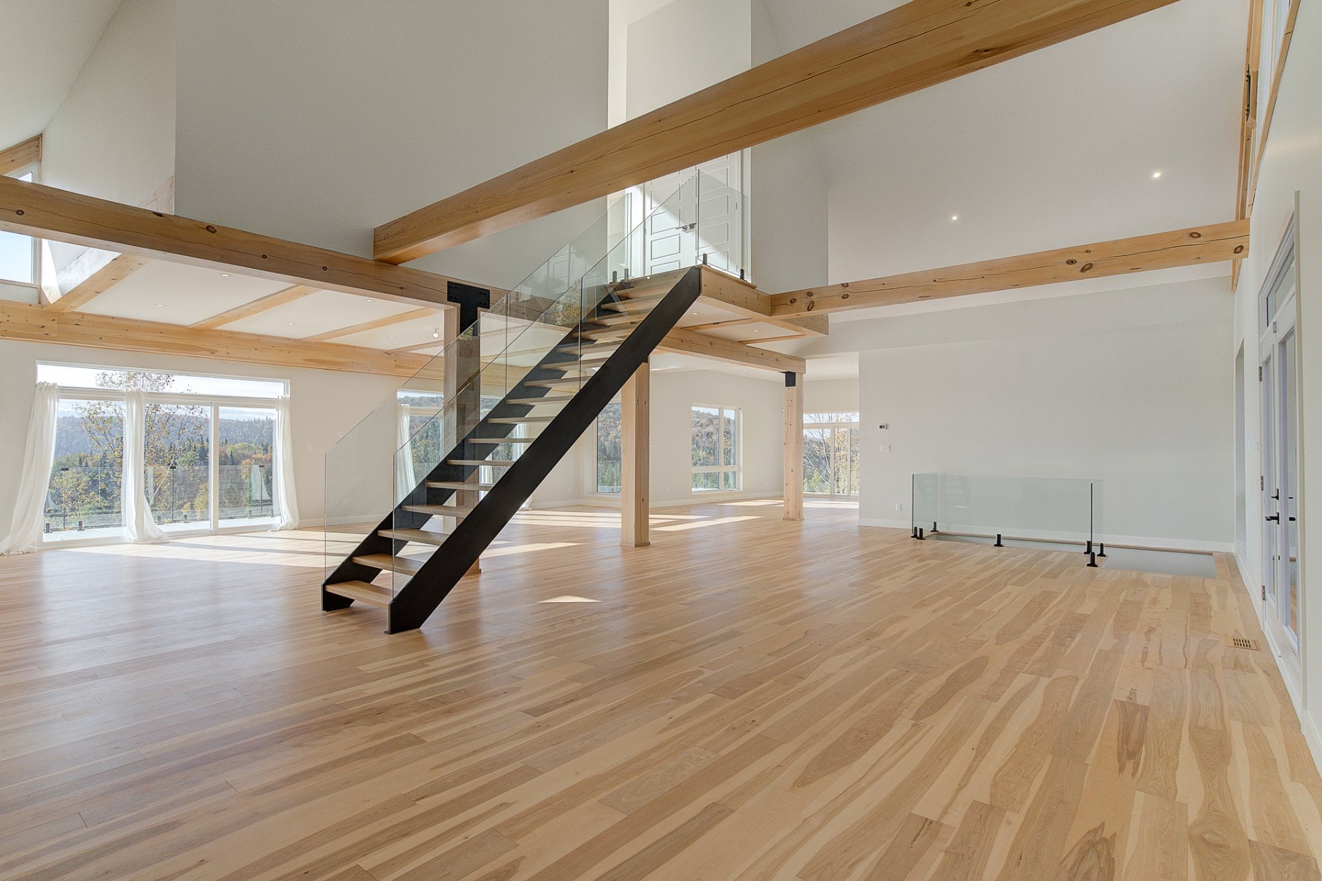 Un magnifique escalier architectural conduit au deuxième étage, où se trouve la suite parentale, dotée d'une salle de bain attenante et d'un spacieux garde-robe de type walk-in. Vous apprécierez de vous réveiller ou de vous détendre dans un bain, face à la vue spectaculaire que procure la généreuse fenestration pleine hauteur.
