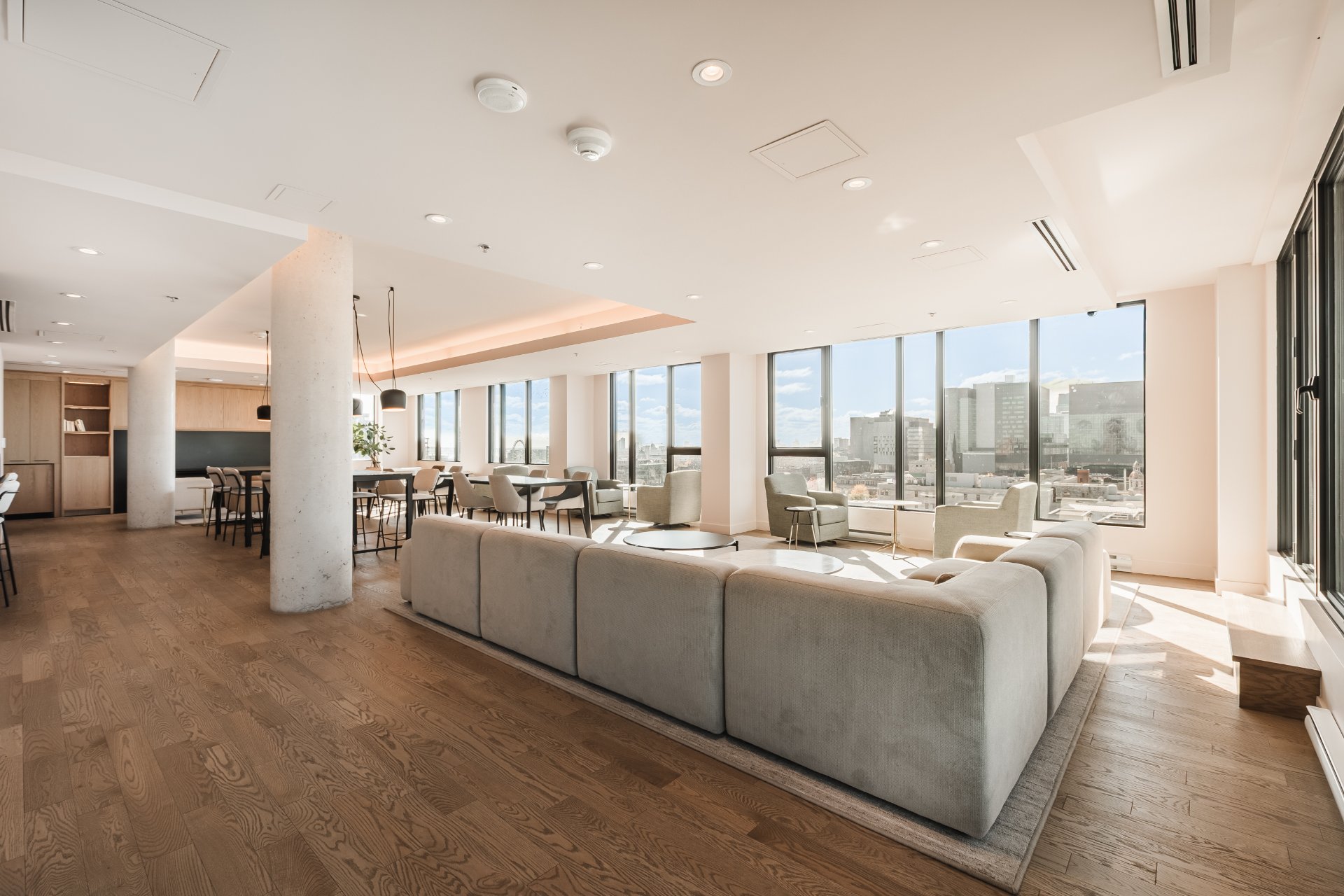 * "Auguste & Louis" Phase 1 : La firme d'architecture réputée, Provencher_Roy, a soigneusement pensé chaque détail de ce projet afin de créer des espaces de vie lumineux et accueillants. Grâce à un mélange harmonieux de matériaux, des finitions de haute qualité et des espaces verts intégrés avec soin, le design favorise un mode de vie apaisant axé sur le bien-être.