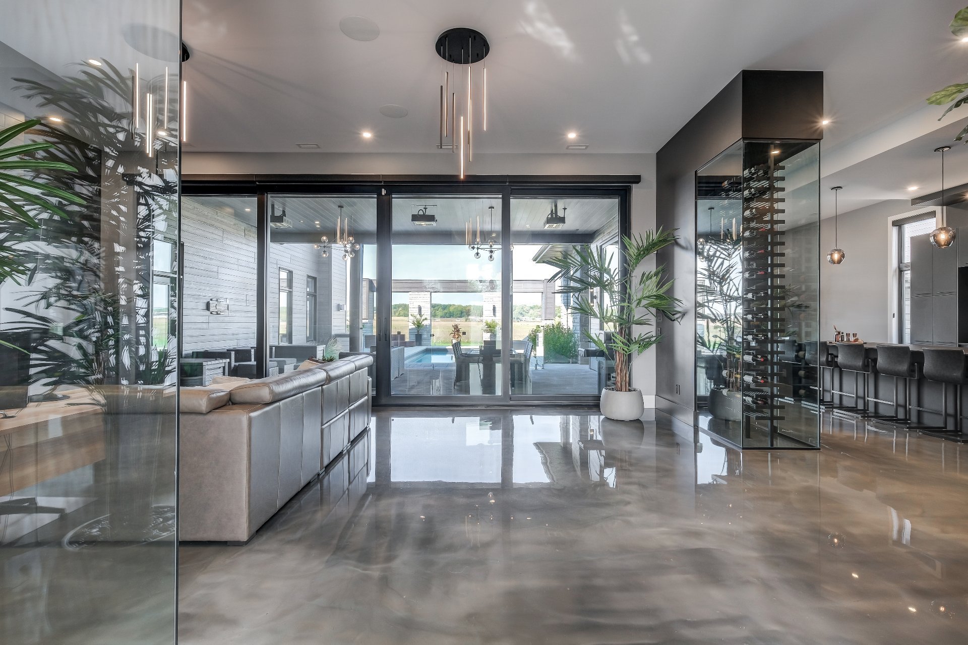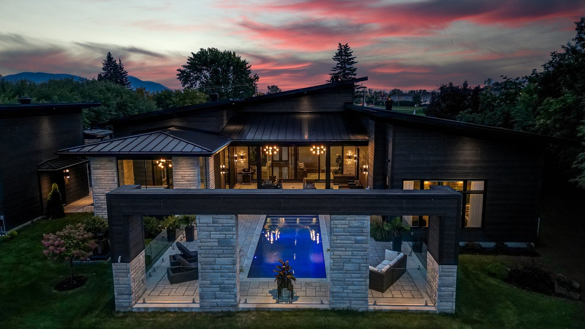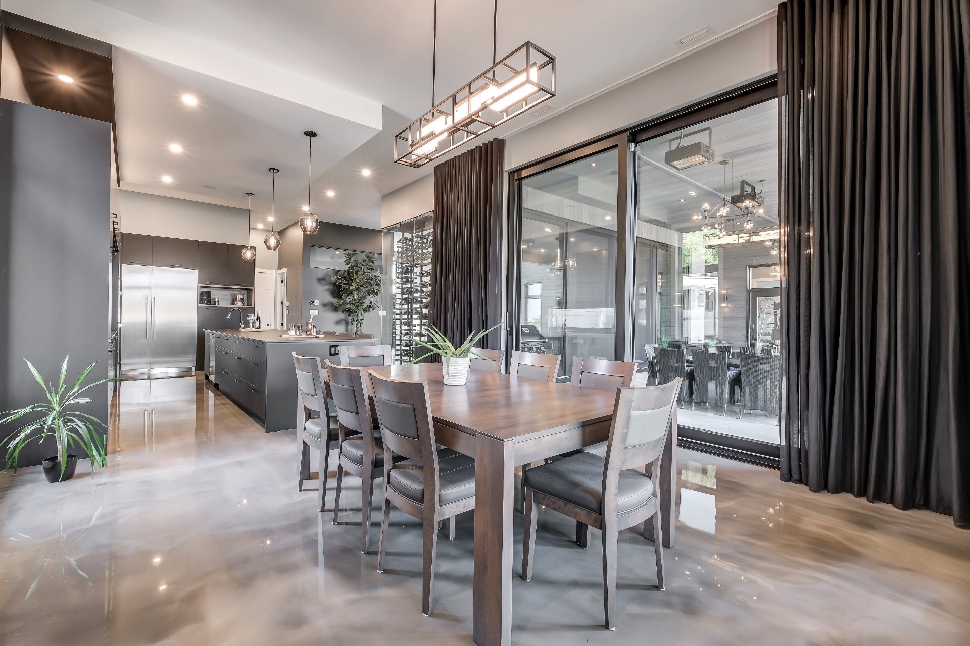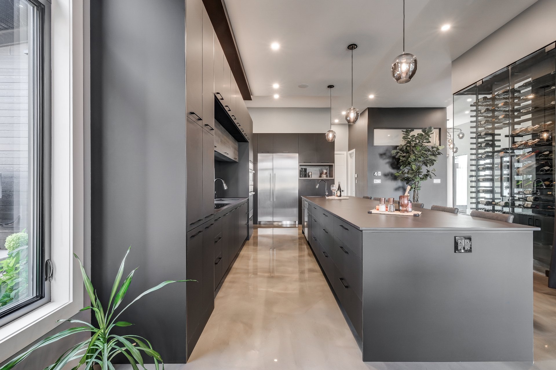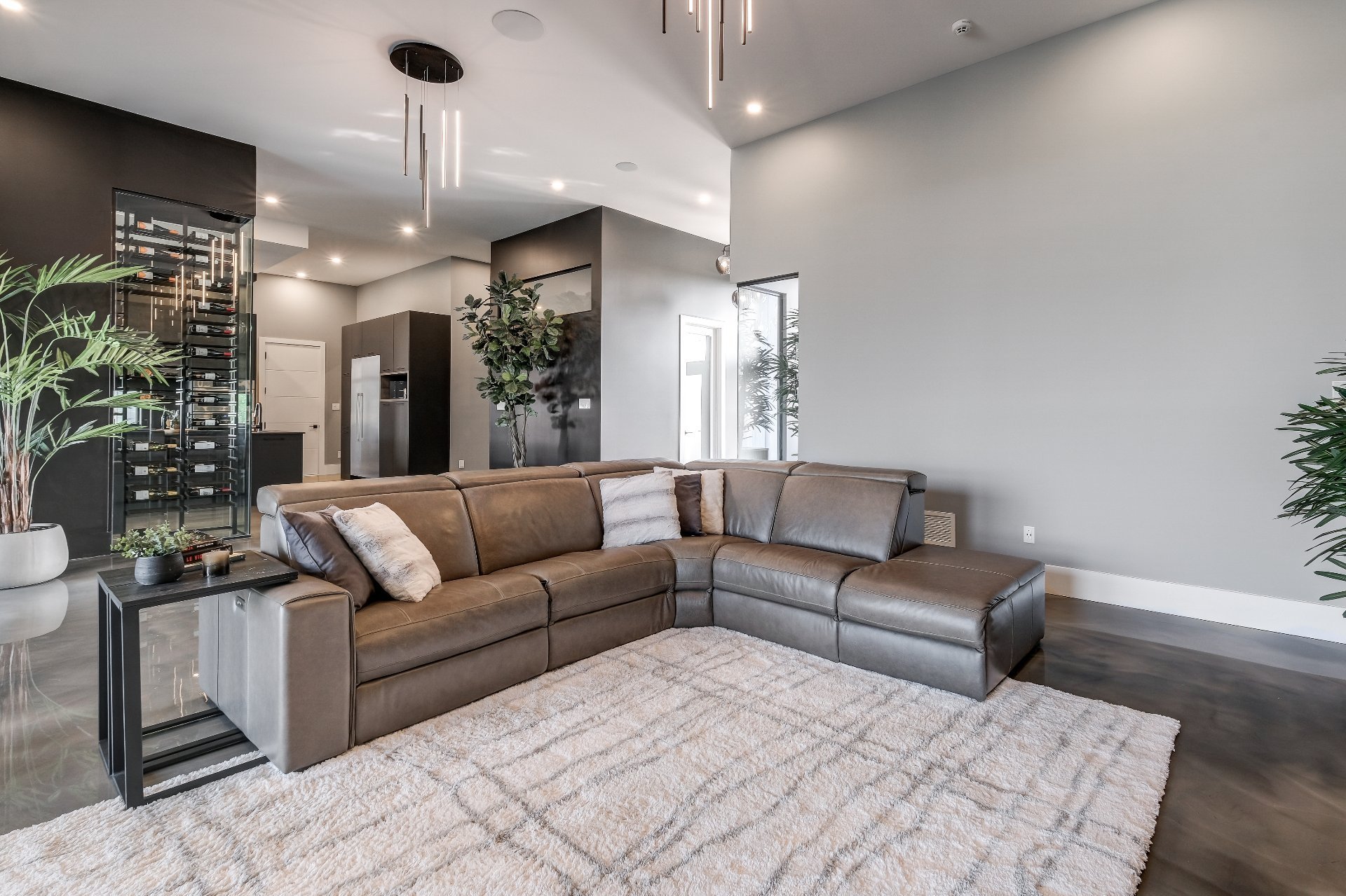 À l'intérieur, l'aire de vie principale à aire ouverte dégage une sensation d'espace et de fluidité. La cuisine, véritable chef-d'oeuvre moderne, se distingue par ses électroménagers encastrés haut de gamme, son immense îlot et son splendide cellier vitré qui s'intègre avec élégance au salon.