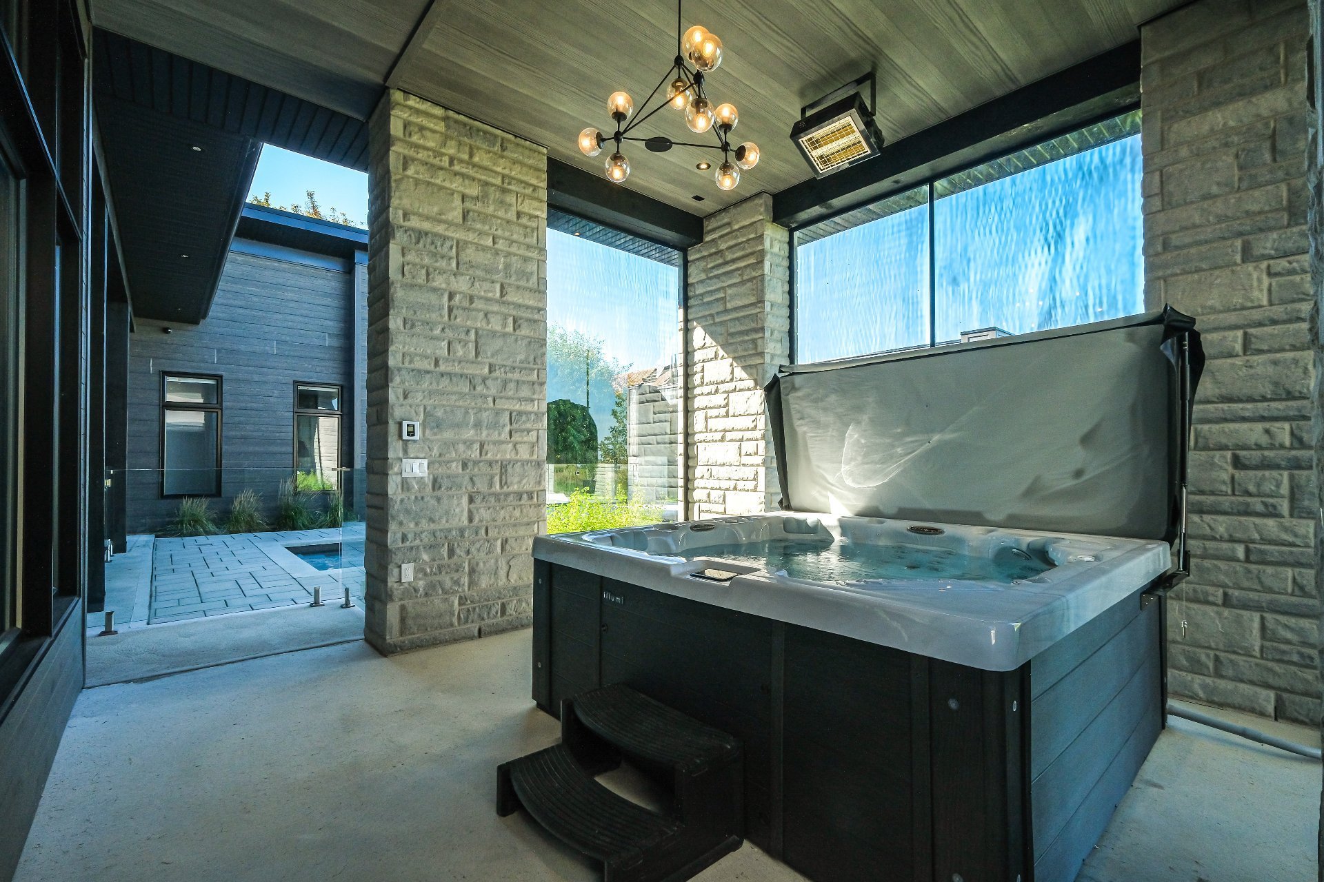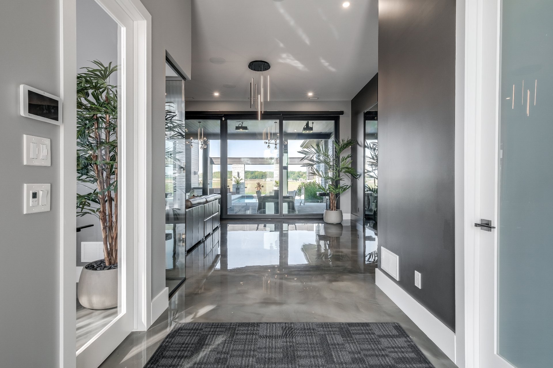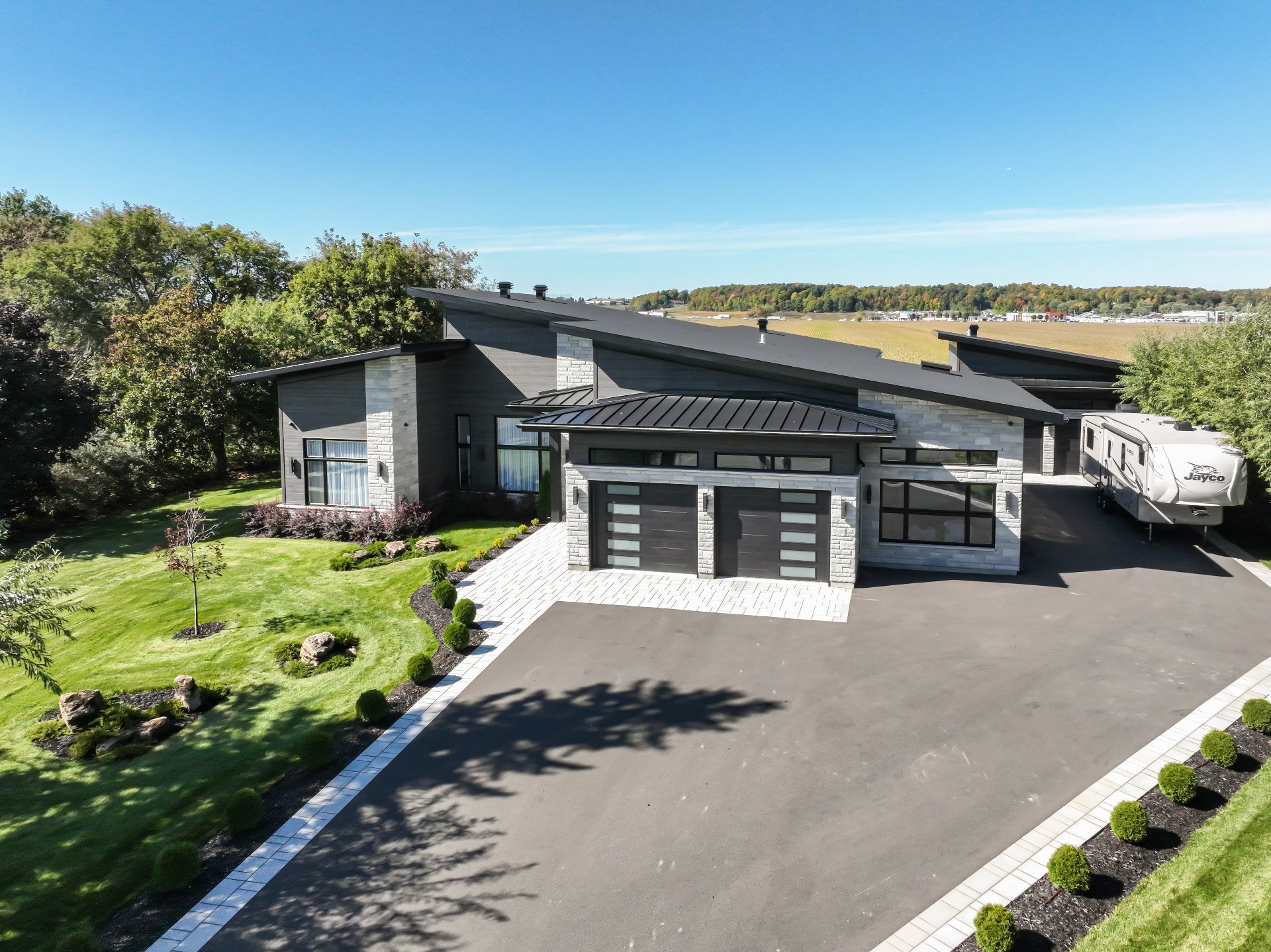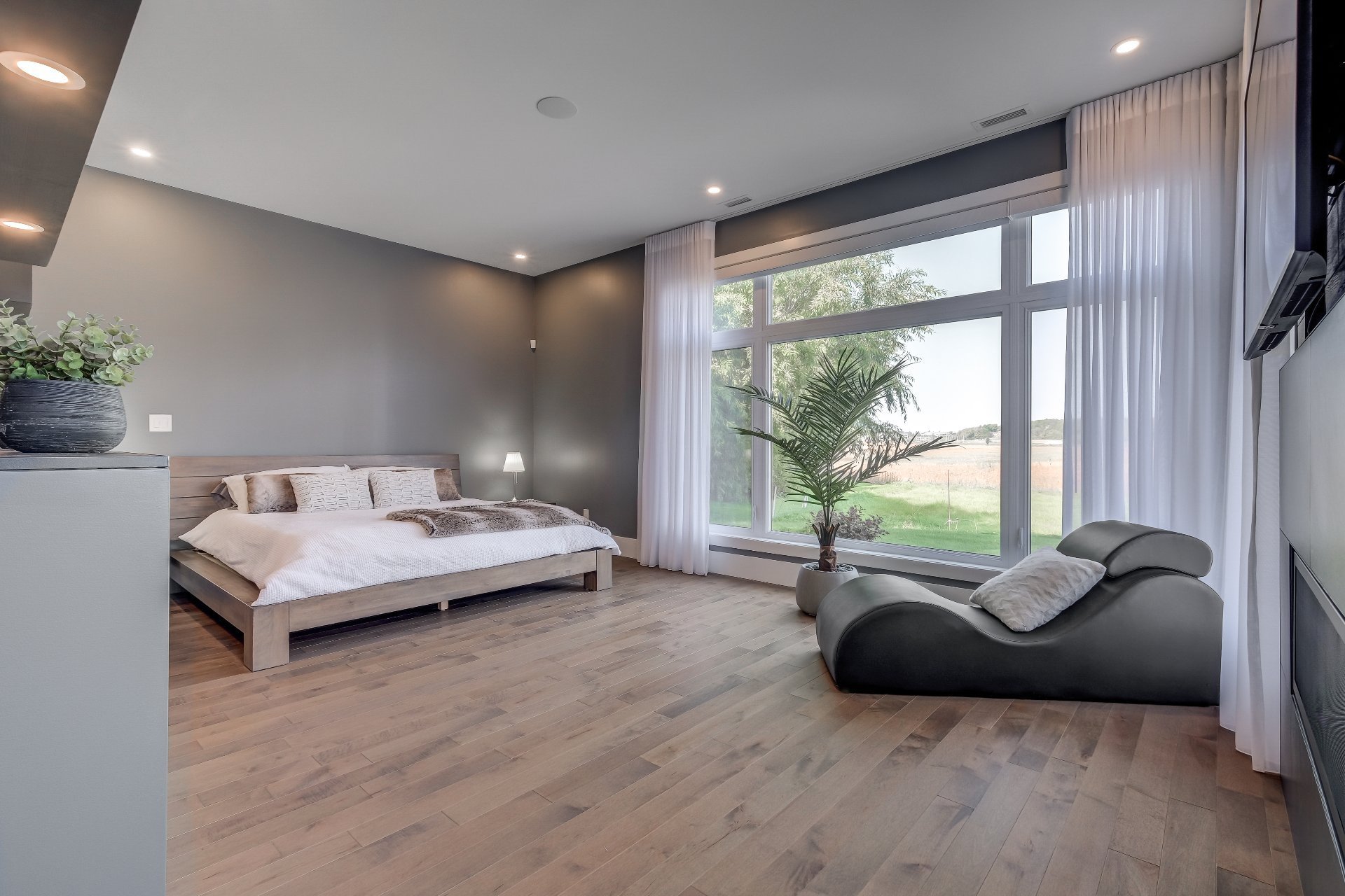 À l'intérieur, l'aire de vie principale à aire ouverte dégage une sensation d'espace et de fluidité. La cuisine, véritable chef-d'oeuvre moderne, se distingue par ses électroménagers encastrés haut de gamme, son immense îlot et son splendide cellier vitré qui s'intègre avec élégance au salon.