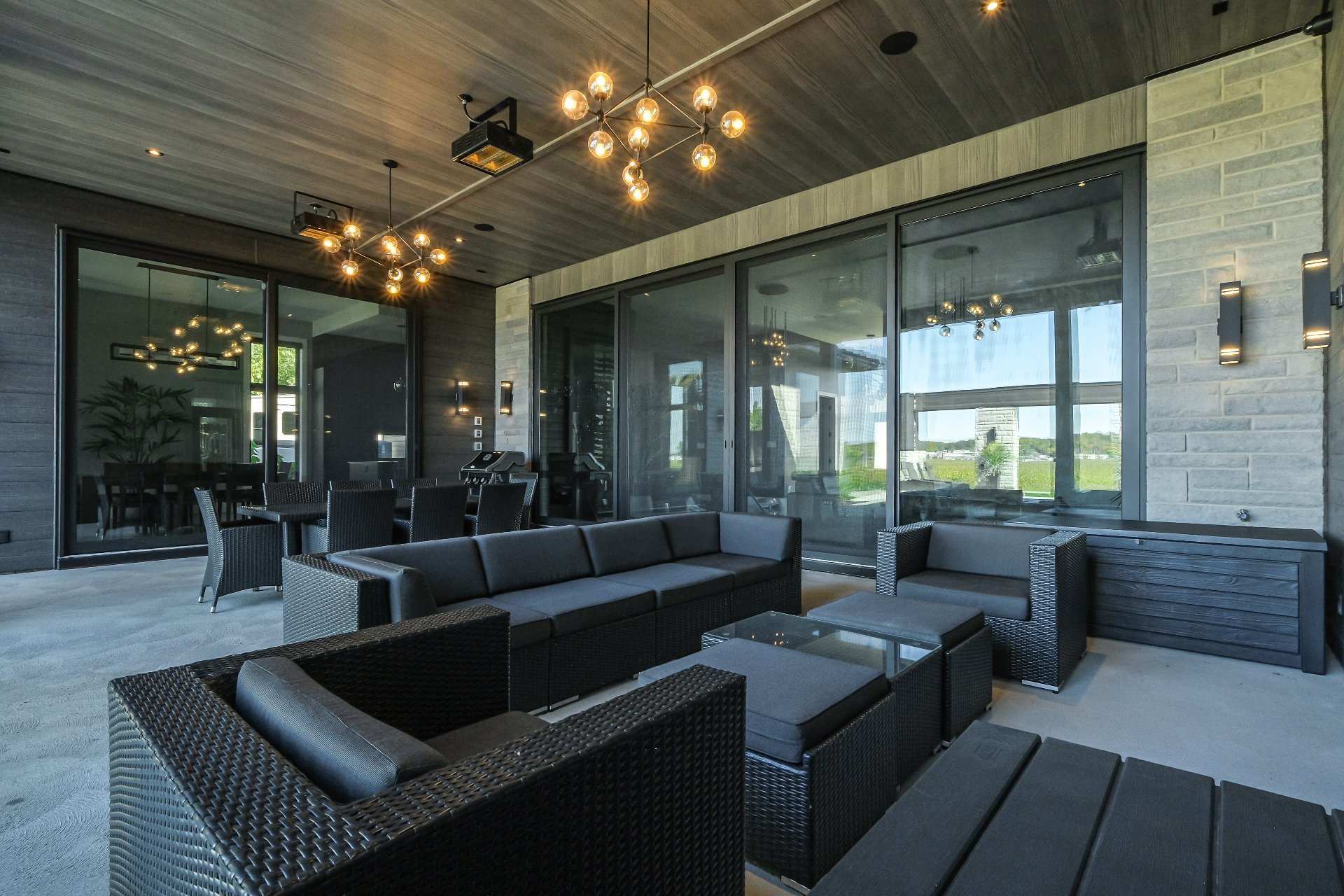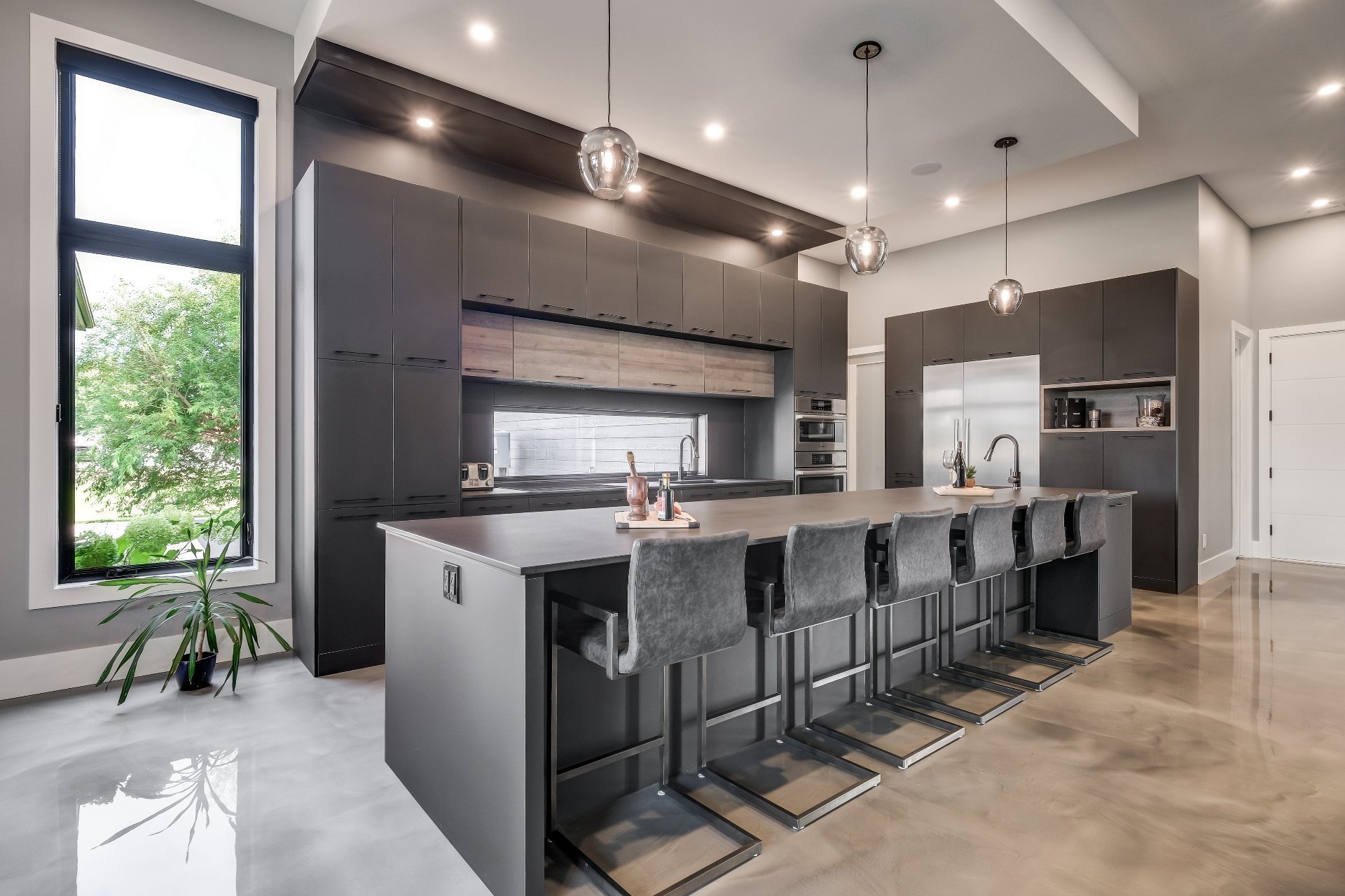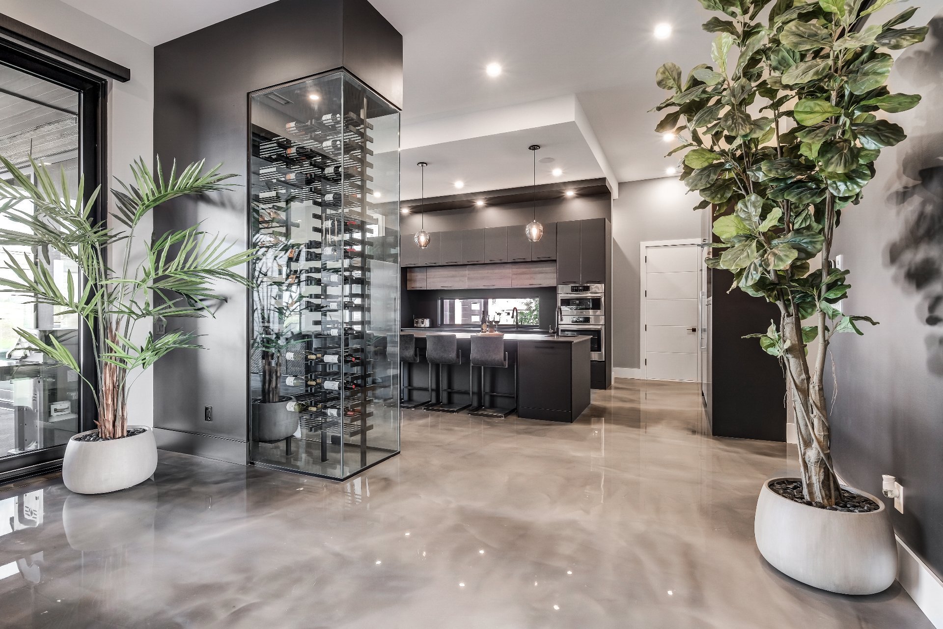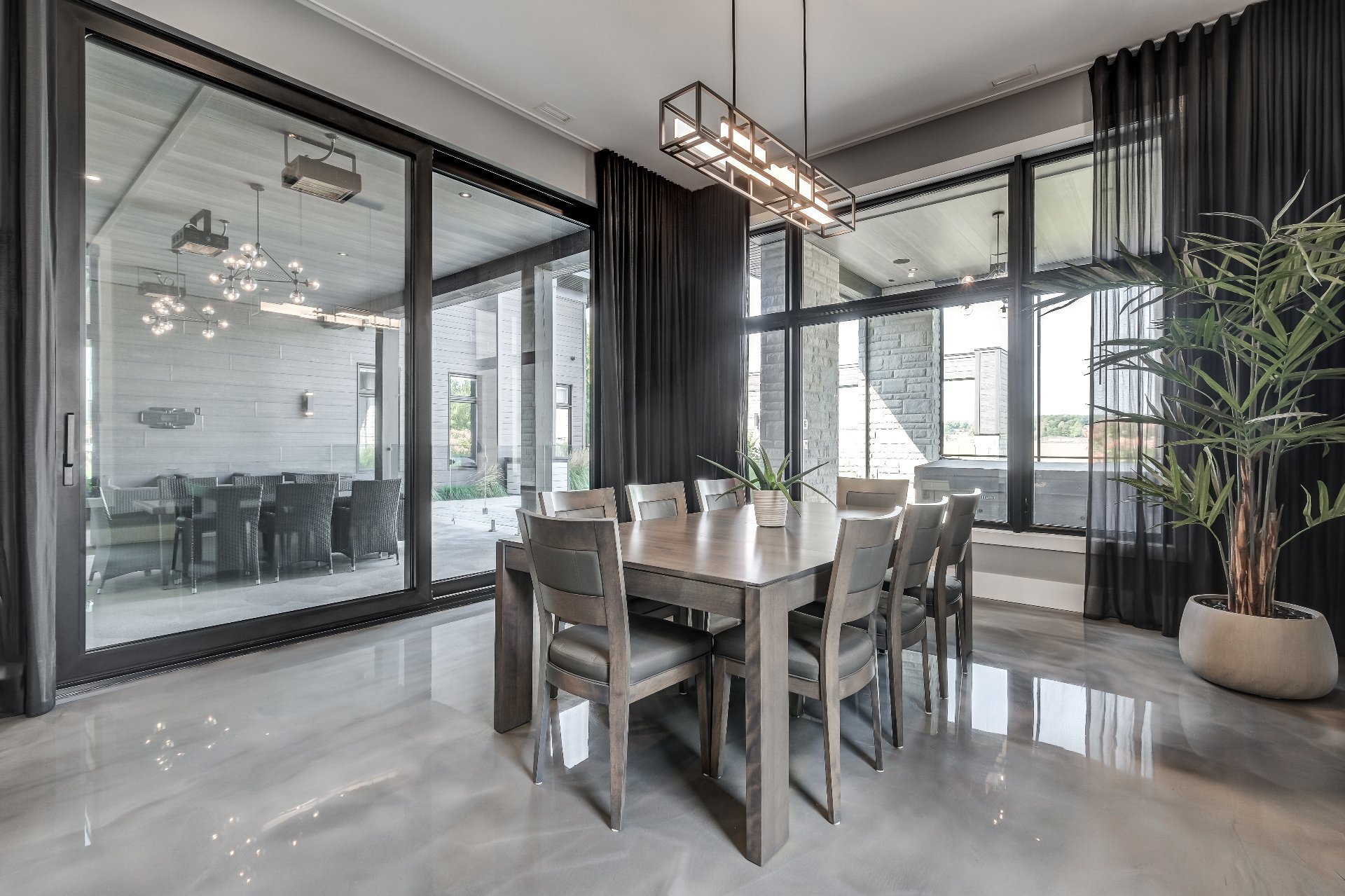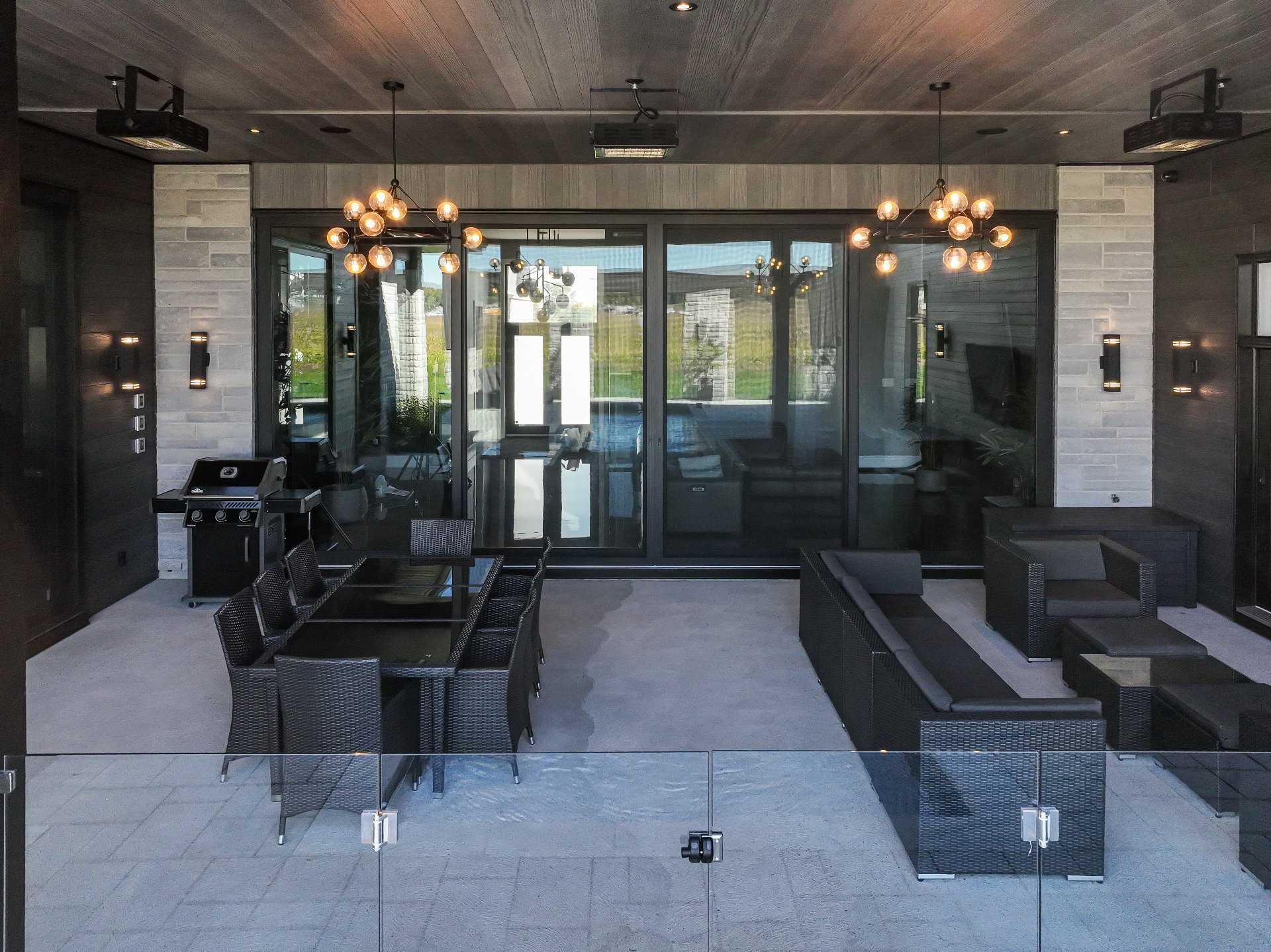 À l'intérieur, l'aire de vie principale à aire ouverte dégage une sensation d'espace et de fluidité. La cuisine, véritable chef-d'oeuvre moderne, se distingue par ses électroménagers encastrés haut de gamme, son immense îlot et son splendide cellier vitré qui s'intègre avec élégance au salon.