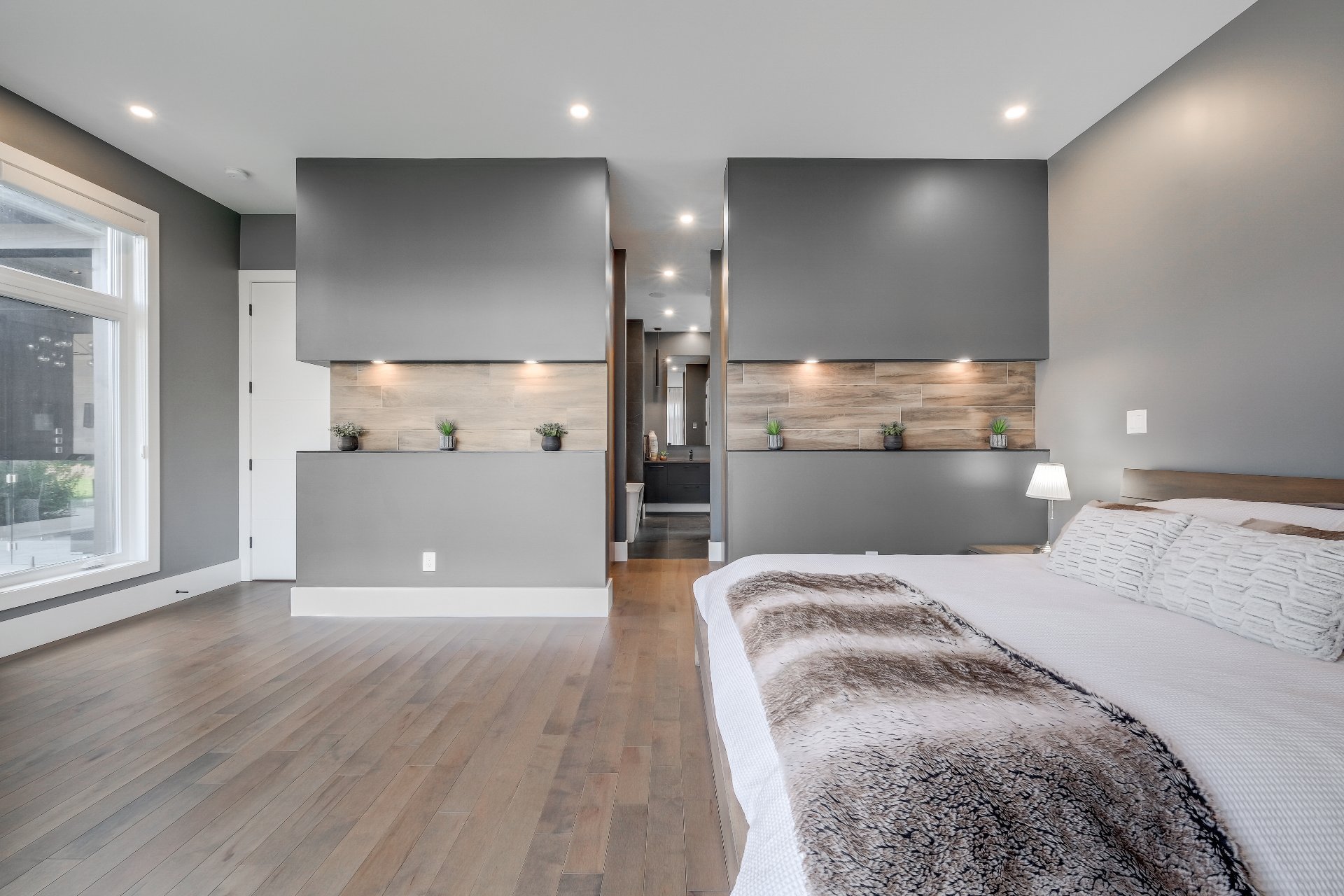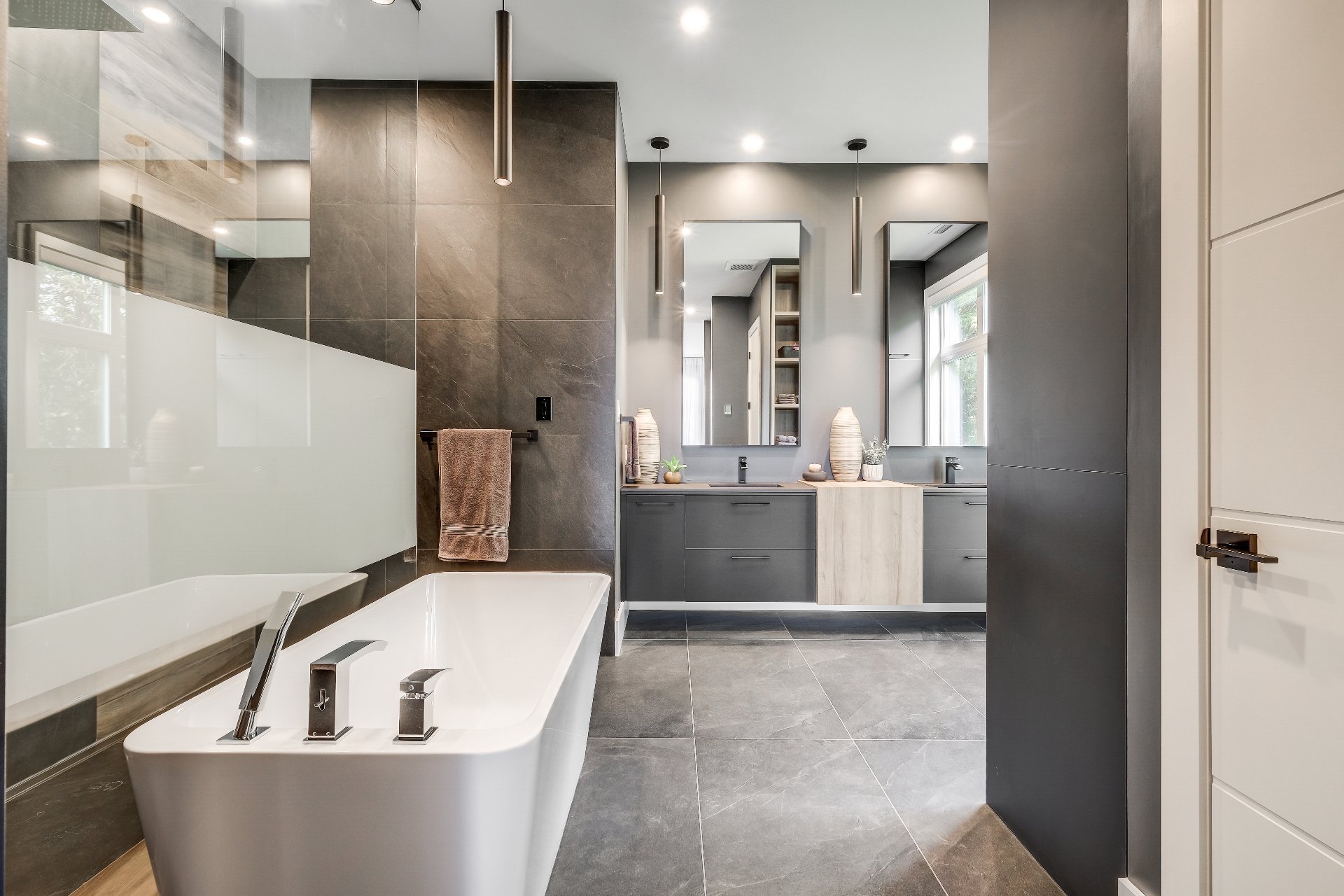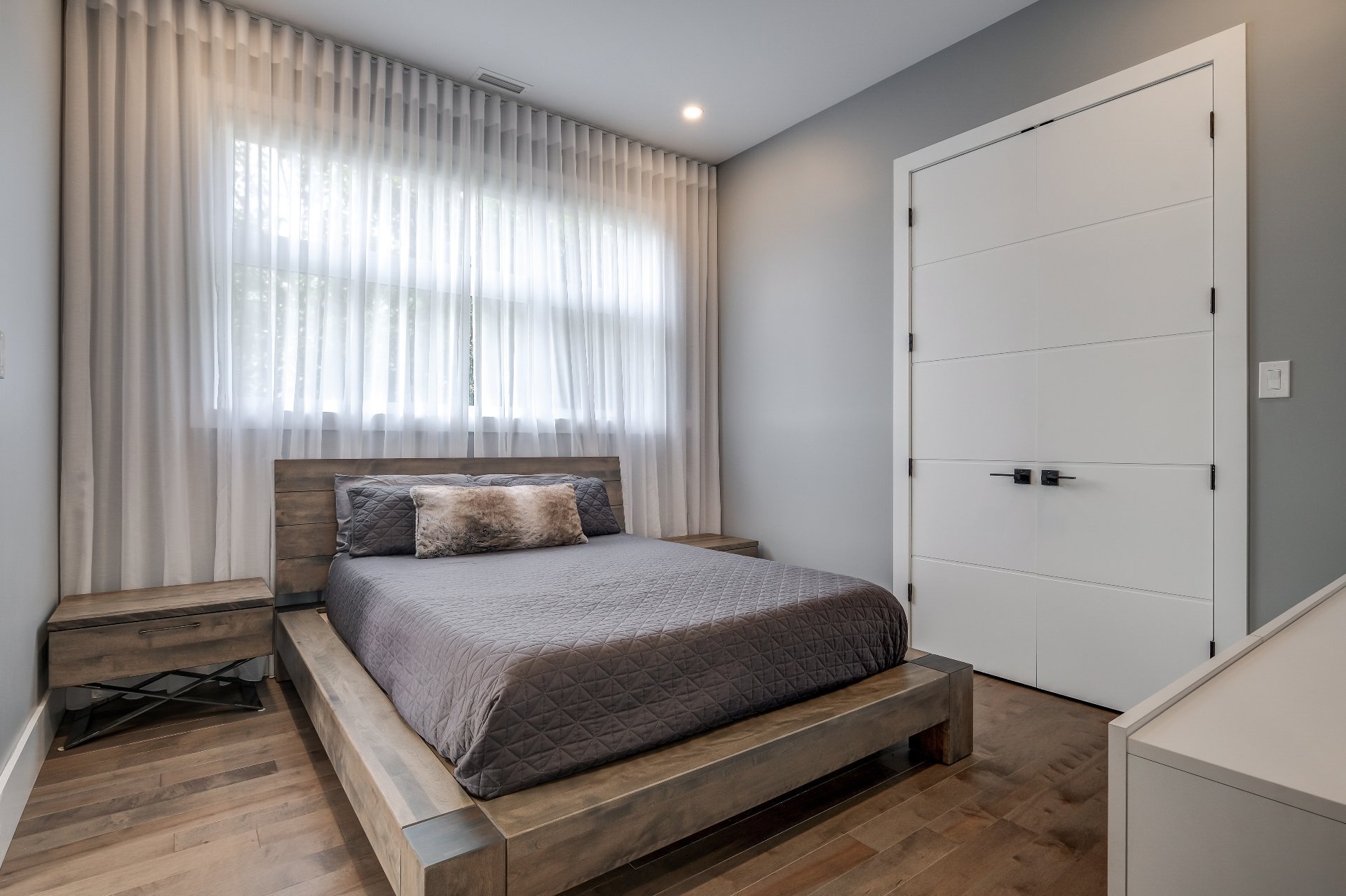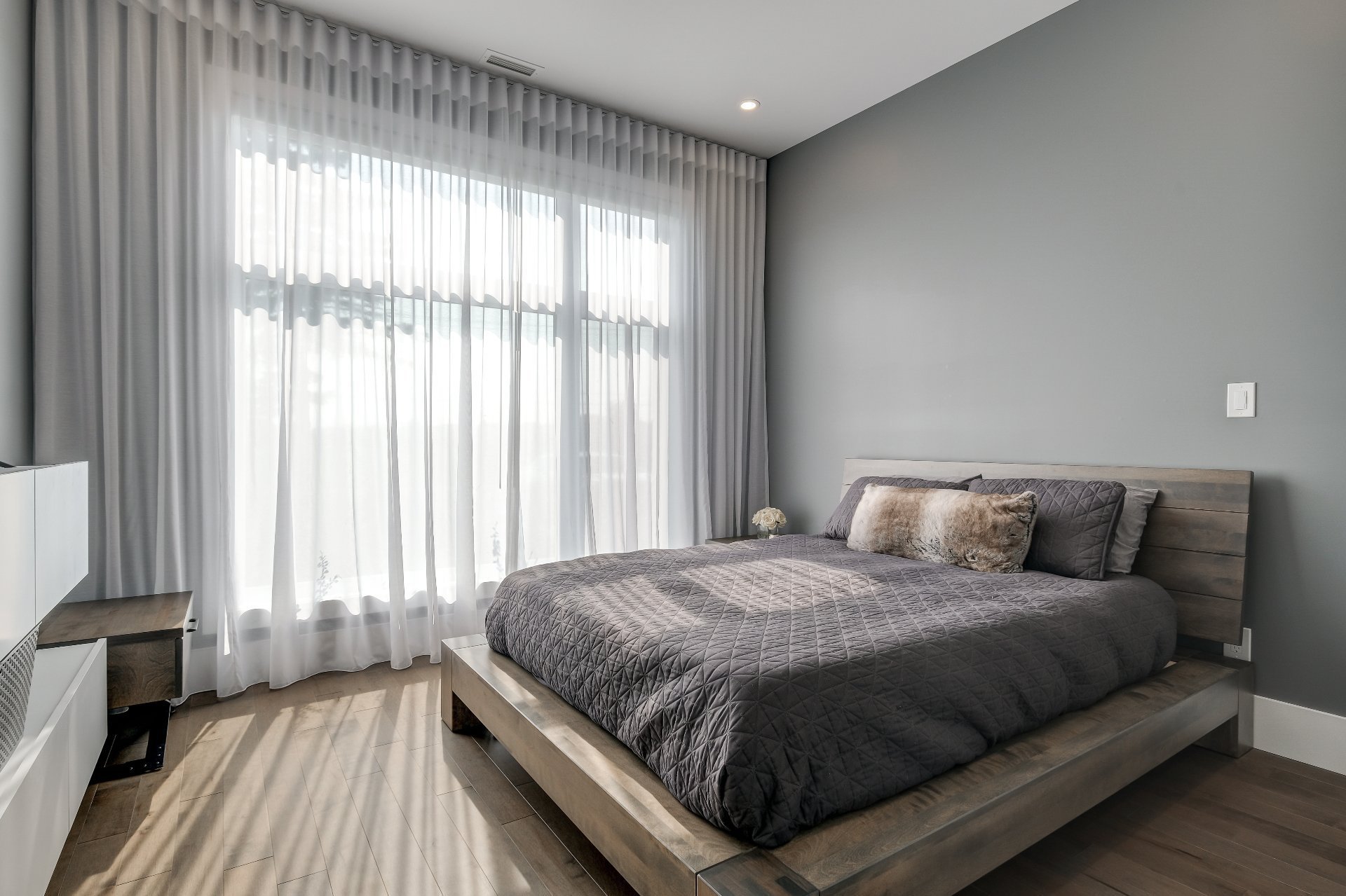 À l'intérieur, l'aire de vie principale à aire ouverte dégage une sensation d'espace et de fluidité. La cuisine, véritable chef-d'oeuvre moderne, se distingue par ses électroménagers encastrés haut de gamme, son immense îlot et son splendide cellier vitré qui s'intègre avec élégance au salon.