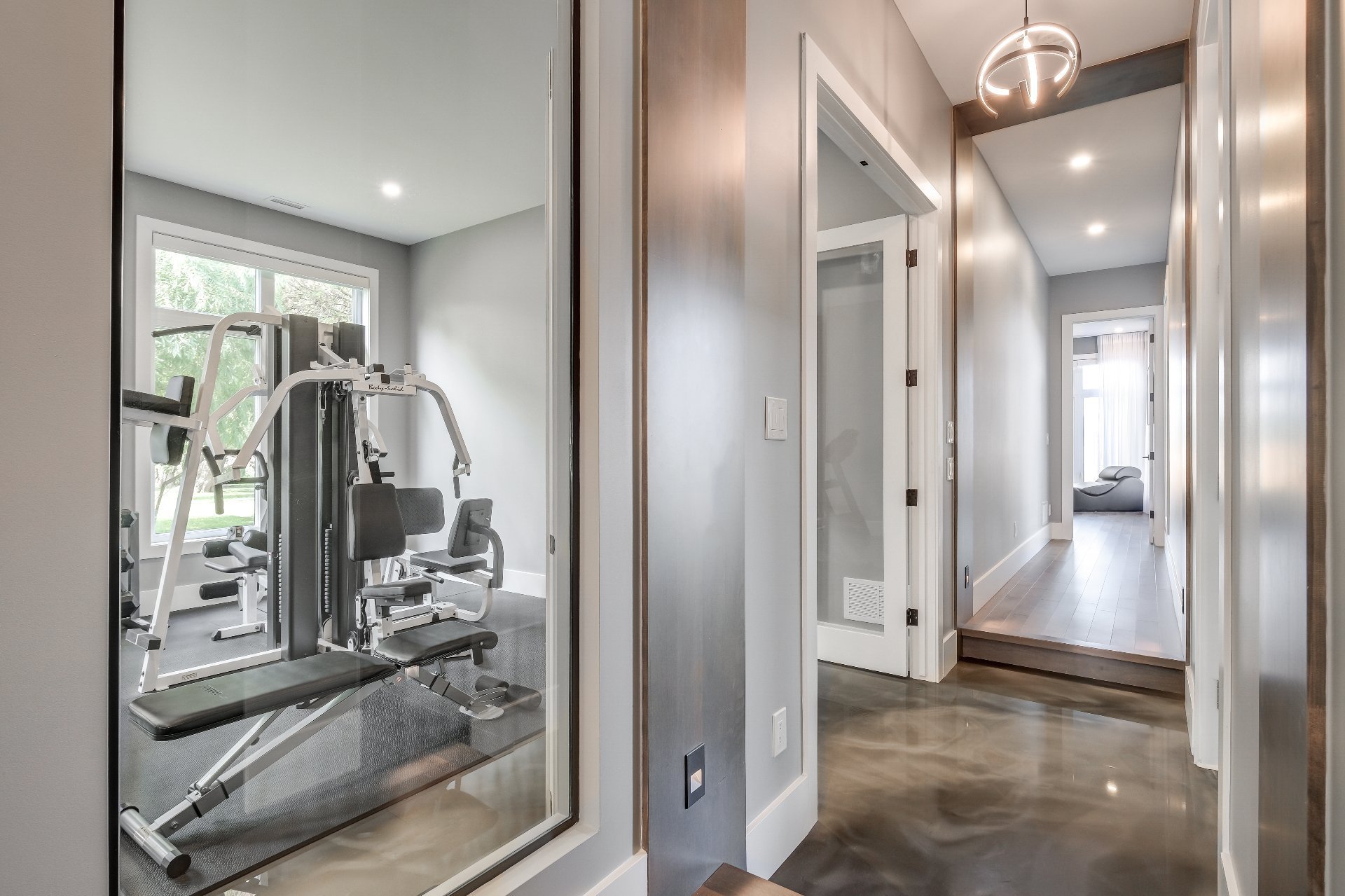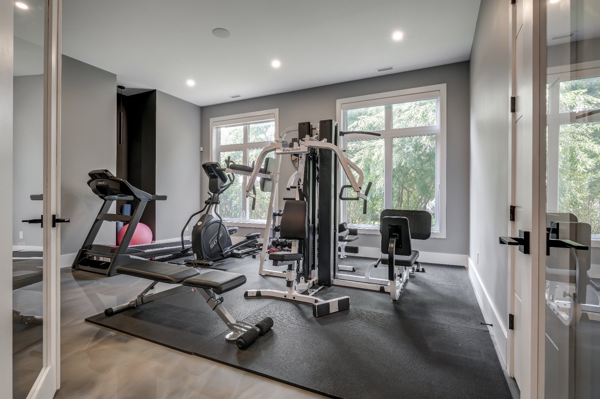 Une salle d'exercice bien équipée, convertible en quatrième chambre, ajoute une flexibilité d'aménagement. Le hall d'entrée impressionne par sa penderie intégrée, et un bureau à domicile offre un espace discret pour travailler en toute sérénité.
