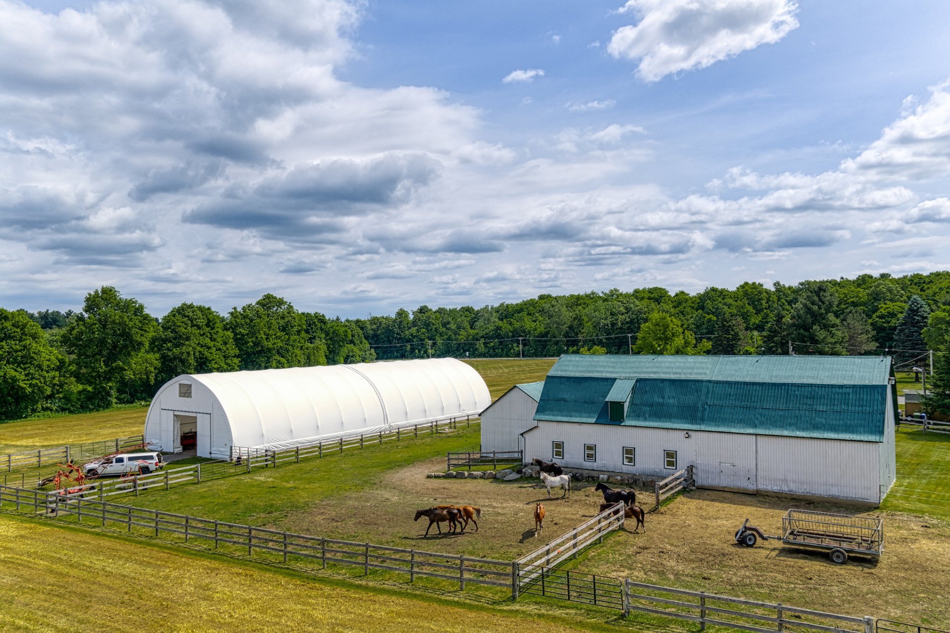 Pour les amateurs d'équitation, le domaine comprend 2 écuries avec des boxes pour chevaux. Une autre écurie est disponible pour petits animaux tels que poneys, ânes, poules. Un grand hangar, ainsi qu'un atelier et un grand garage entièrement équipés - parfaits pour les collectionneurs de voitures et motos. Ce garage pourrait servir aussi aux amateurs de plein air, ou ceux qui recherchent un espace multifonctionnel pour des activités créatives.