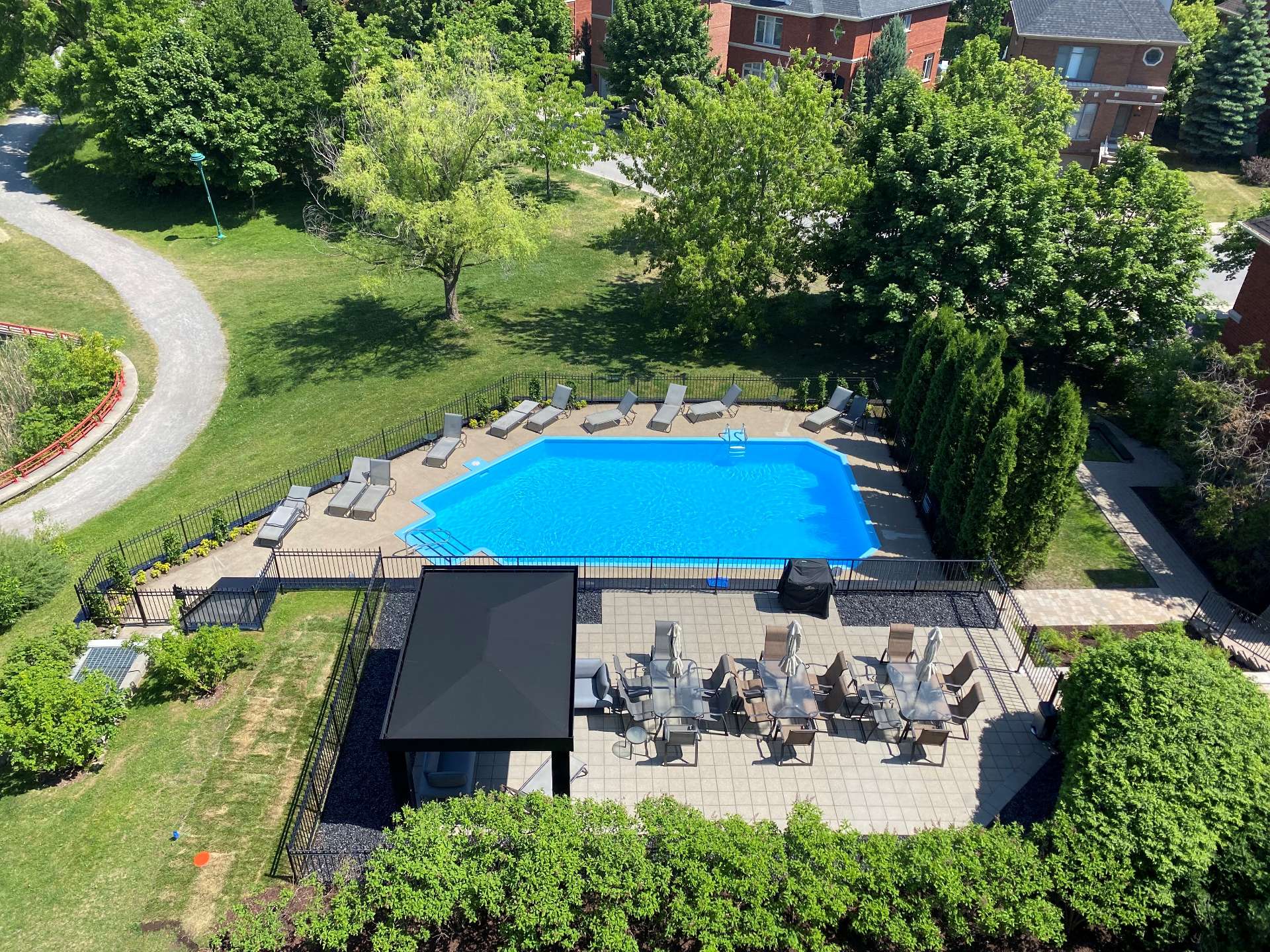 Cette propriété inclut également un espace de rangement (locker) ainsi qu'un stationnement intérieur double en tandem. Située au sein d'une copropriété réputée elle offre également l'accès à une agréable piscine extérieure commune.