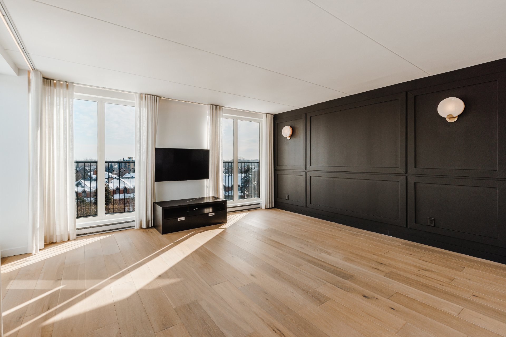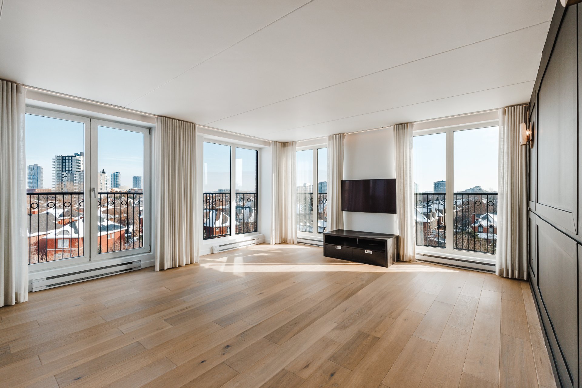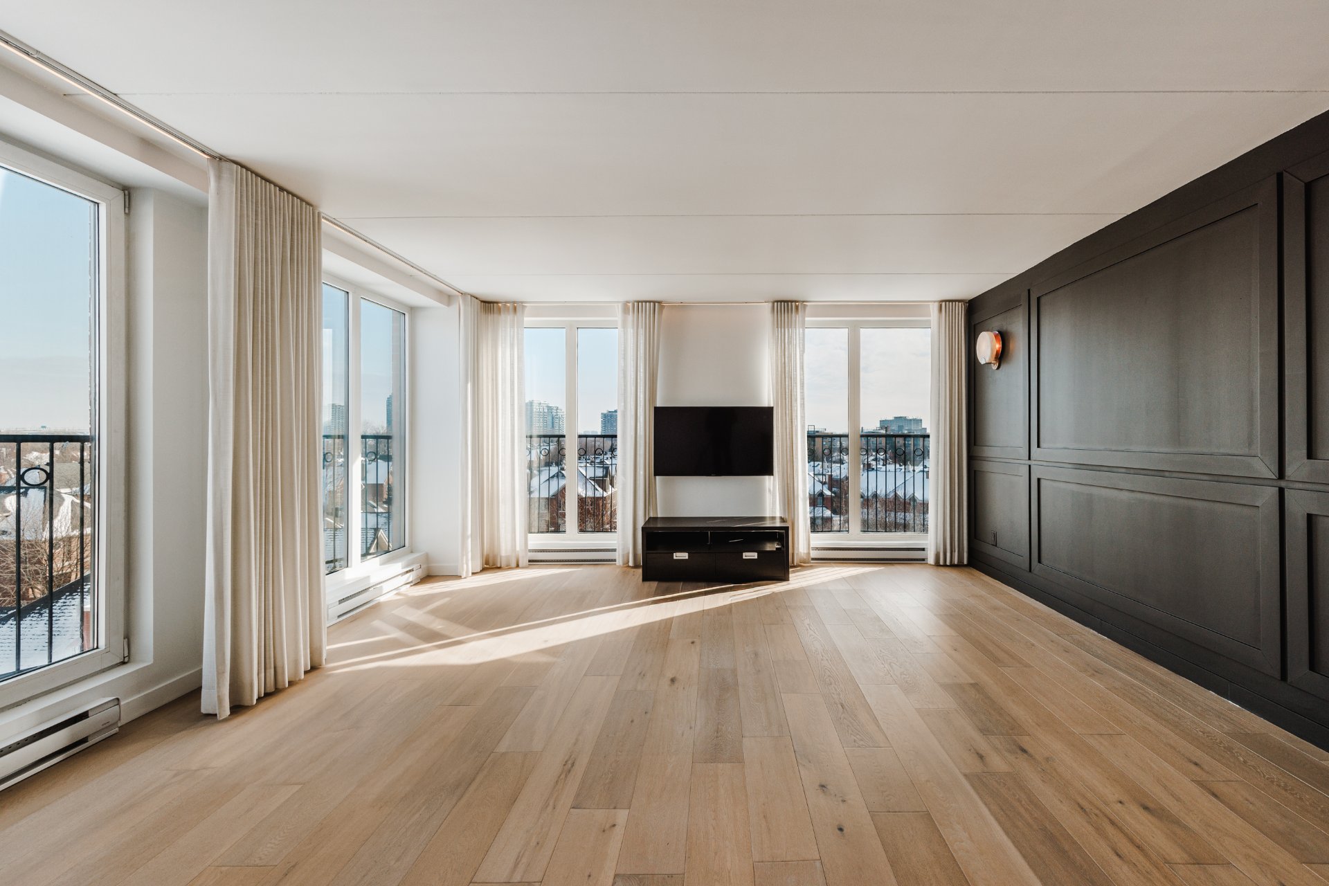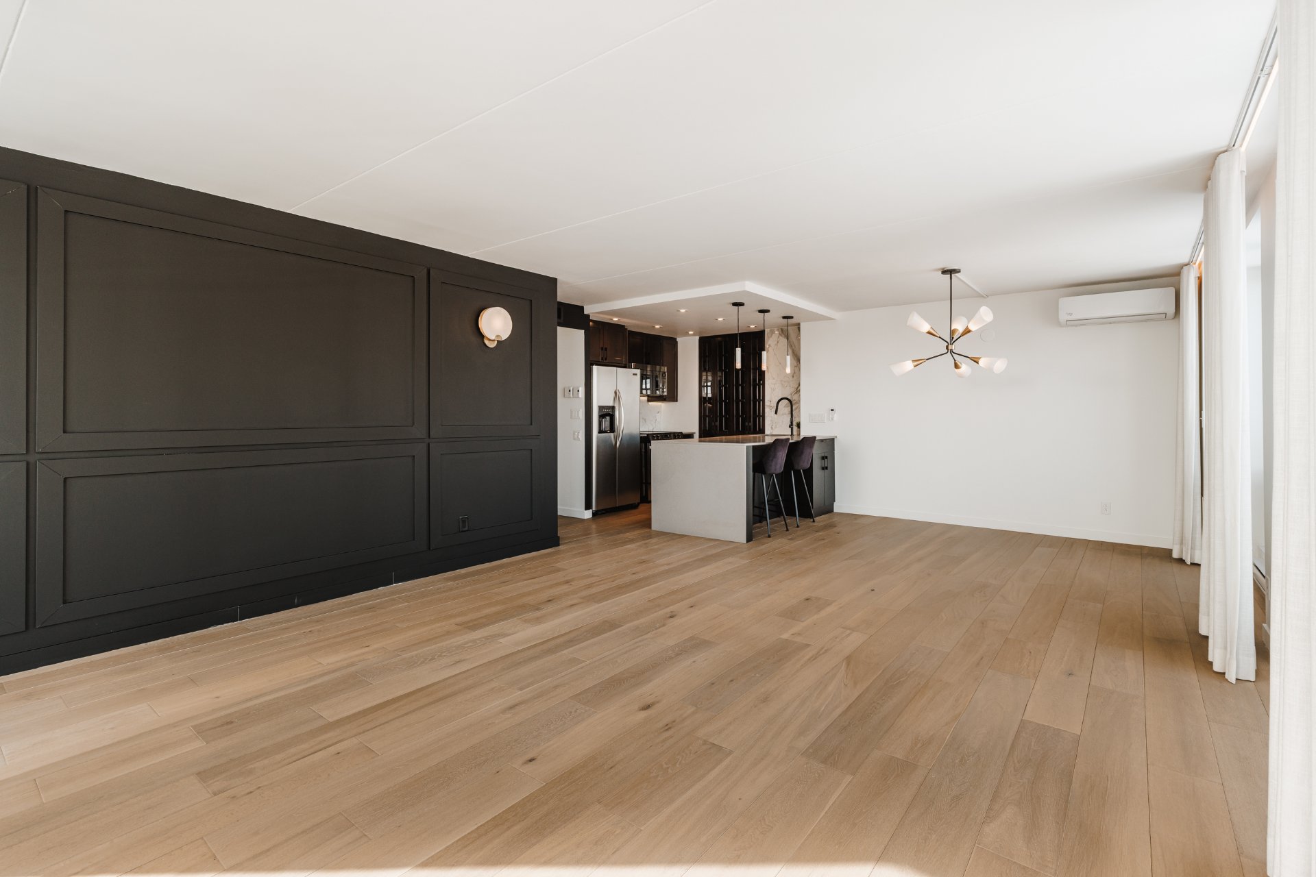 Superbe unité au design contemporain offrant un espace de vie à aire ouverte inondé de lumière naturelle grâce à ses spectaculaires fenêtres pleine hauteur. La cuisine, à la fois élégante et raffinée, propose un vaste îlot et des armoires pleine hauteur, alliant esthétisme et fonctionnalité, un espace idéal pour recevoir.