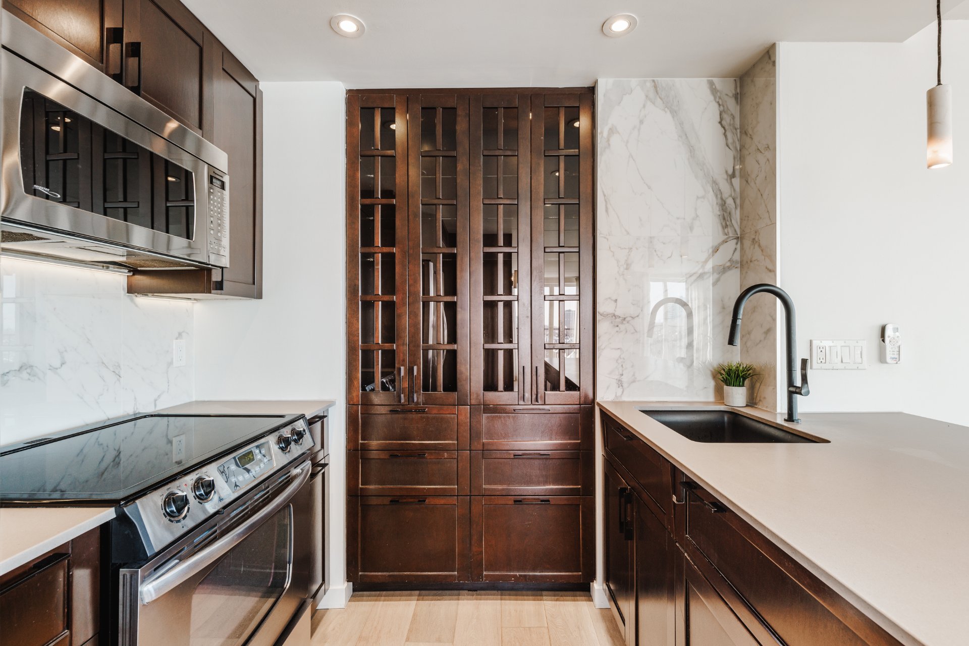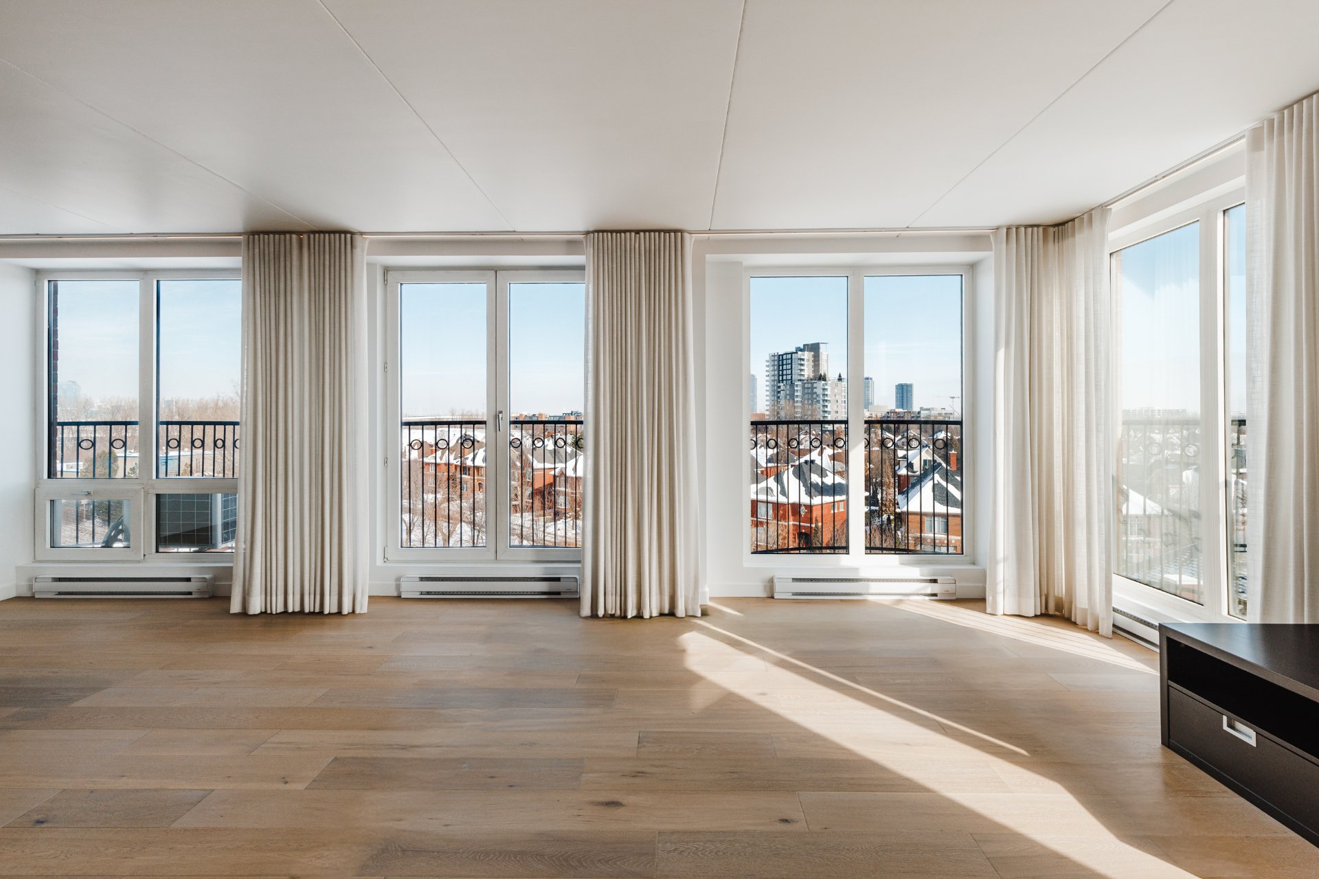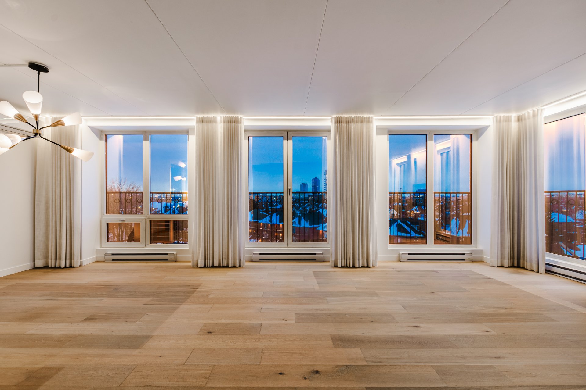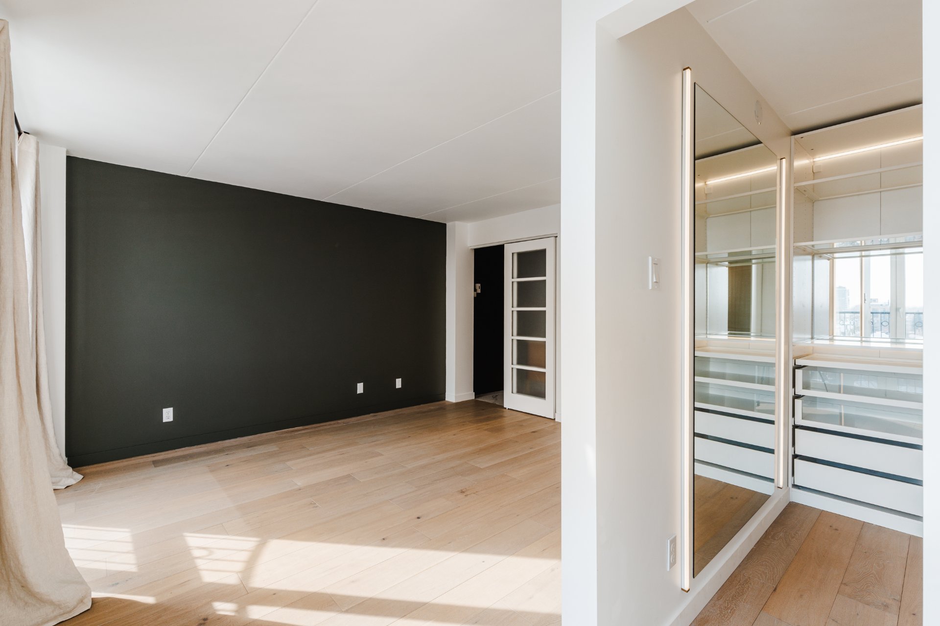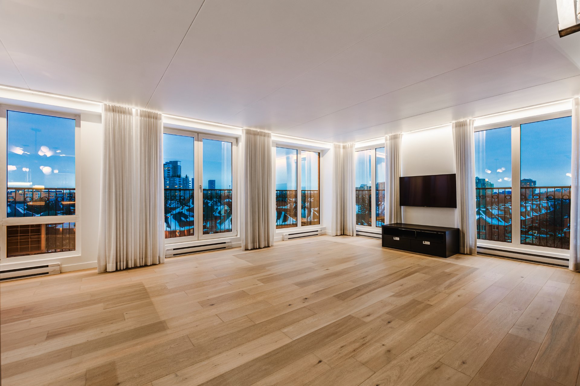Superbe unité au design contemporain offrant un espace de vie à aire ouverte inondé de lumière naturelle grâce à ses spectaculaires fenêtres pleine hauteur. La cuisine, à la fois élégante et raffinée, propose un vaste îlot et des armoires pleine hauteur, alliant esthétisme et fonctionnalité, un espace idéal pour recevoir.