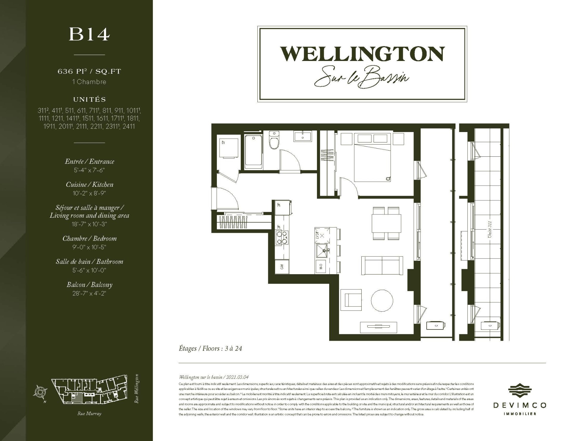 Cette tour angulaire prenant l'aspect d'un prisme dévoile 380 unités offrant jusqu'à 1304 pi2 d'espace. Dans un environnement inspiré d'une élégance discrète et d'un luxe subtil, Wellington sur le Bassin propose des studios, condos 1 à 3 chambres empreints d'un chic feutré. Le projet propose également des aires communes exclusives incluant un centre d'entraînement, une piscine extérieure, une plage de détente avec terrasse aménagée et un chalet urbain. *Le prix affiché inclus les promotions en vigueur et ne peut être jumelé à aucune autre offre ou promotion.