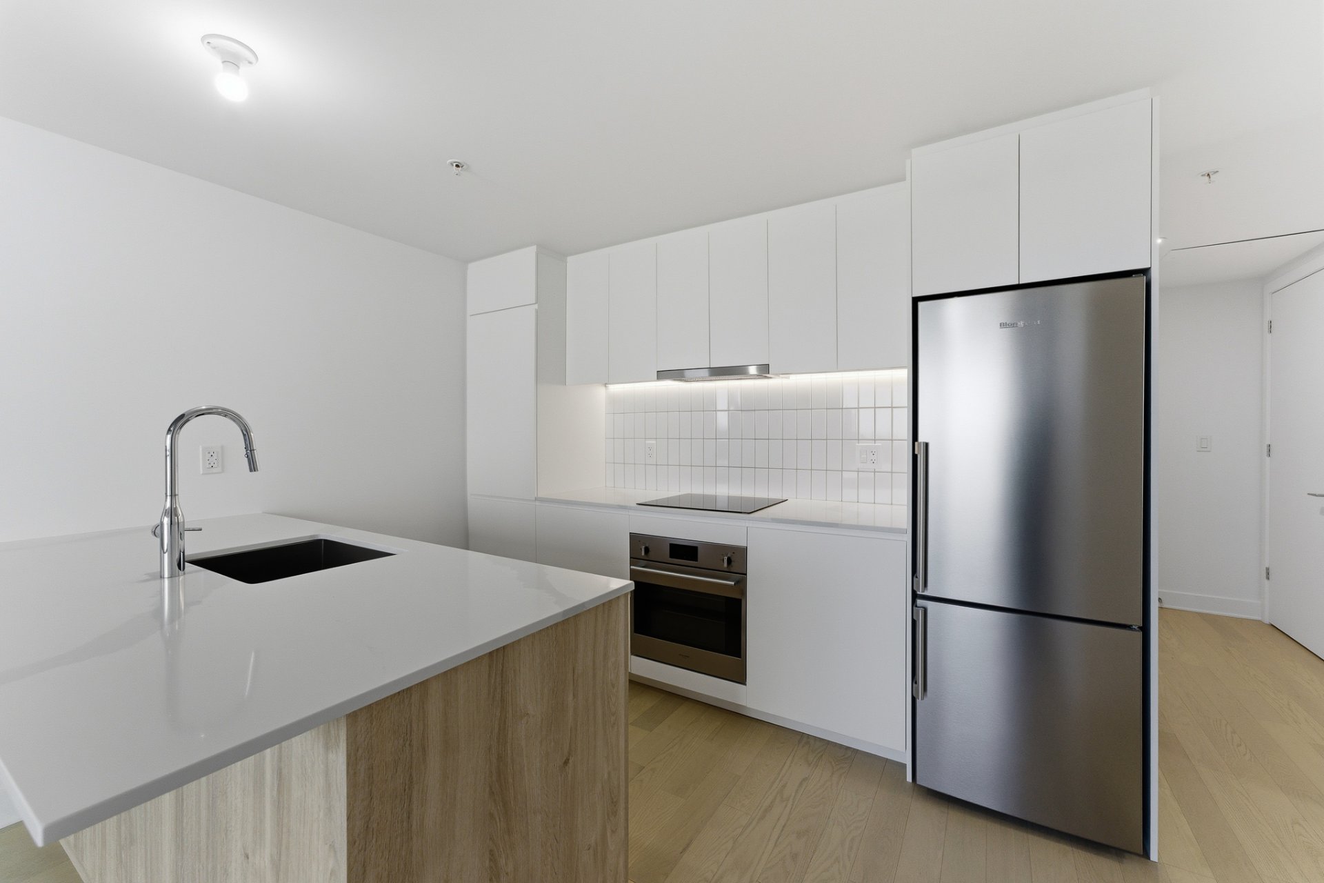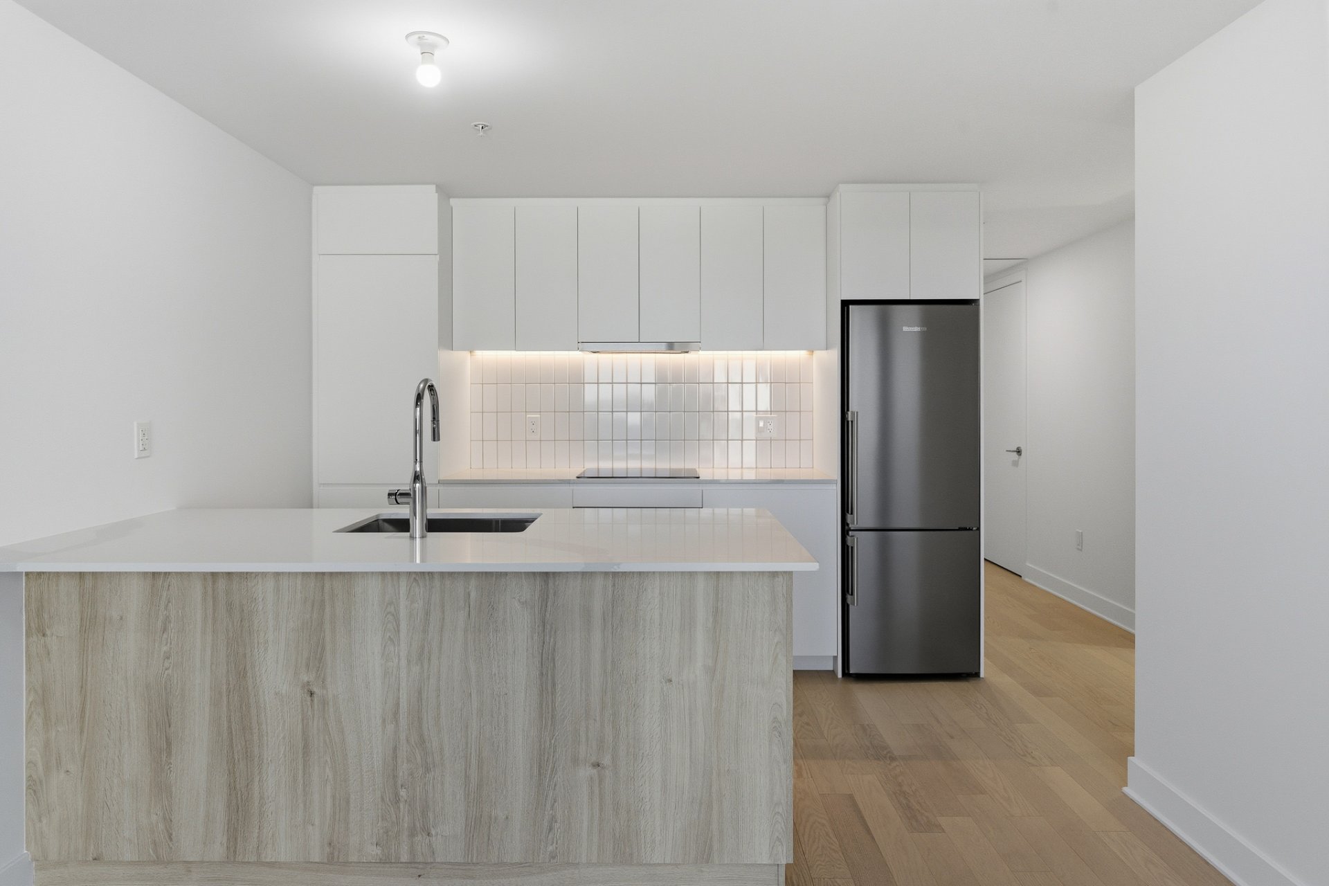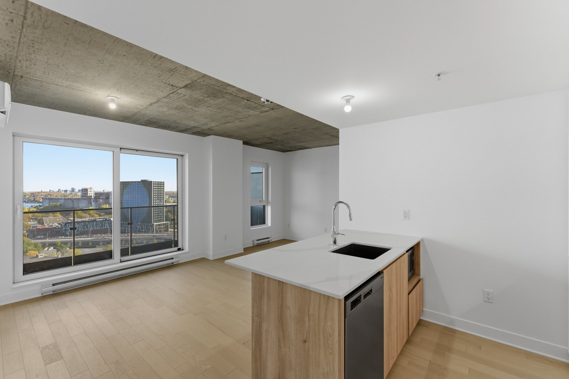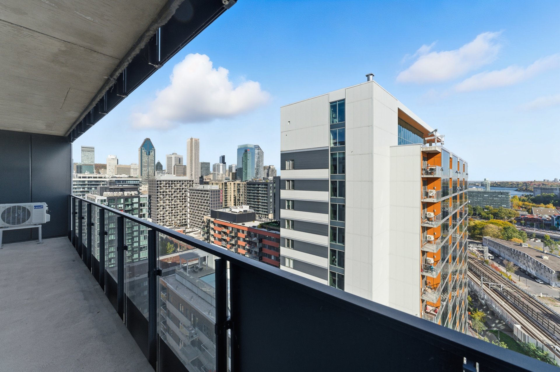 L'espace de vie à aire ouverte, baigné de lumière naturelle grâce aux immenses fenêtres, crée une ambiance moderne et raffinée. Le balcon privé vous permet de profiter pleinement du panorama urbain, entre le centre-ville et le canal de Lachine.