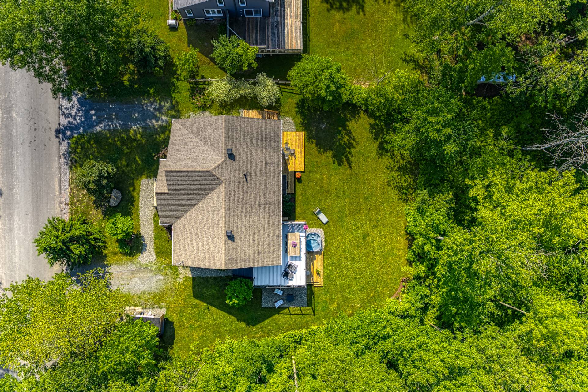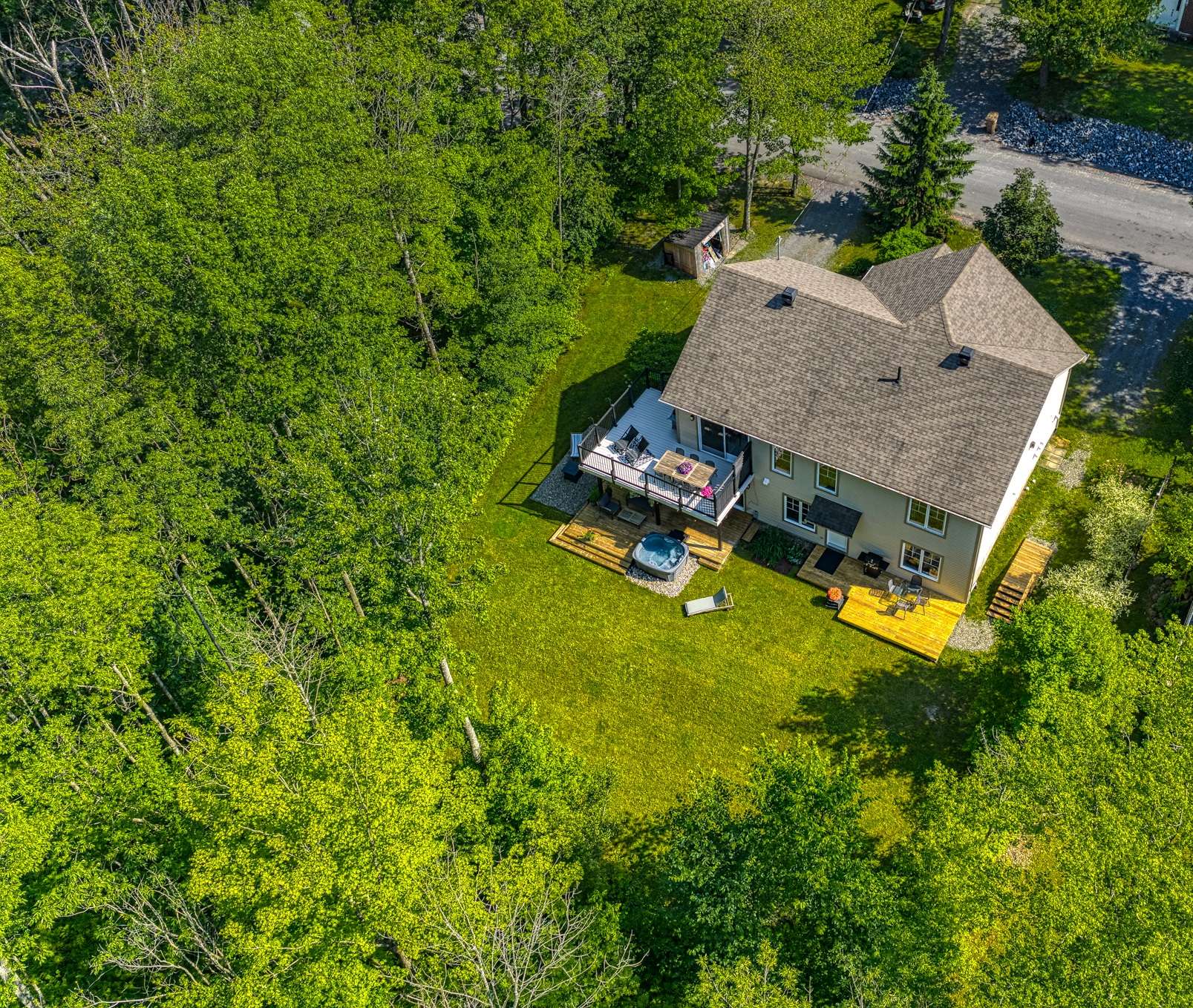 Entourée de beaux arbres matures, cette propriété se distingue par son caractère intergénérationnel et son accès notarié au lac Brome, situé à seulement cinq minutes de marche. Un cadre naturel d'exception où la lumière, l'intimité et la tranquillité se rencontrent.