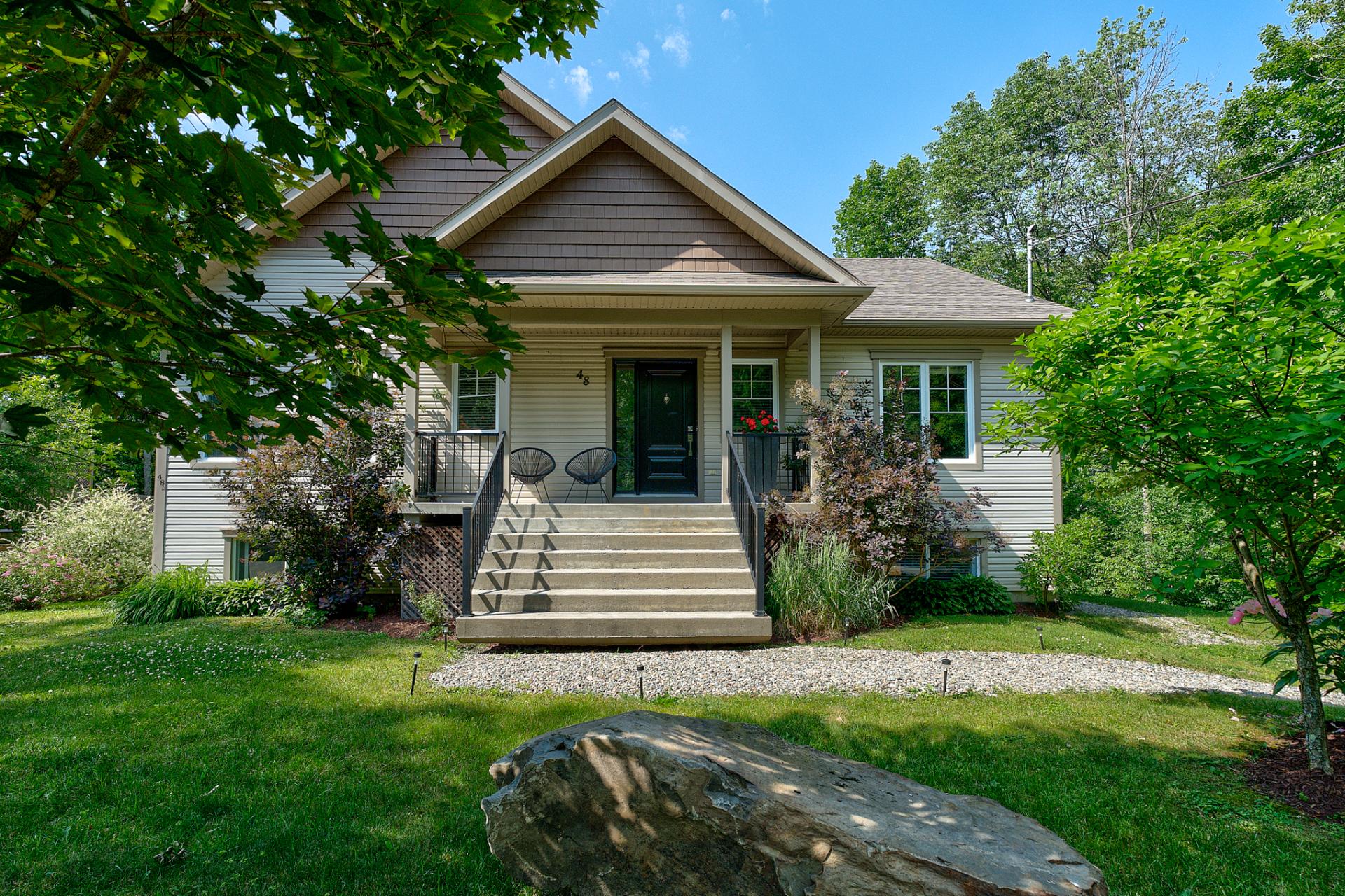 Spacieux plain-pied intergénération apportant des revenus annuels de plus de 18 000$. Situé en rez-de-jardin, l'appartement se veut lumineux et comprend une chambre, un salon, une cuisine, une salle de bain complète avec un coin buanderie & une terrasse. Le rdc comprend 3 càc, une salle de bain et une salle de d'eau avec buanderie. Le plafond cathédrale, agrémenté de poutres apparentes, assure un beau volume. Les chambres sont grandes et la décoration est soignée. Secteur paisible, à quelques minutes de marche d'un accès notarié au lac Brome. Le terrain de 23 428 pi.ca. est composé d'un boisé à l'arrière, créant une belle intimité.