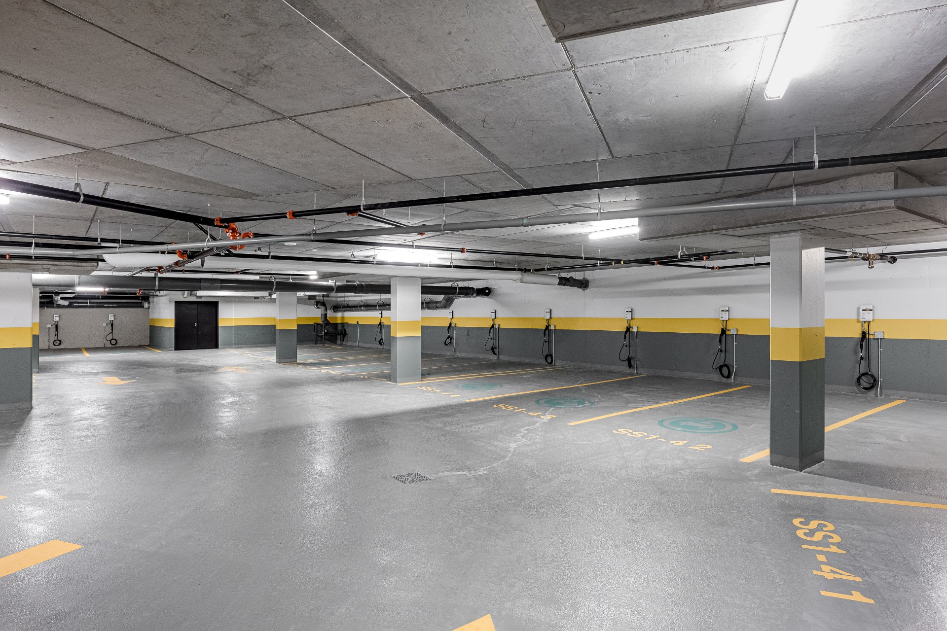 - 5 appareils inclus, soit réfrigérateur, four, lave-vaisselle, laveuse et sécheuse, ainsi que les couvre-fenêtres et l'eau chaude. Frais supplémentaires mensuels : casier 35 $, stationnement standard 150 $, stationnement avec borne électrique 200 $.