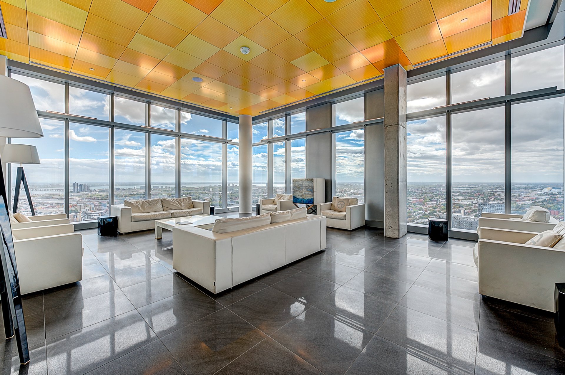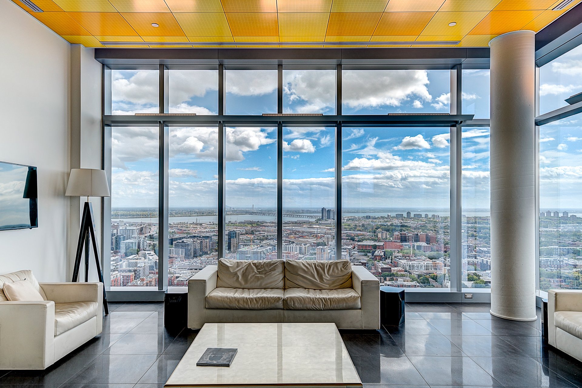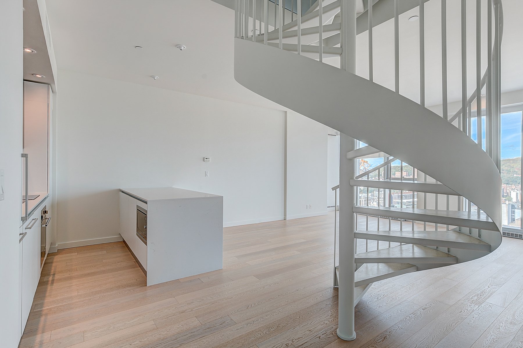 S'étendant sur deux niveaux, ce penthouse rare domine la ville avec des vues spectaculaires et dégagées sur le centre-ville de Montréal et son énergie vibrante. Grâce à ses immenses baies vitrées, chaque espace baigne dans la lumière et offre un panorama unique sur la métropole.
