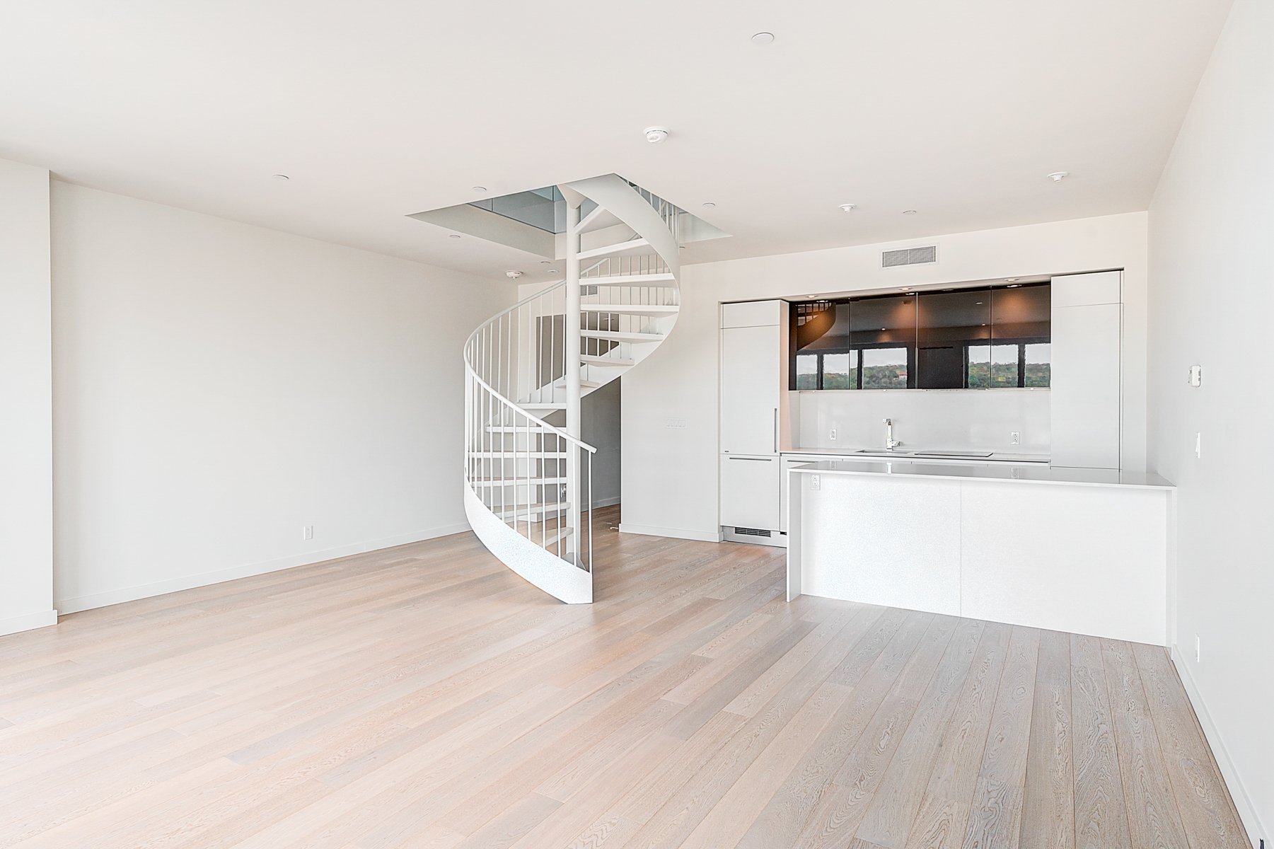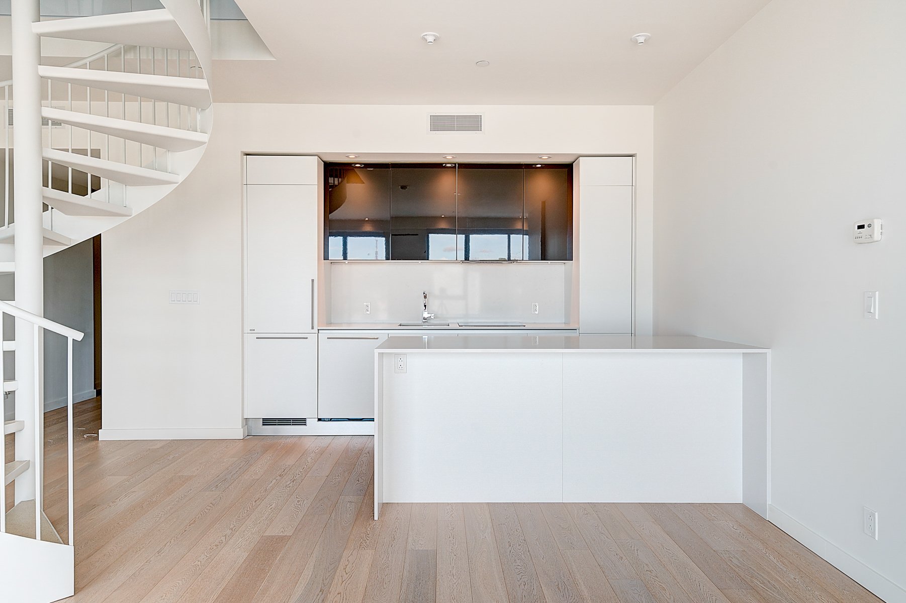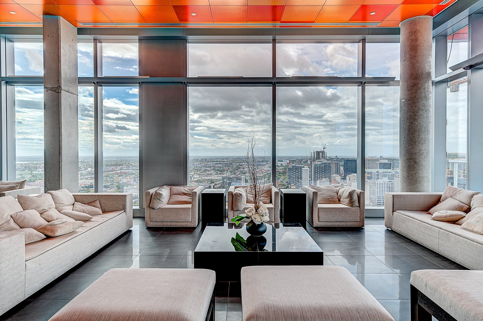 S'étendant sur deux niveaux, ce penthouse rare domine la ville avec des vues spectaculaires et dégagées sur le centre-ville de Montréal et son énergie vibrante. Grâce à ses immenses baies vitrées, chaque espace baigne dans la lumière et offre un panorama unique sur la métropole.