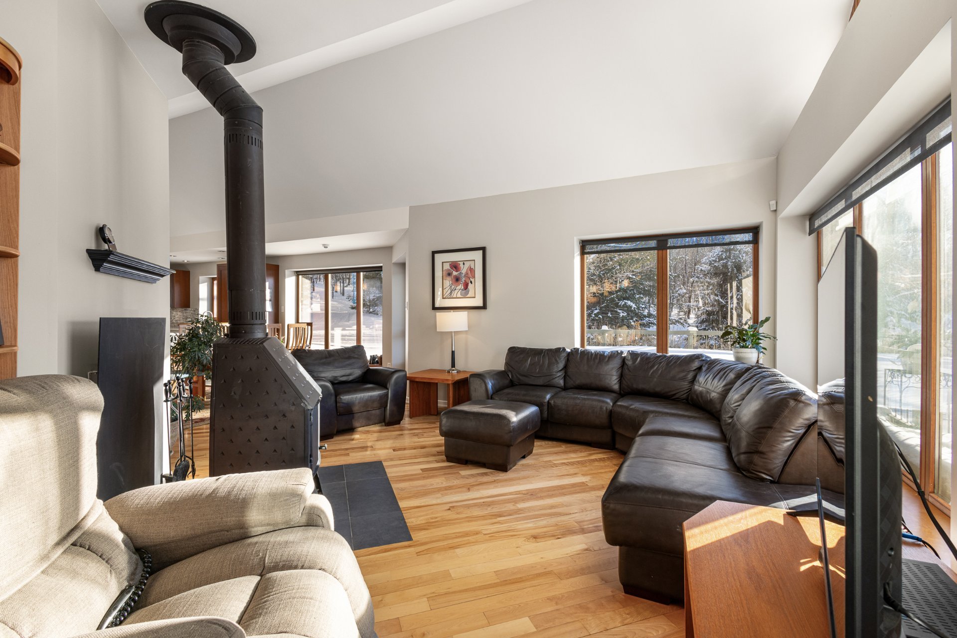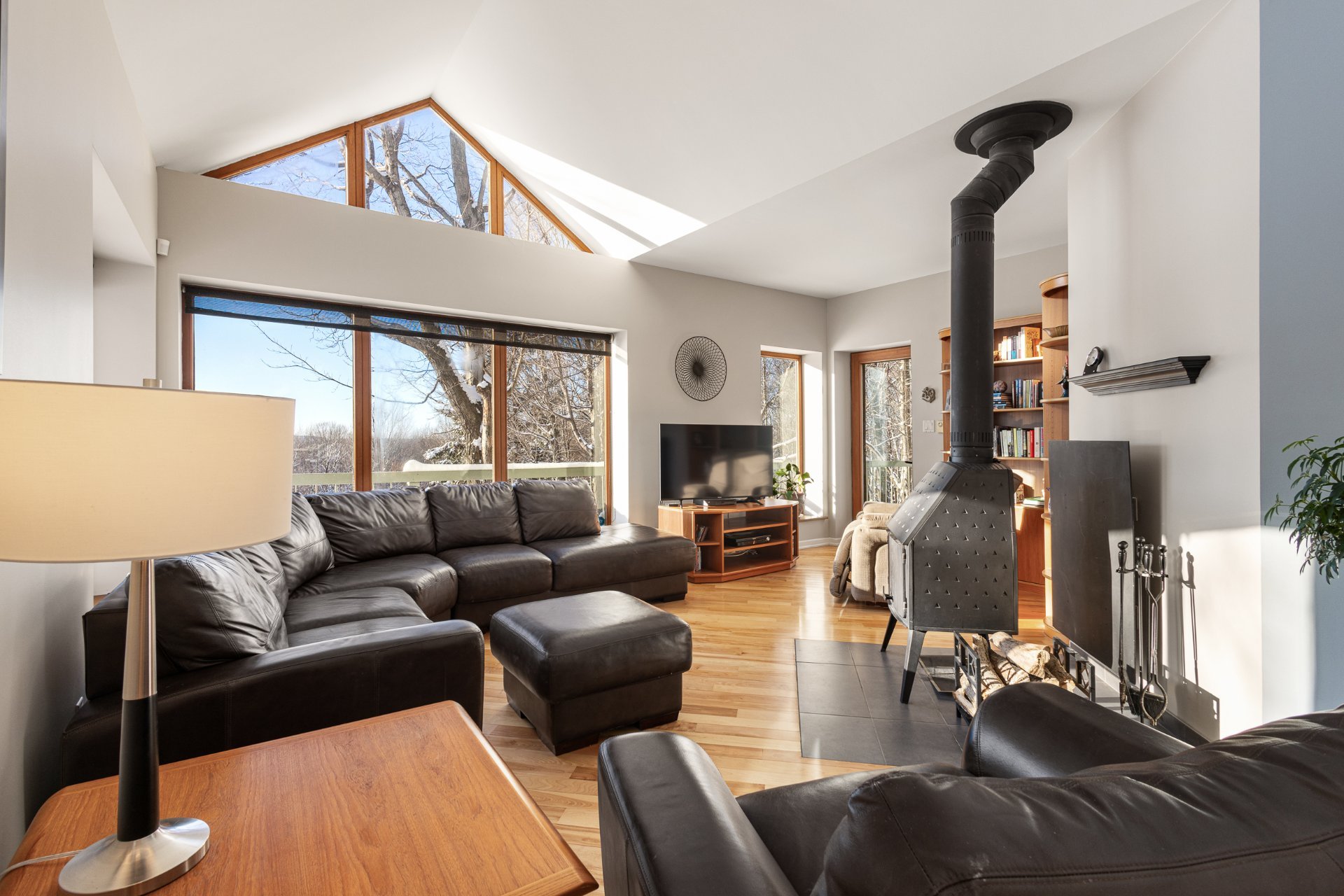 La maison principale, récemment rénovée, allie élégance moderne et confort. Son espace de vie à aire ouverte baigne dans une lumière naturelle abondante grâce à une impressionnante fenestration et des plafonds cathédrale majestueux. Le salon, invitant et convivial, est agrémenté d'un magnifique poêle à bois, tandis que la cuisine, aussi fonctionnelle qu'esthétique, offre des finitions haut de gamme: comptoirs en quartz, îlot central avec plaques de cuisson, plancher chauffant en céramique, four encastré et espace cellier.