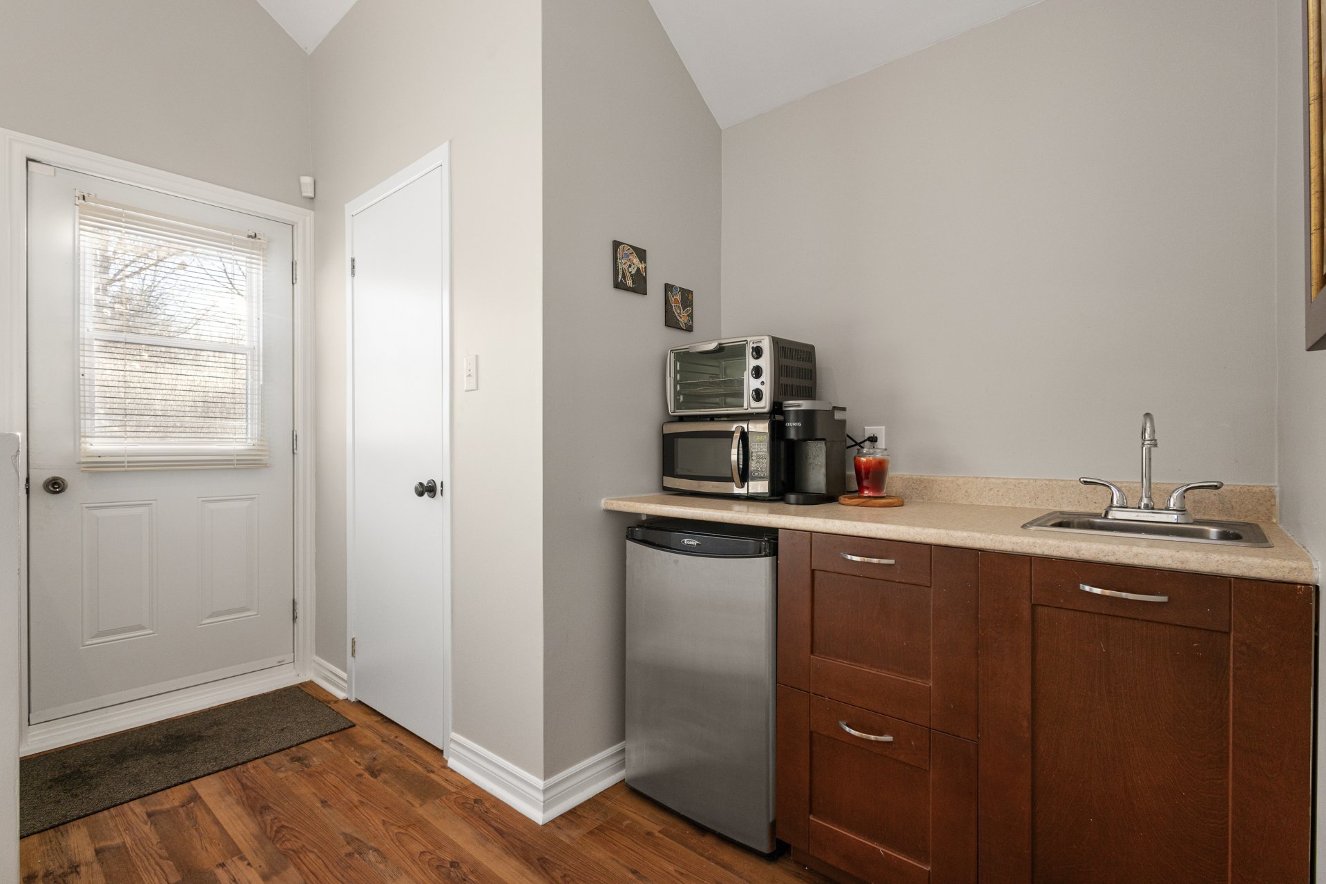 Sur la propriété, une seconde maison vient parfaire ce lieu d'exception. Ce loft, conçu avec soin, offre un espace de vie ouvert sous un plafond cathédrale, une chambre douillette, une salle de bain avec douche et une cuisinette pratique. Idéal pour accueillir la famille et les amis en visite, ou même pour offrir à un adolescent son premier espace en toute indépendance, tout en restant à proximité.