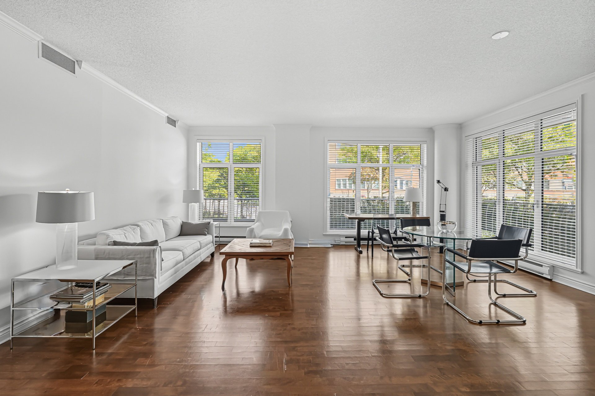 Le Crescent! Ce condo clé en main de 2 chambres surplombe une rue résidentielle paisible au coeur de Ville-Mont-Royal. Les aires ouvertes salon/salle à manger sont baignées de lumière grâce à une double exposition, rehaussées de hauts plafonds et de planchers en bois. La cuisine semi-fermée propose électros inox et comptoir-repas. La suite principale dispose d'un coin lecture/bureau, walk-in et salle de bain (bain et douche séparés). Une 2e chambre, une seconde salle de bain, une buanderie et un rangement optimisent le plan. Garage, casier, portier, gym, terrasse commune et stationnement visiteurs. Proche des parcs, commerces et transports.