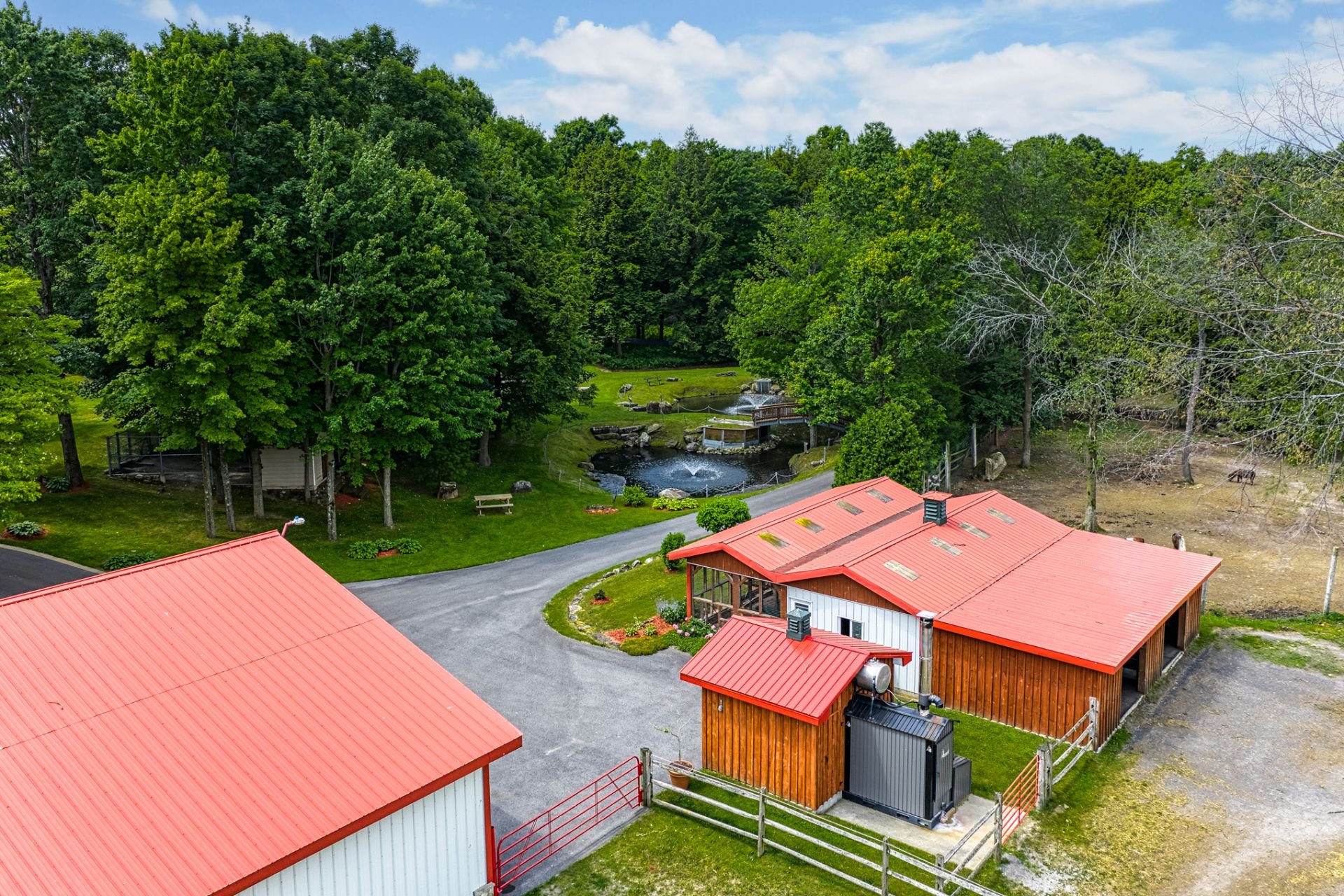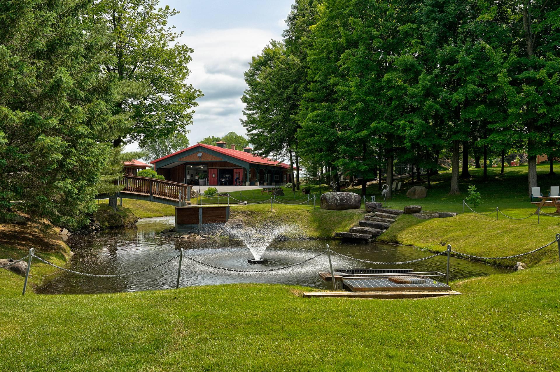 À l'extérieur, de nombreux espaces de détente, des étangs avec fontaines et un charmant pont couvert pour traverser la rivière Hinchinbrooke. Le tout dans un cadre féerique. Qu'il s'agisse d'organiser des réceptions, de faire des promenades dans la nature ou simplement de se prélasser dans la paix et la tranquillité, le Domaine Legler promet un style de vie empreint de confort, d'intimité et de prestige. Tout cela à une courte distance de Montréal, et à l'écart de l'agitation de la vie urbaine.