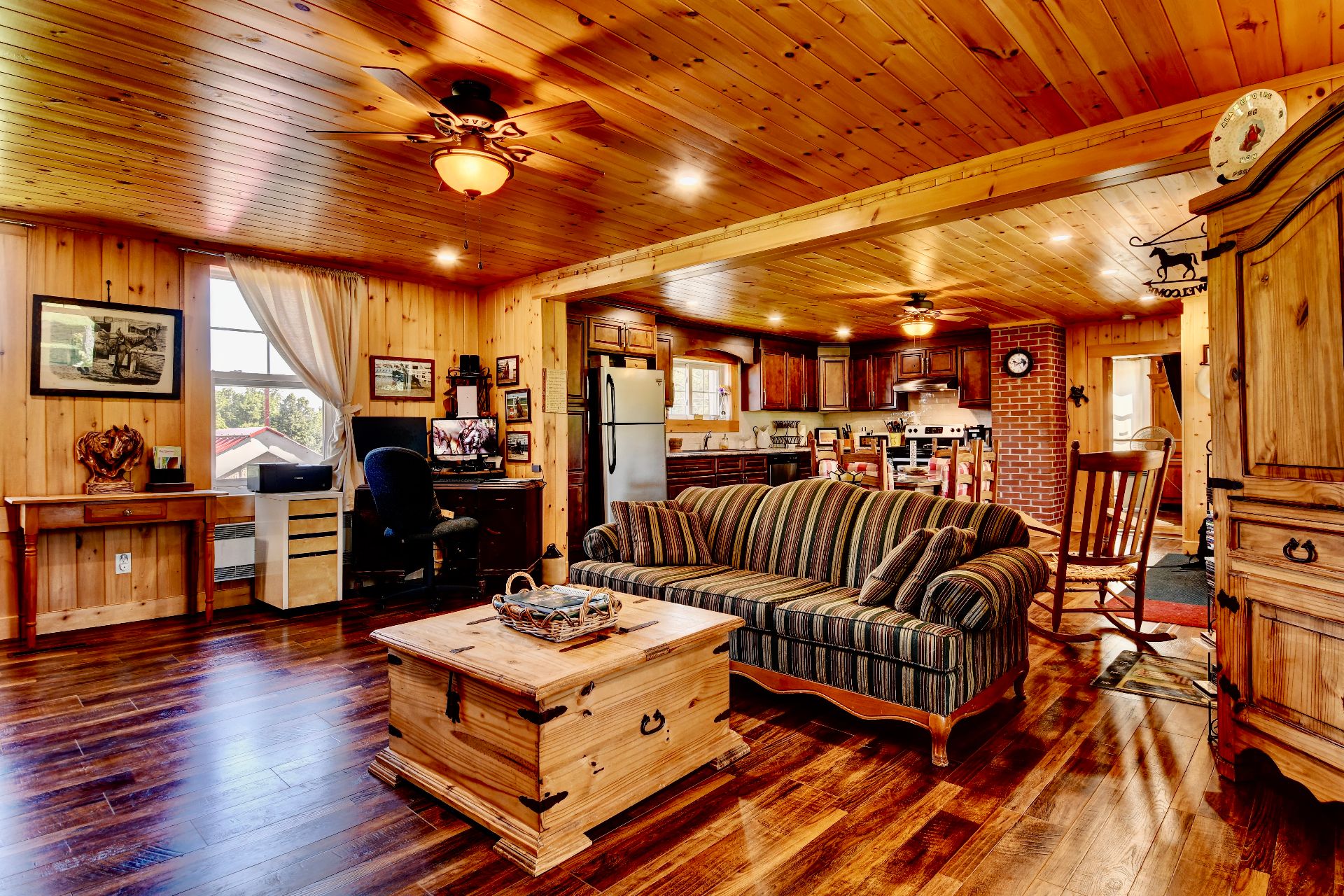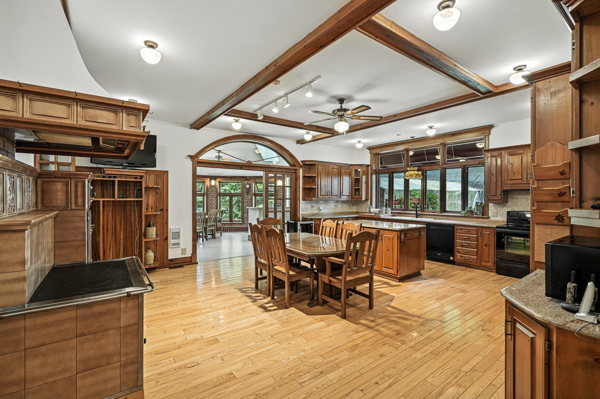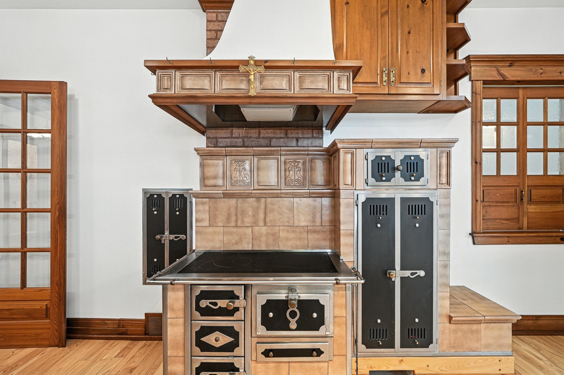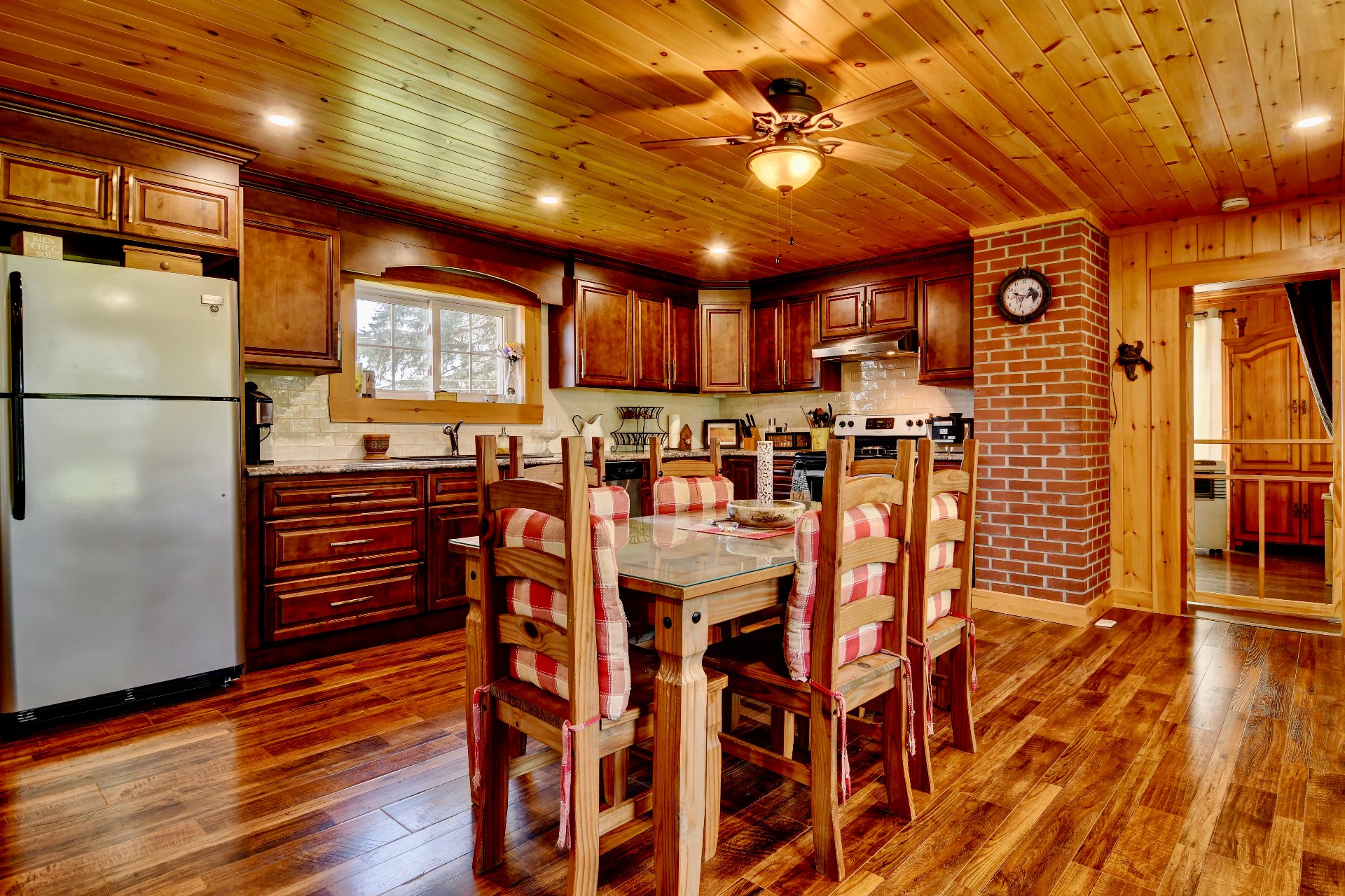 Au coeur du domaine se dresse une majestueuse résidence, où chaque détail reflète l'harmonie entre l'histoire de ce lieu et la modernité. Le rez-de-chaussée impressionne avec son plafond cathédrale et ses vastes fenêtres qui baignent l'intérieur de lumière naturelle offrant des vues panoramiques. Les finitions en bois fastueuses, les briques apparentes et les tons chauds créent une atmosphère à la fois accueillante et sophistiquée dans toute la maison.