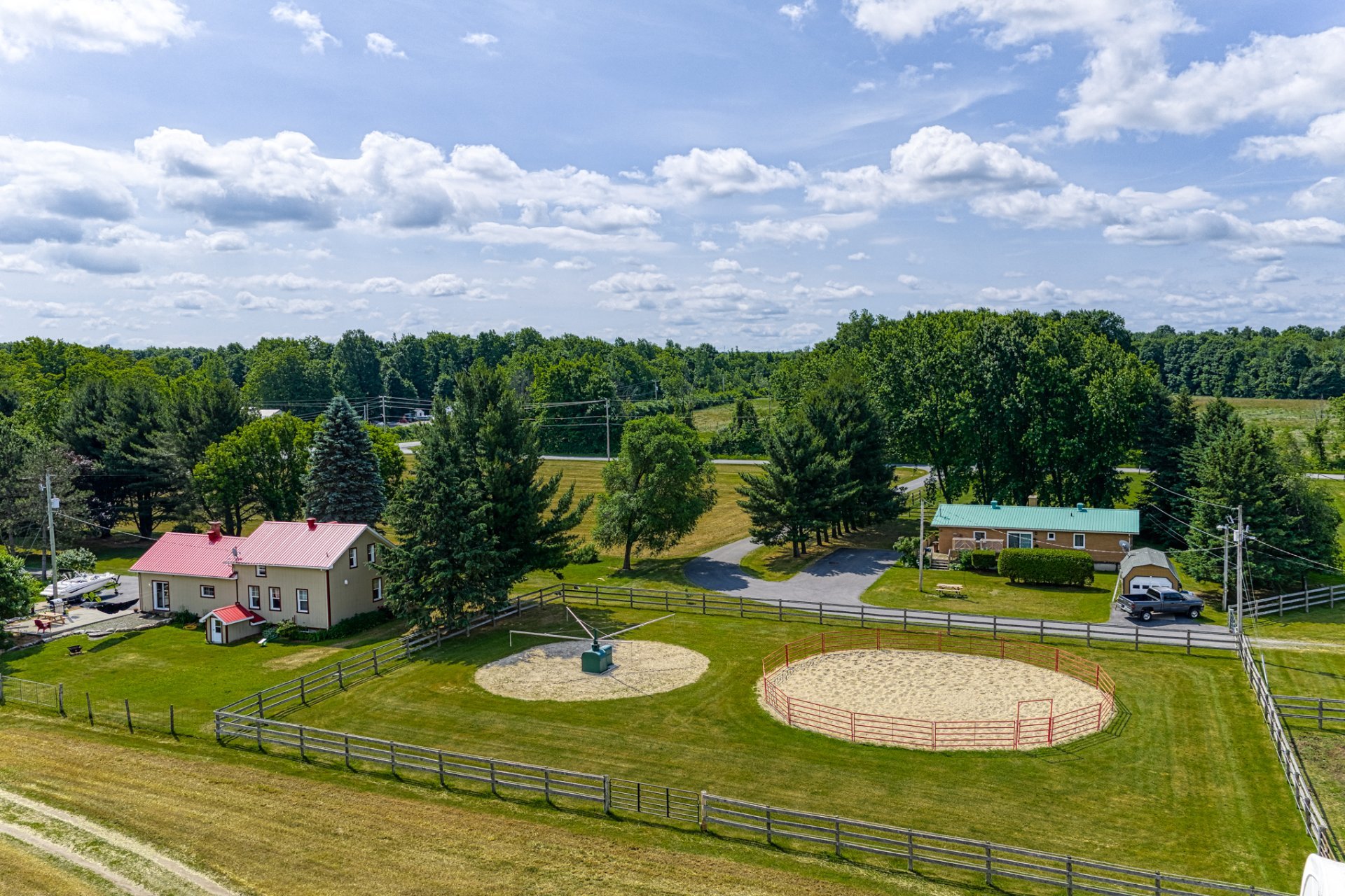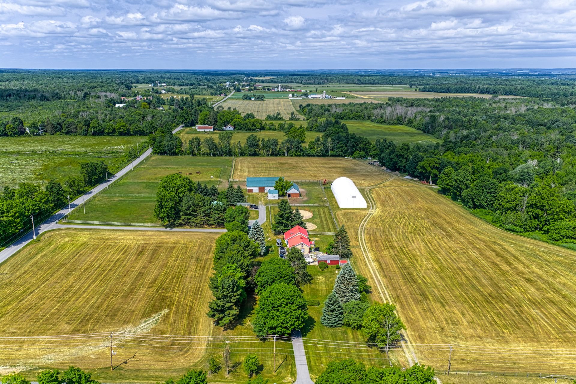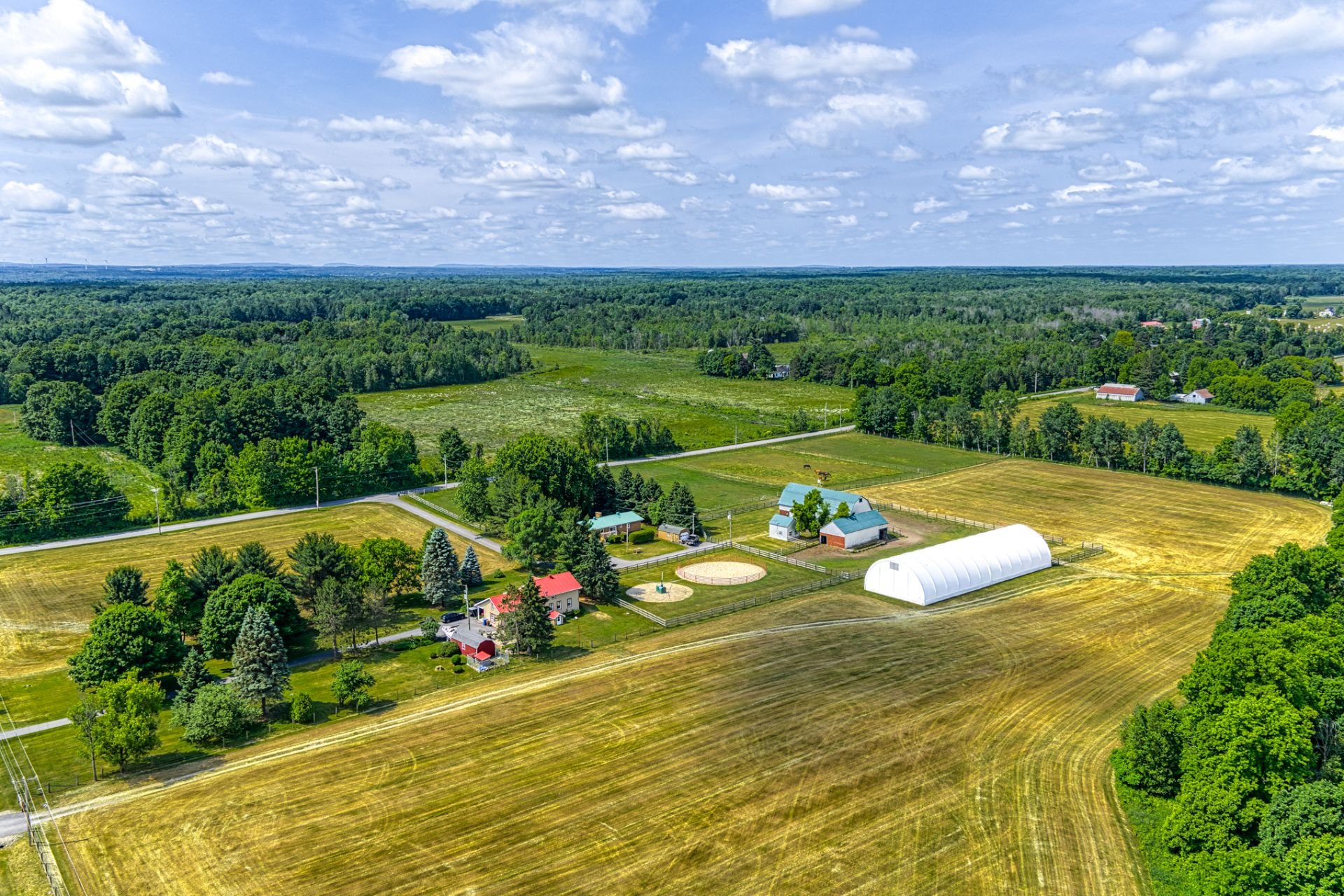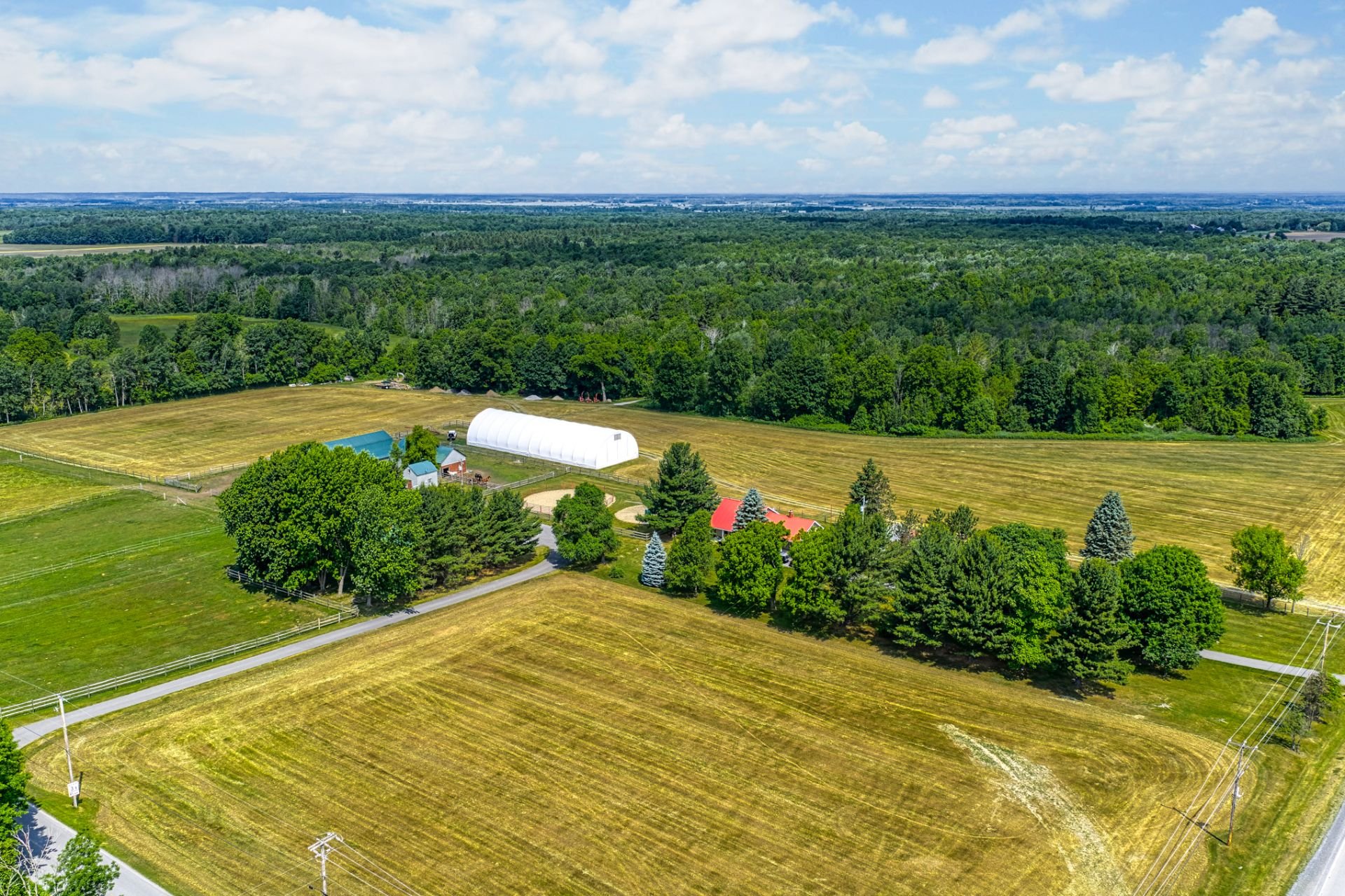 LE PRESTIGIEUX DOMAINE LEGLER, construit en 1992, incarne l'élégance intemporelle. Situé sur d'environs 140 acres de campagne paisible, la magnifique rivière Hinchinbrooke serpente à travers la forêt et plus de 10km de larges sentiers privés. La somptueuse maison principale, construite avec des matériaux nobles, est dotée de hauts plafonds baignés de lumière naturelle et d'un salon et d'une salle à manger à aire ouverte. Le joyau de la maison, une grande piscine intérieure, vous invite à vous détendre tout au long de l'année. 2 autres maisons totalement indépendantes, écuries, garages et paddocks complètent ce domaine exceptionnel.