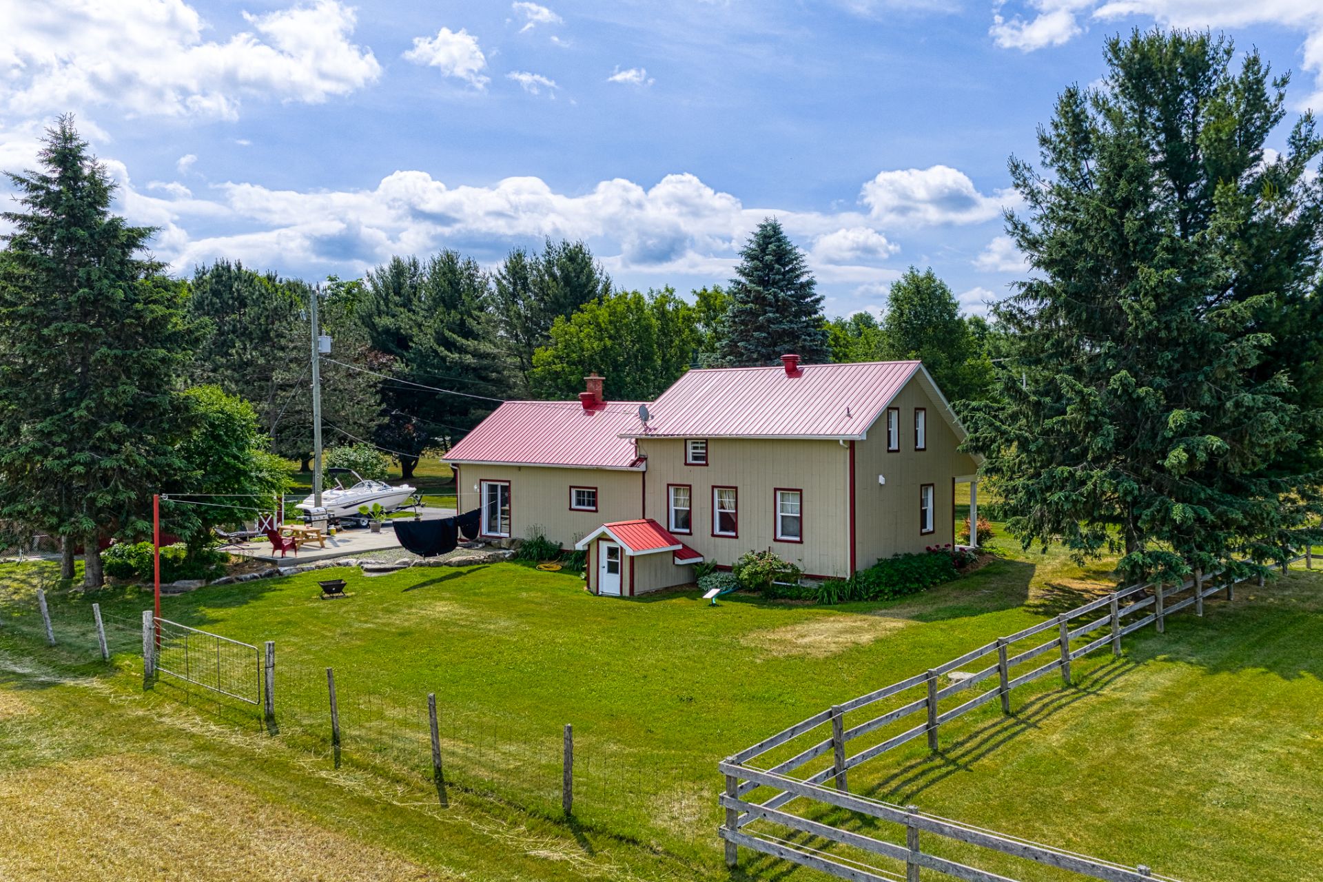 Cette propriété comprend 2 maisons supplémentaires, chacune avec 3 chambres à coucher, 1 salle de bain et un garage double. Chaque maison est équipée de sa propre adresse municipale, d'un puits artisanal et d'une fosse septique. Les deux maisons sont actuellement louées.