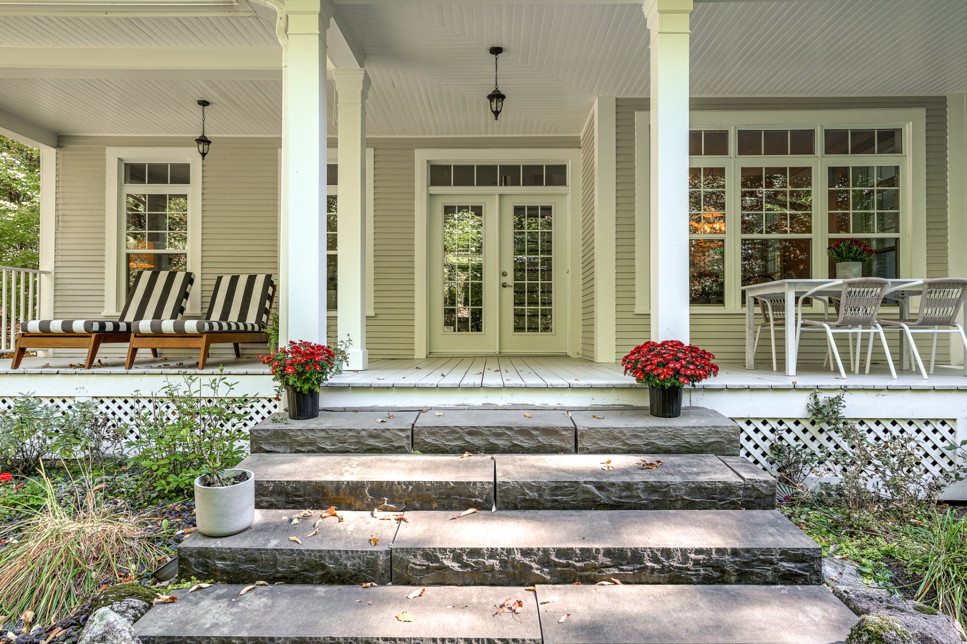 Les aires de vie se prolongent à l'extérieur grâce à une charmante terrasse couverte où se trouve un espace dédié aux repas et un à la relaxation. La nature est omniprésente, un vaste boisé intime longe le sentier de randonnée C1 pour un quotidien ancré dans la quiétude.