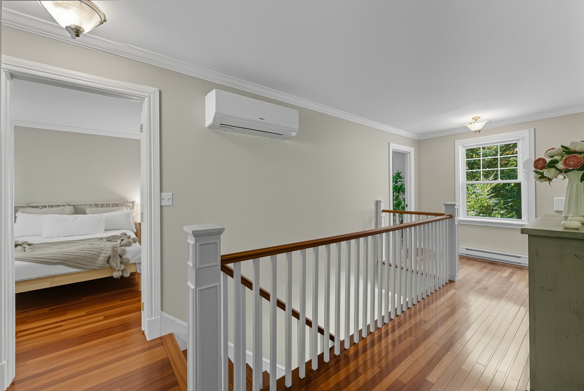 À l'étage, trois chambres composent un espace intime et reposant. La suite des maîtres propose une penderie pratique et une salle de bains attenante agrémentée d'un bain sur pattes et d'une douche à l'italienne en céramique.