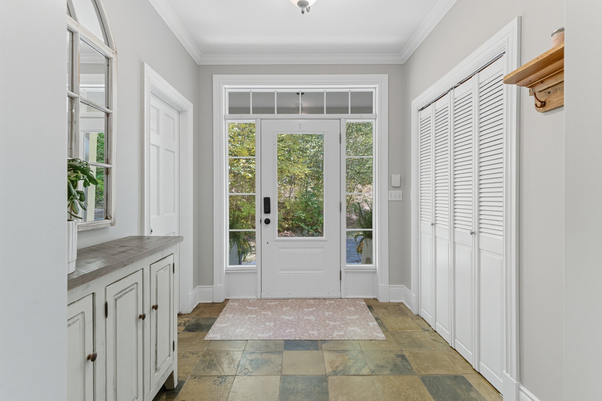 En retrait de la rue et enveloppée d'un écrin forestier, cette demeure habillée de bois séduit par sa prestance et son élégance intemporelle. Sa façade claire, ponctuée d'une fenestration guillotine avec impostes, laisse deviner des intérieurs baignés de lumière et ouverts sur la nature. Le sentier de pierre menant à l'entrée annonce déjà une maison où le raffinement se marie à la sérénité.