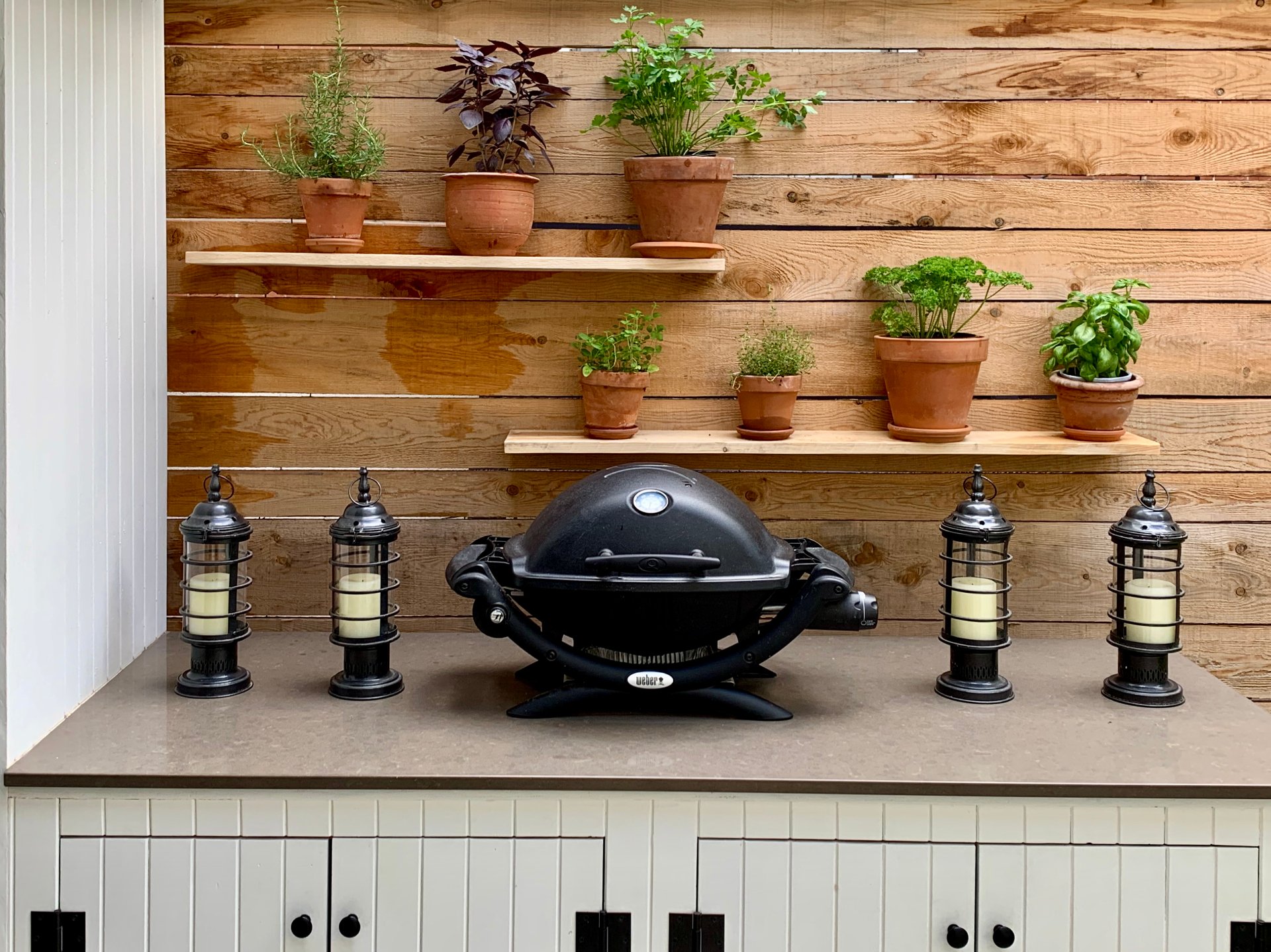 2020 : Installation de l'auvent rétractable et du comptoir de la cuisine d'été sur la terrasse