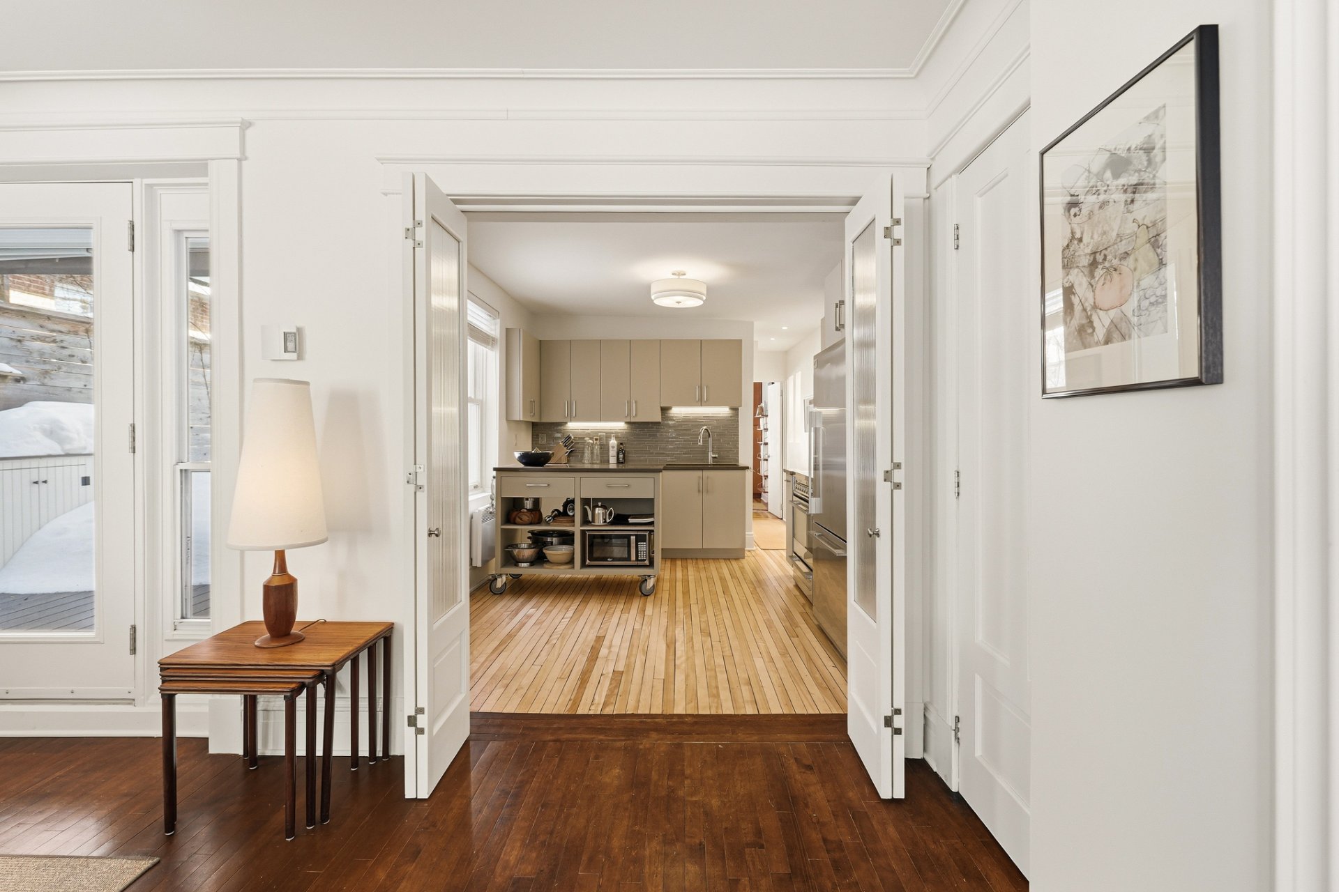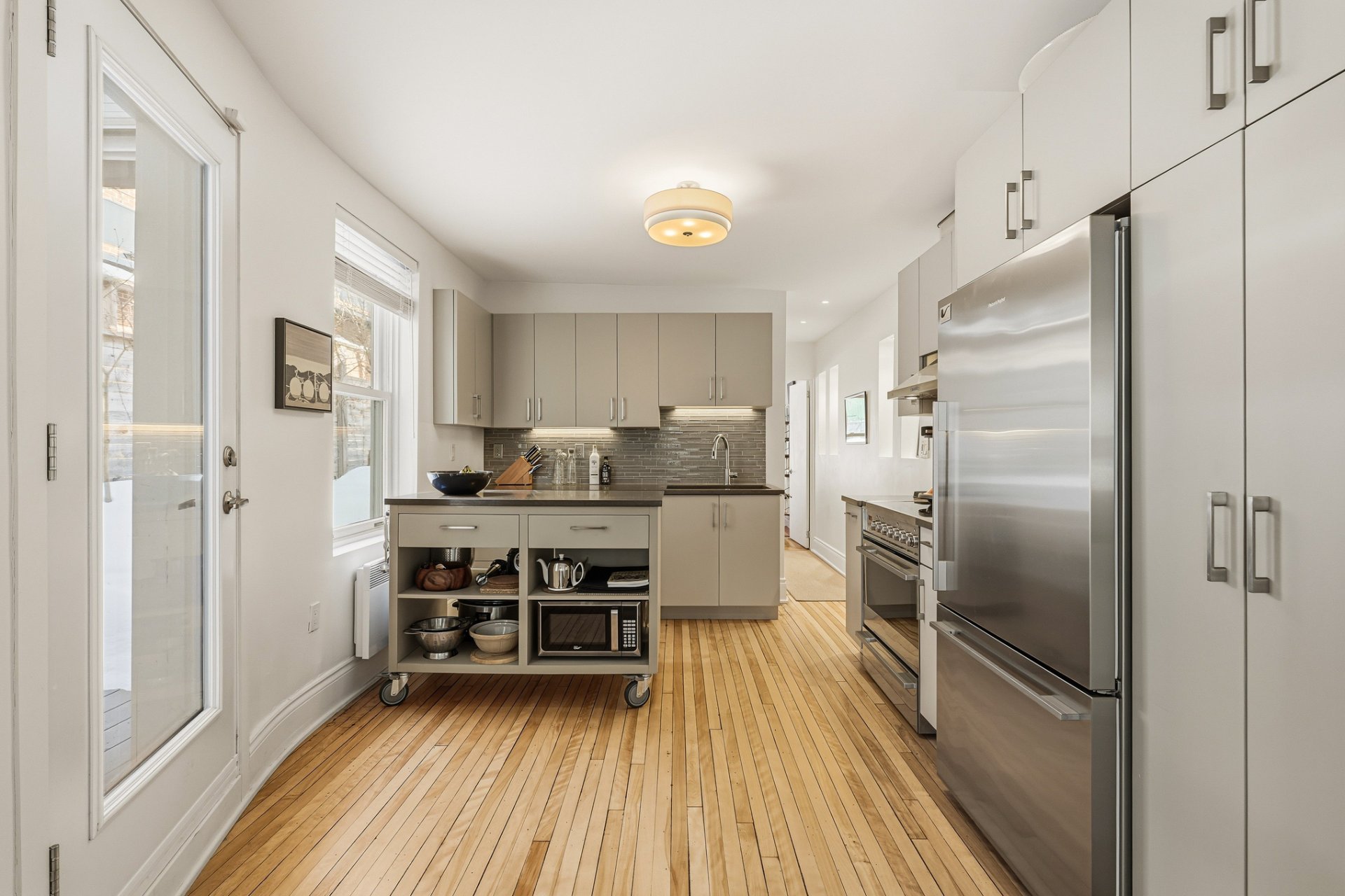 - Tous les électroménagers, tous les luminaires, stores, rideaux et tringles. Îlot amovible de la cuisine avec comptoir de quartz
