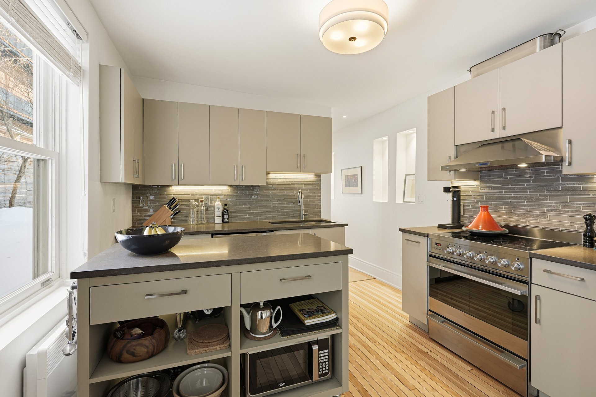 + Cuisine avec comptoir de quartz et ilot amovible agencé