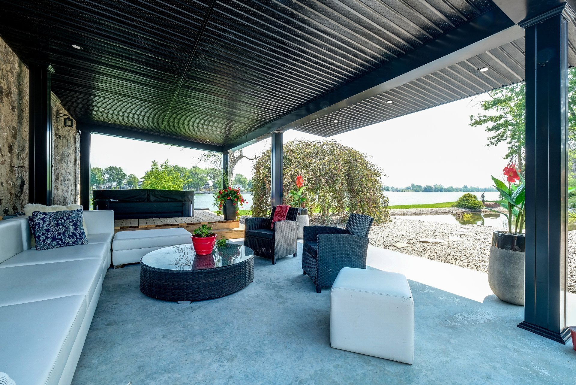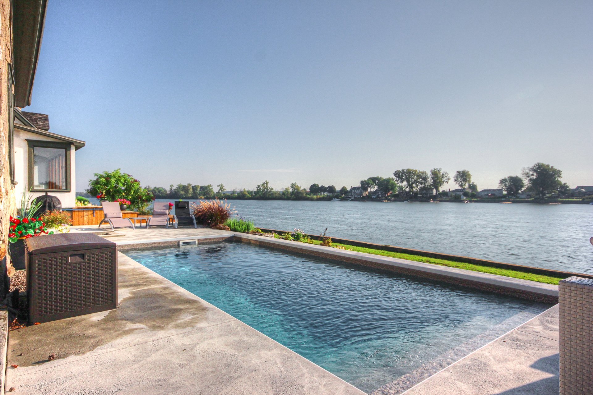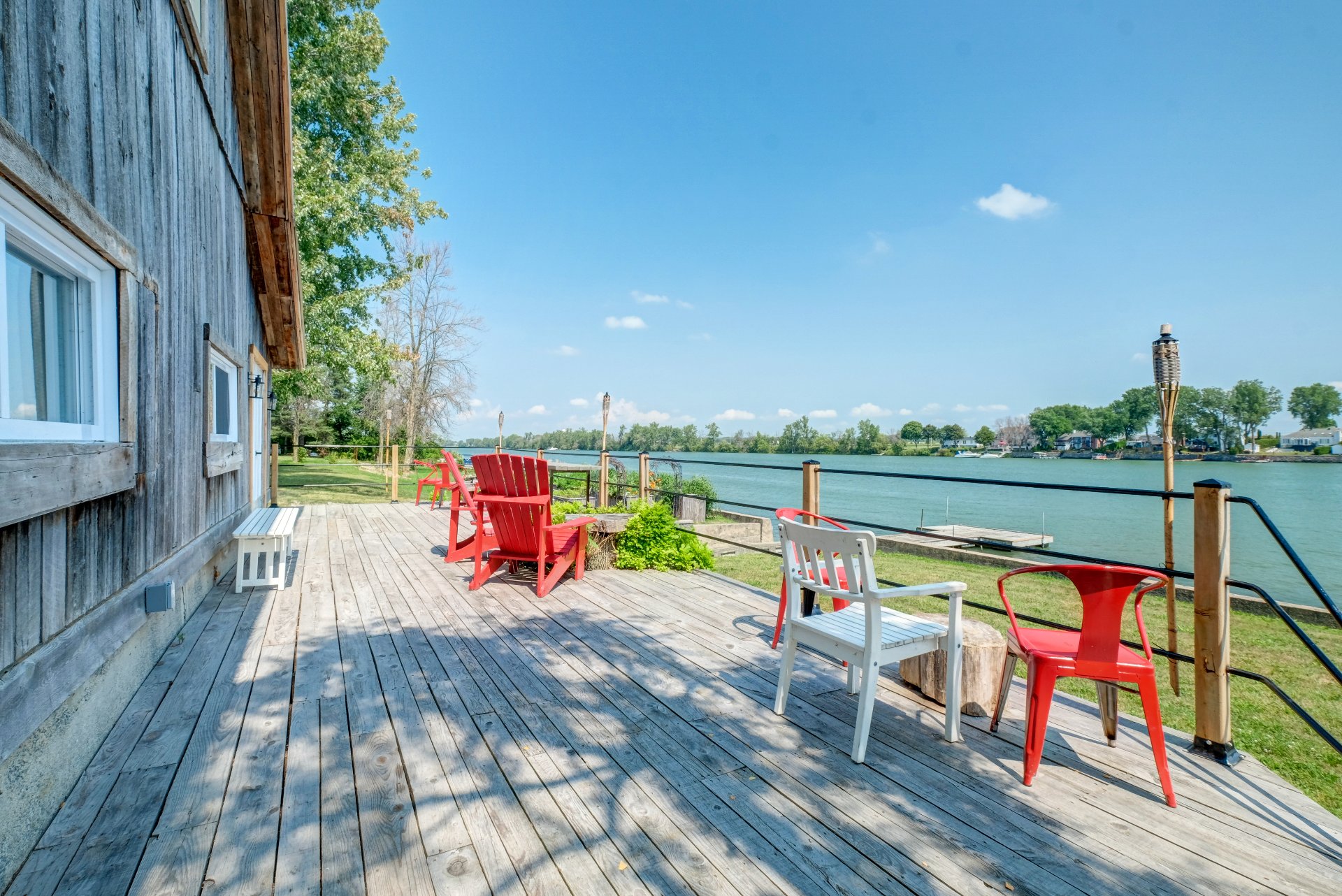 * Terrasse surdimensionnée de 92 x 12 pi offrant une vue imprenable sur la rivière.