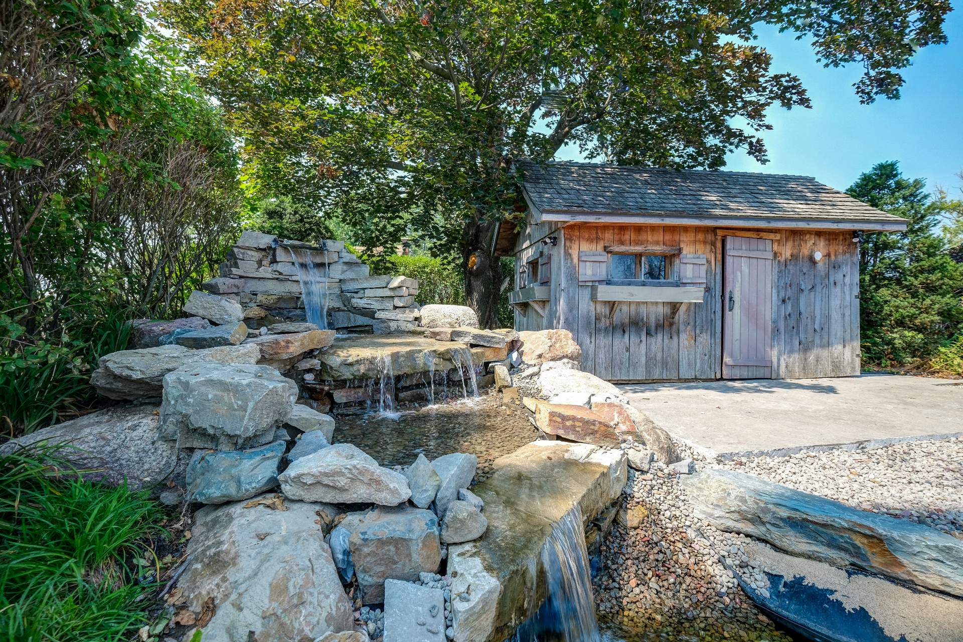 - Piscine creusée et accessoires, 2 thermopompes, fournaise à l'huile, laveuse, sécheuse, réfrigérateur, lave vaisselle, ouvre porte de garage électrique, four à bois extérieur, antennes wifi, remise, chauffe-eau, pompe de fontaine d'eau extérieure.