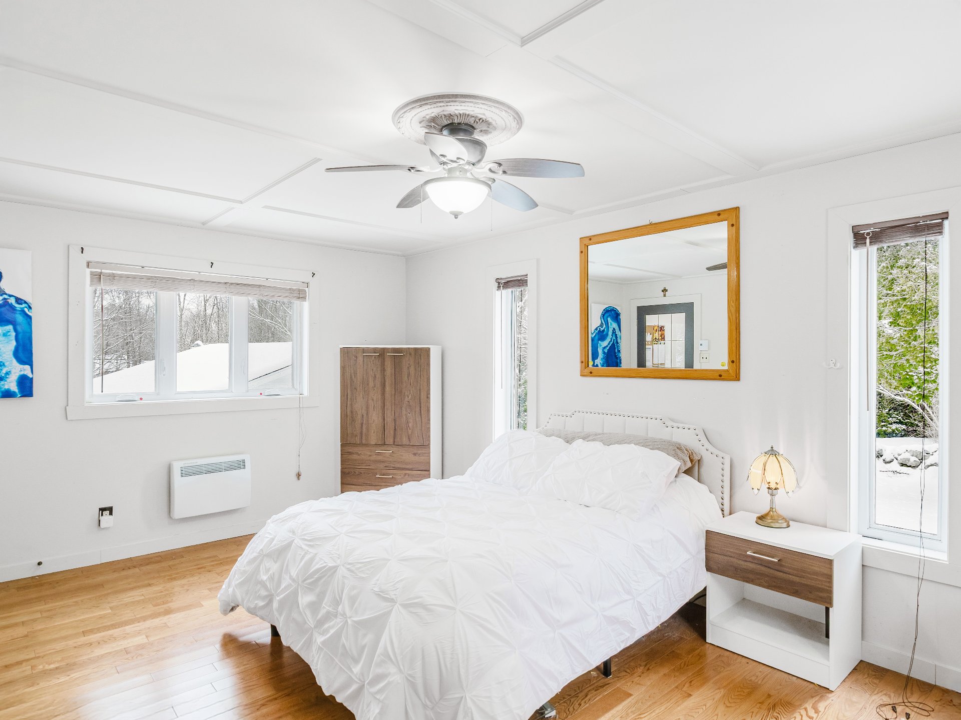 La maison offre des espaces chaleureux et lumineux, conçus pour une vie familiale conviviale ou pour recevoir en toute simplicité. Le solarium 4 saisons, baigné de lumière naturelle, constitue un lieu de détente privilégié en toute saison, avec vue sur le lac en hiver, et sur la nature environnante. Les planchers de bois franc et les foyers au bois contribuent à l'atmosphère chaleureuse et accueillante de la propriété.