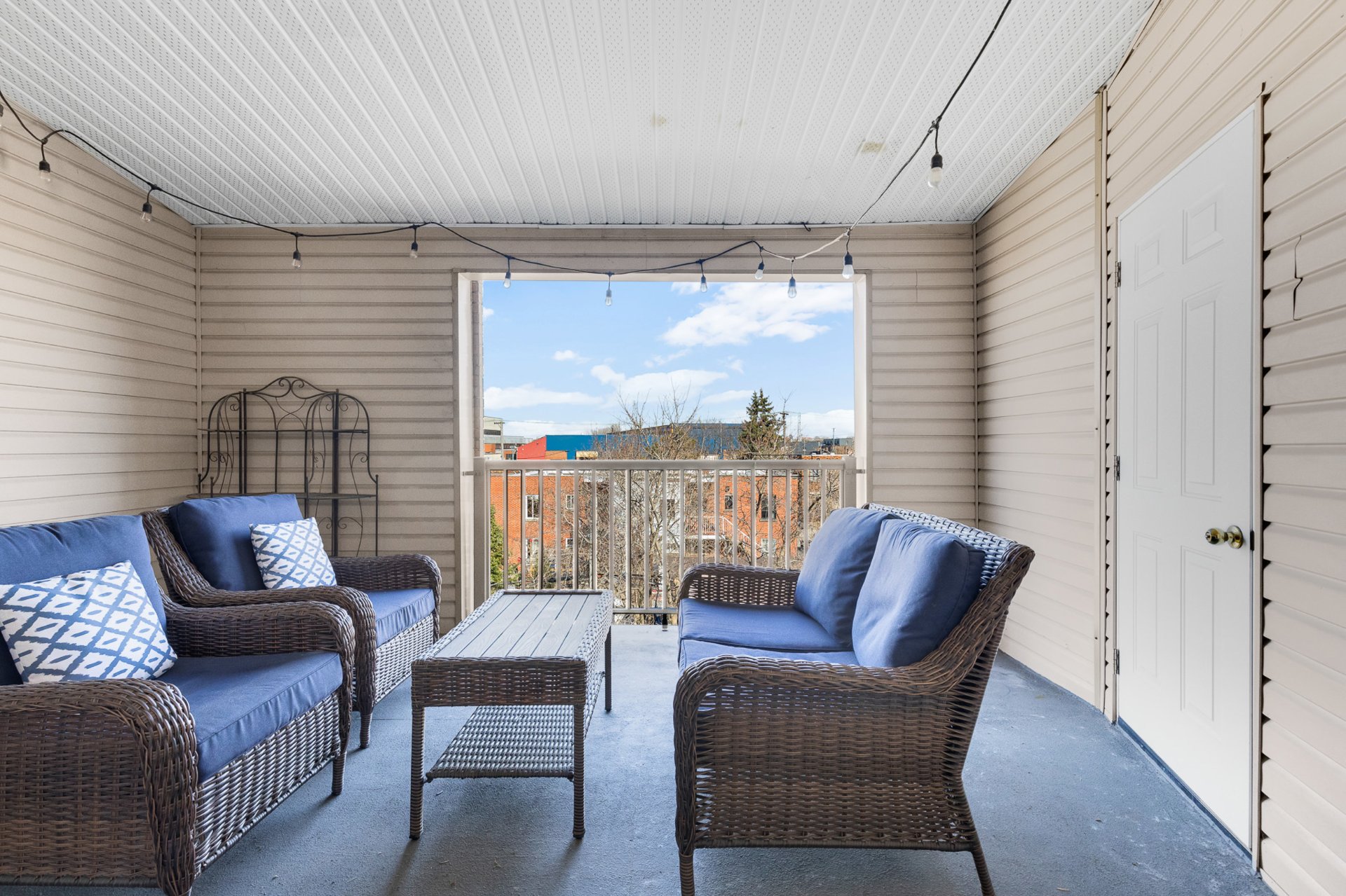 - Réfrigérateur, cuisinière, four à micro-ondes, lave-linge, sèche-linge, barbecue et rideaux.