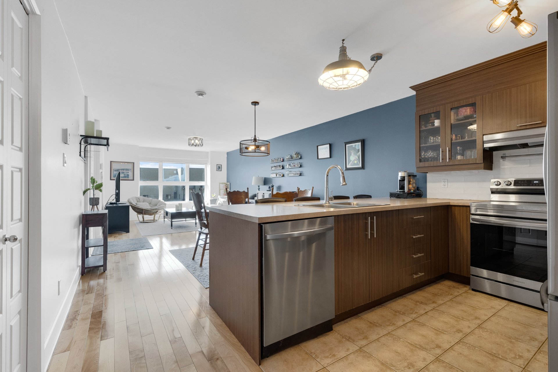 Condo spacieux et lumineux à aire ouverte avec grande cuisine à îlot, 4 places assises et rangement intégré. Vaste salon et salle à manger baignés de lumière naturelle. Chambre principale avec walk-in et accès direct à un balcon couvert privé. Salle de bain moderne avec vanité double, bain et douche séparés, ainsi que laveuse- sécheuse. À proximité du canal de Lachine, des parcs, commerces et transports en commun.