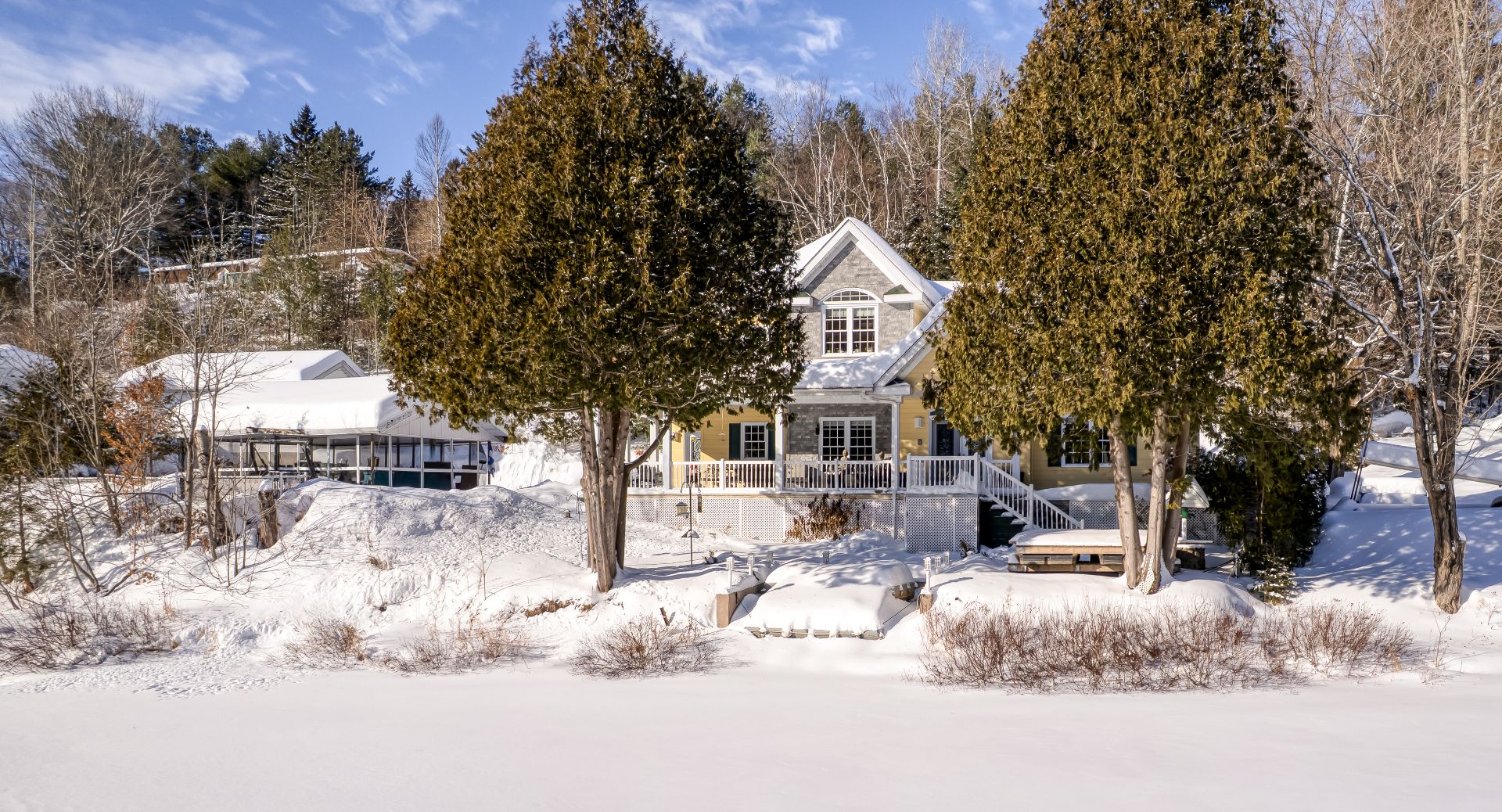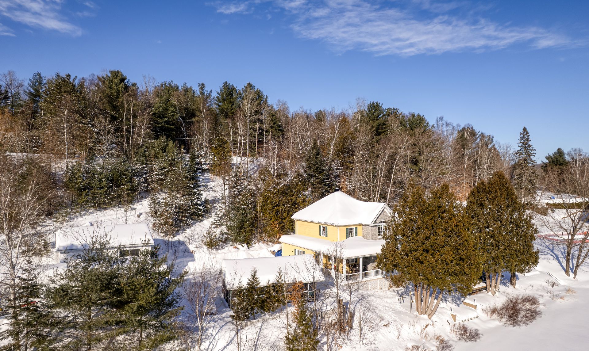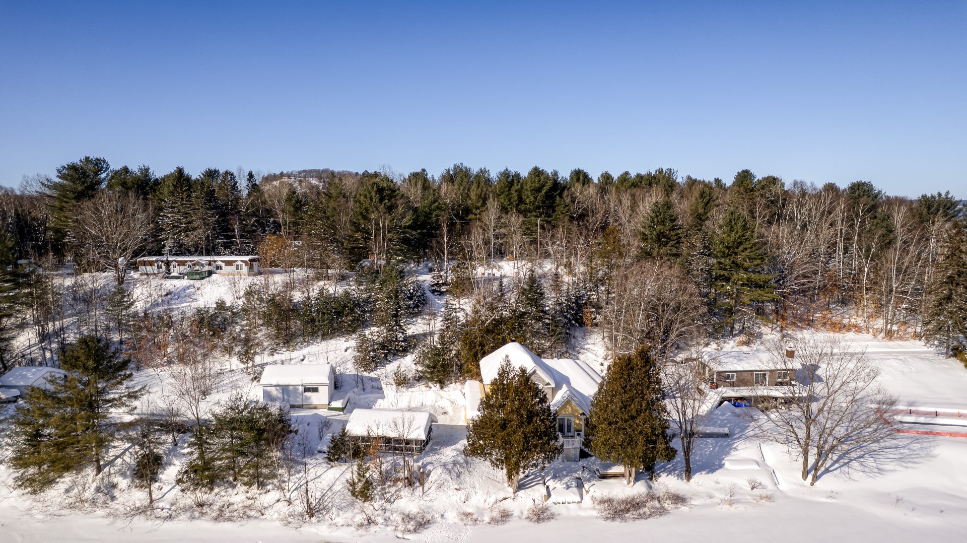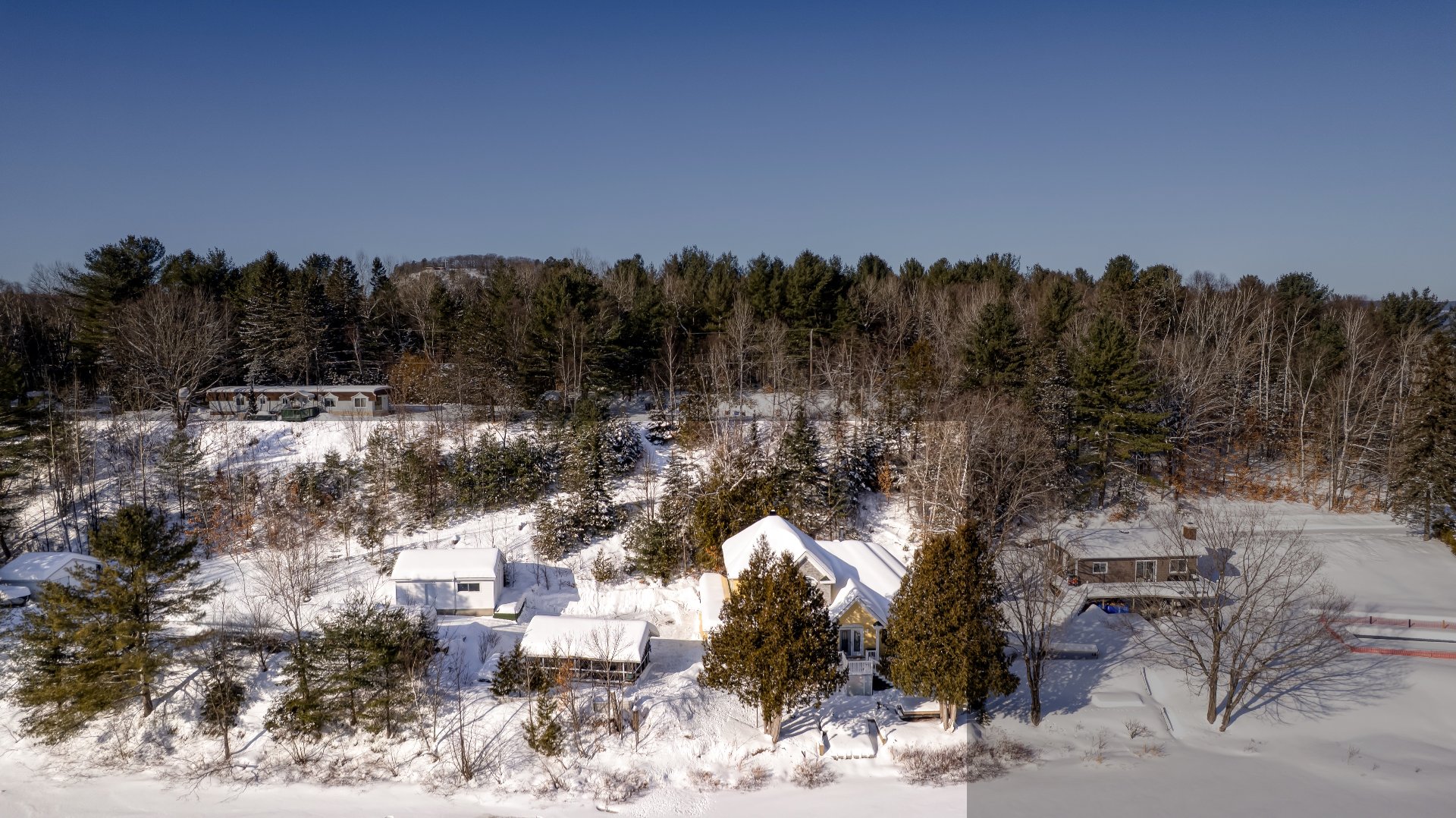 Implantée à bonne distance de la rue et des propriétés voisines, la résidence bénéficie d'un environnement boisé assurant calme, intimité et tranquillité d'esprit. Un accès privilégié au lac Noir vient compléter cet ensemble, ajoutant une dimension récréative recherchée et un art de vivre en parfaite harmonie avec l'eau et la nature.
