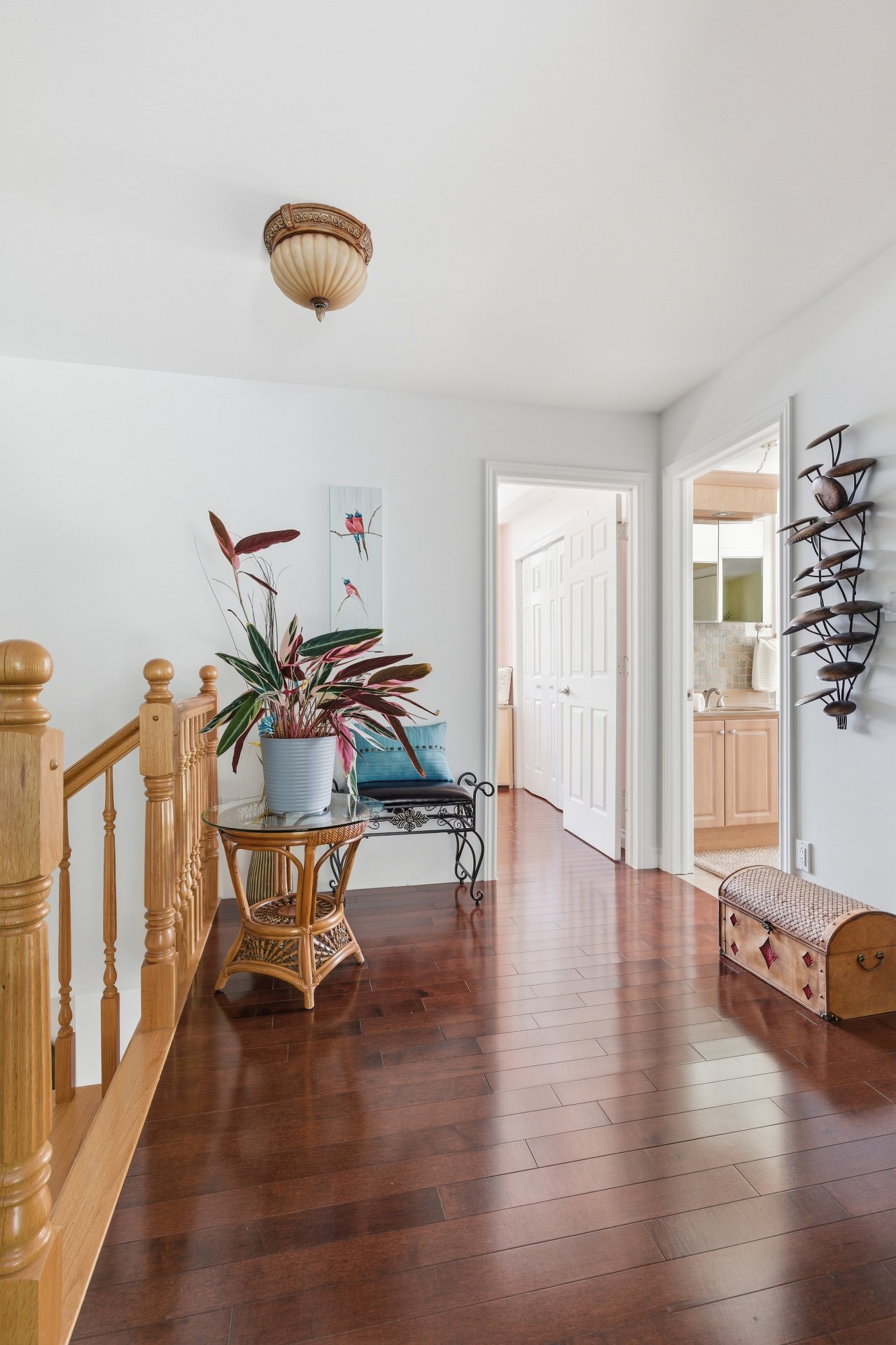 À l'étage, deux chambres à coucher supplémentaires, une grande salle de bains attenante à l'une d'elles, ainsi qu'une salle familiale en mezzanine offrent des espaces confortables et bien pensés pour la famille ou les invités.
