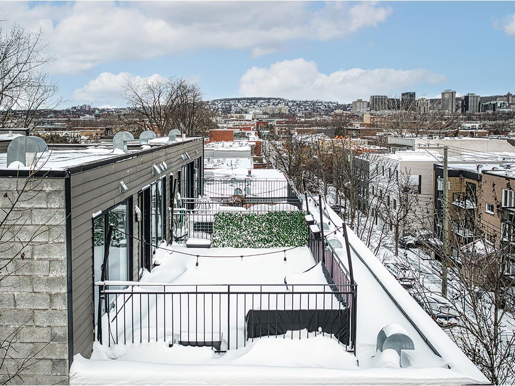 Ce condo sur deux niveaux offre une terrasse privée sur le toit avec une vue imprenable sur le centre-ville de Montréal, offrant l'opportunité idéale de profiter d'un café matinal ou d'une soirée conviviale 5 à 7 en été tout en admirant les vues spectaculaires depuis votre terrasse.