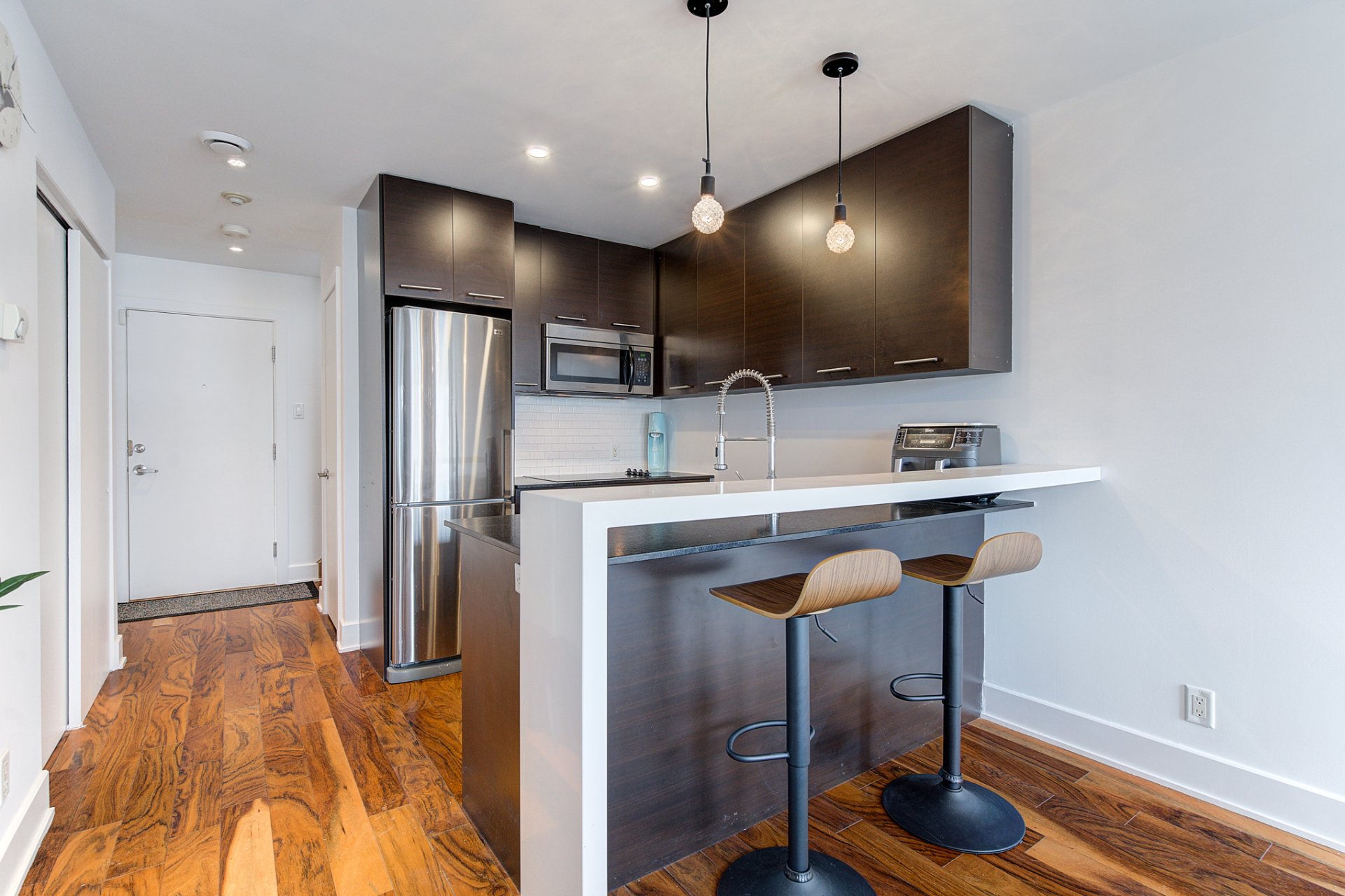 Cette unité de condo est un véritable joyau rare sur le marché immobilier. Elle s'étend sur deux étages et dispose d'une terrasse spacieuse offrant une vue imprenable sur le centre-ville de Montréal. Le condo comprend une chambre à coucher et une salle de bain. Très bien entretenu avec des finitions haut de gamme qui sont au goût du jour. L'emplacement est de premier choix, avec toutes les commodités et services à proximité. Le marché Atwater et plusieurs excellents restaurants se trouvent à seulement 5 minutes à pied, tandis que la station de métro Lionel-Groulx est à environ 10 minutes de marche. Ne manquez pas cette opportunité !