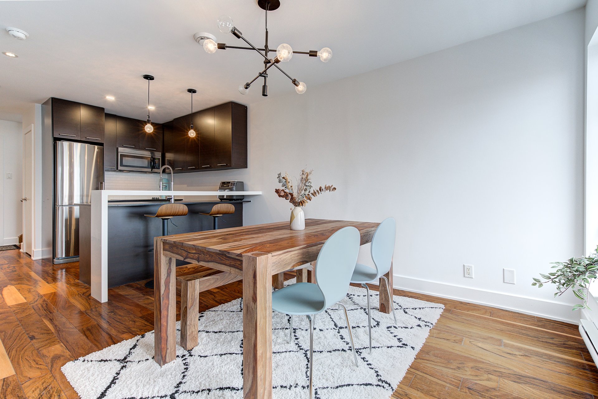 Une rénovation majeure a été entreprise en 2016 pour moderniser la salle de bain, remplacer le plancher, agrandir le garde-robe et ouvrir un mur pour agrandir la salle à manger et créer un espace à aire ouverte.