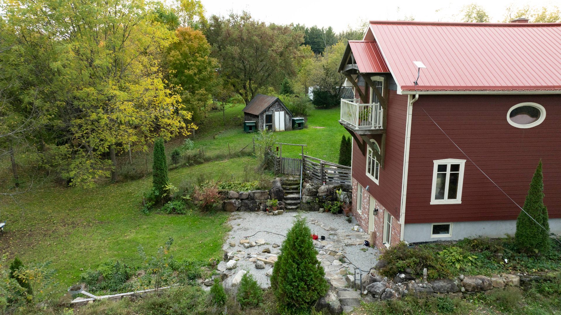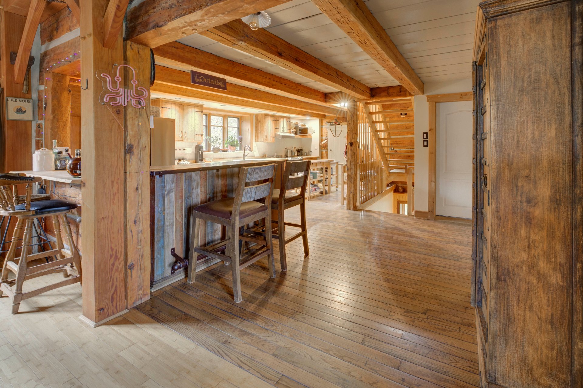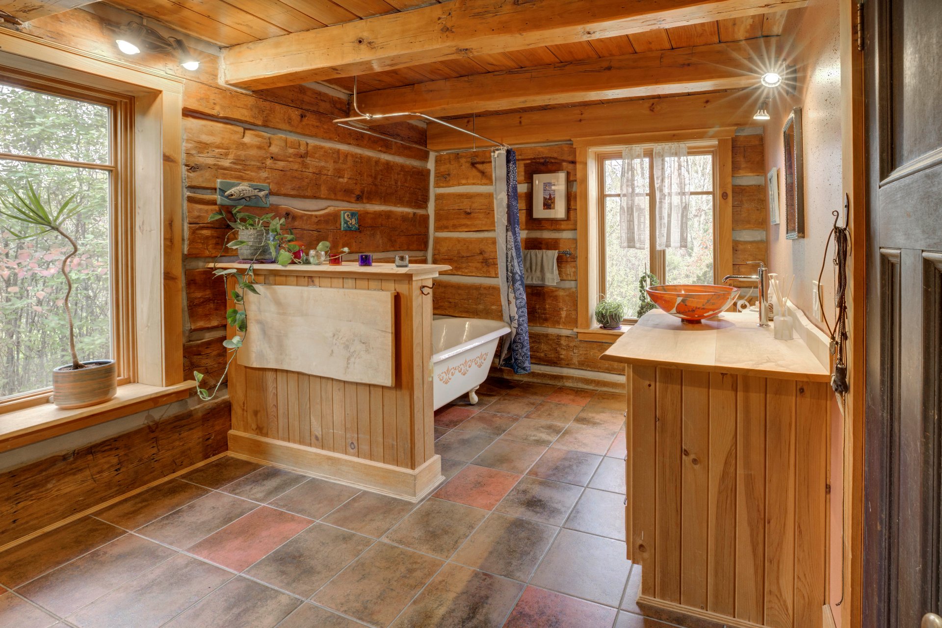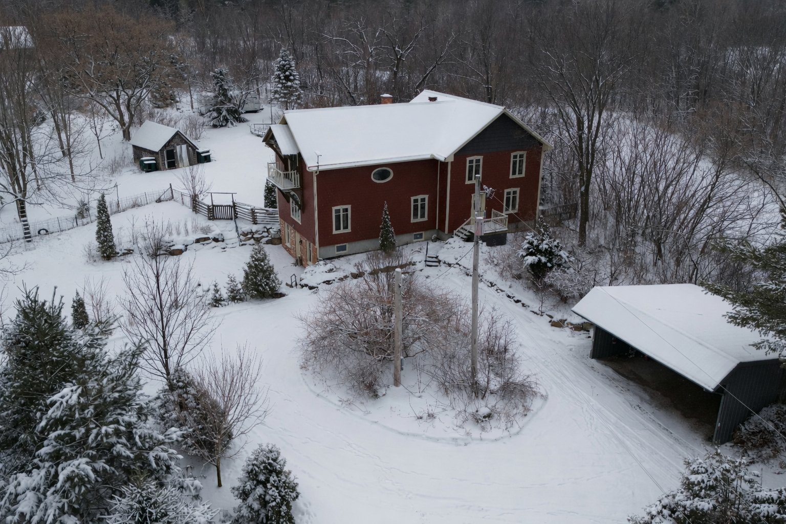 Domaine exceptionnel de 145 acres avec maison en retrait de la route pour une tranquilité absolue. La maison originale a été surélevée et a été intégrée à une nouvelle construction de type "timber frame". Poutres apparentes, plafonds cathédrale, escaliers en érable piqué massif, boiseries, foyer de masse en brique et espace de vie à aire ouverte sont tous des éléments qui donnent une ambiance chaleureuse à cette spacieuse propriété. L'immense chambre des maîtres offre de multiples possibilités d'aménagement en plus d'un accès à son propre petit balcon. Érigée à flanc de colline, le sous-sol bénéficie d'un accès au niveau du sol.
