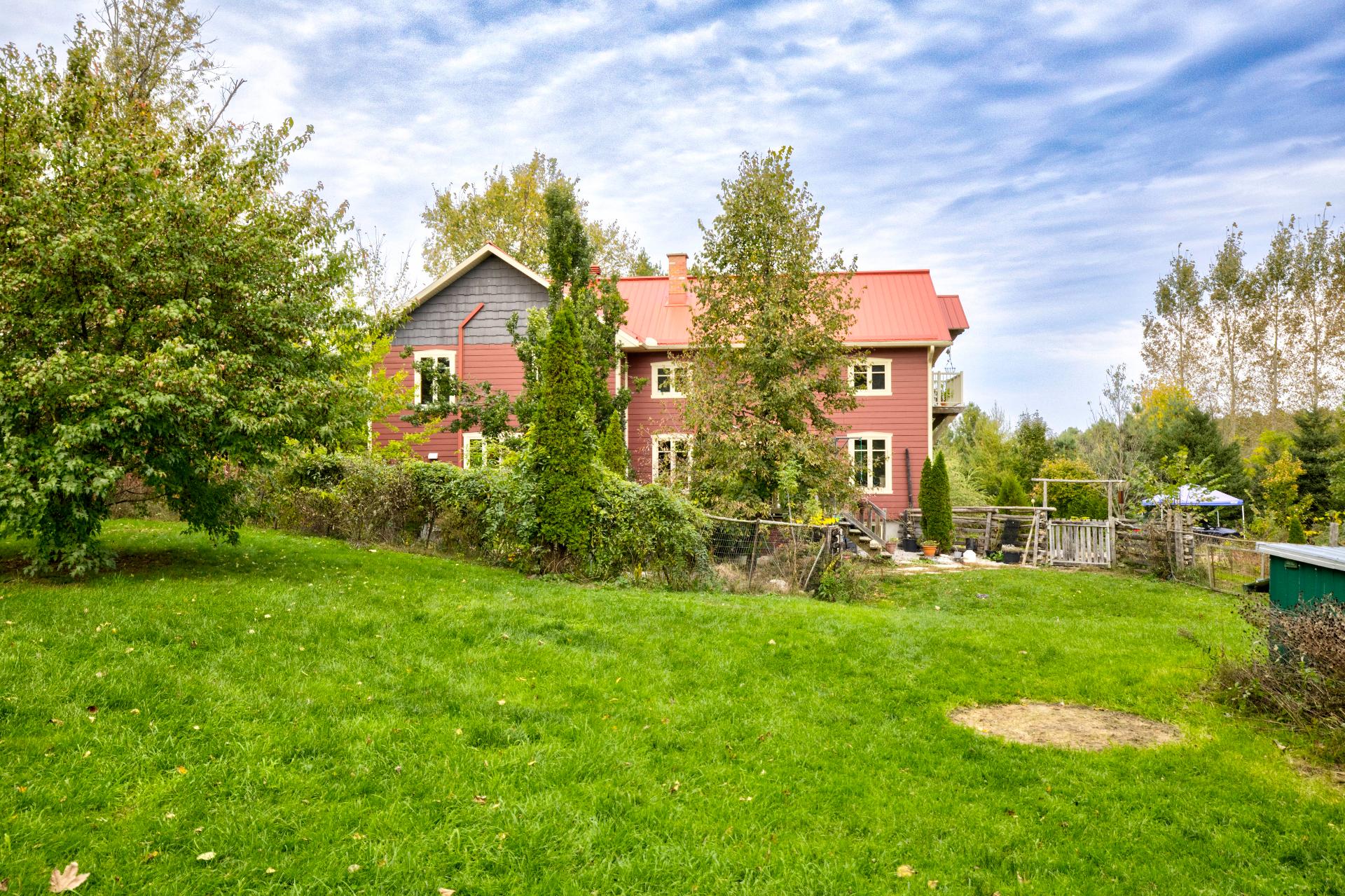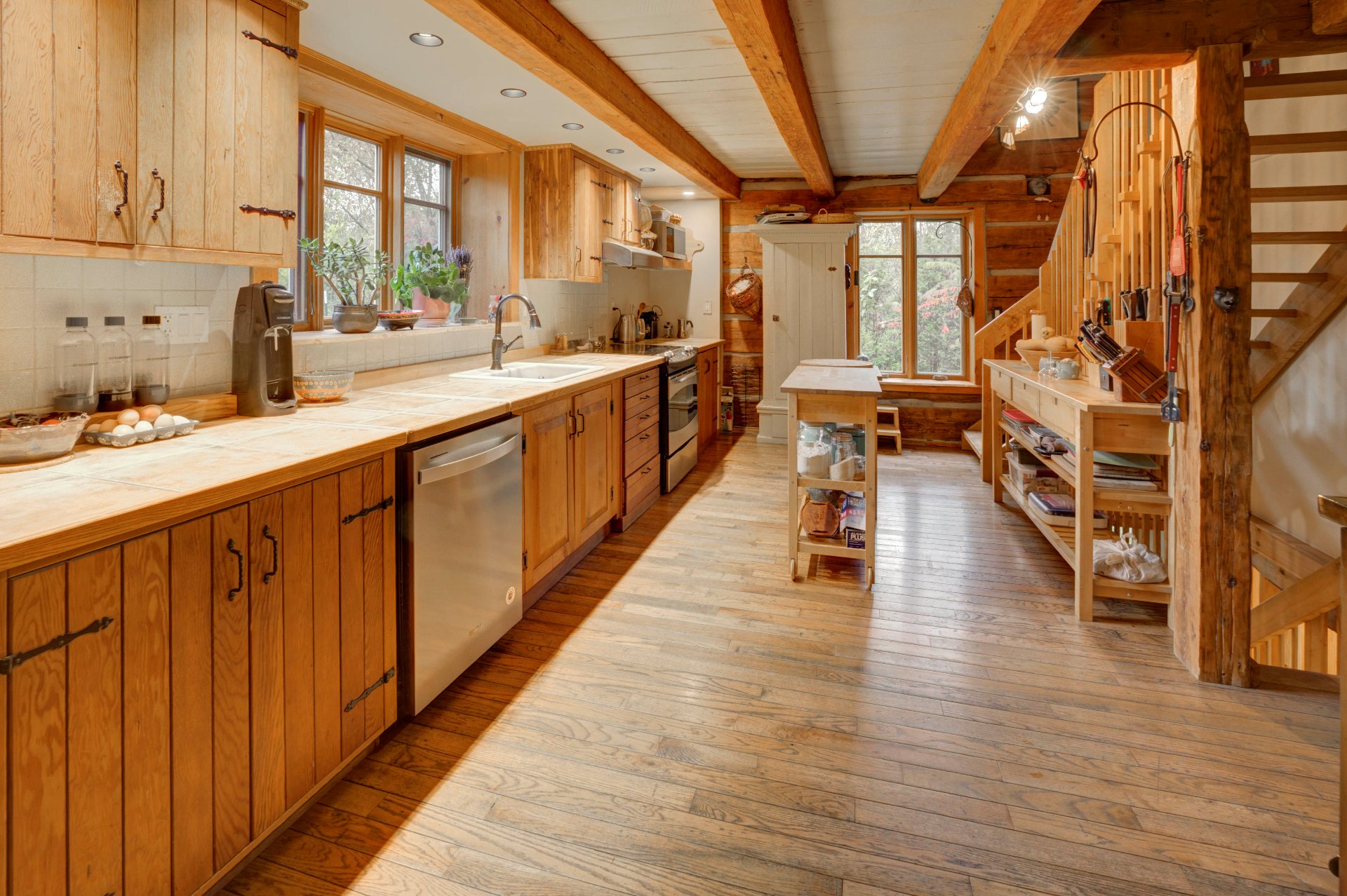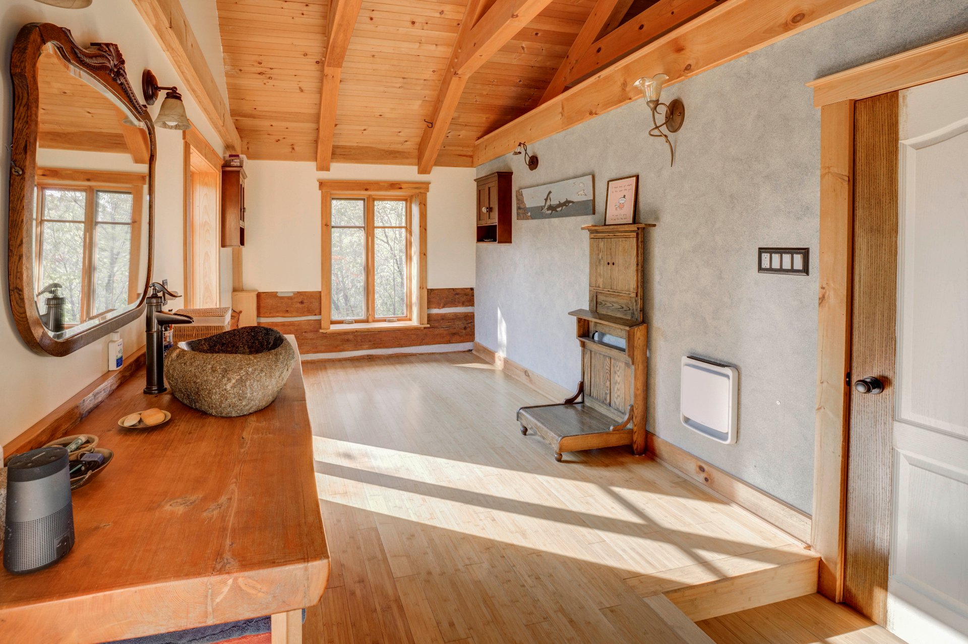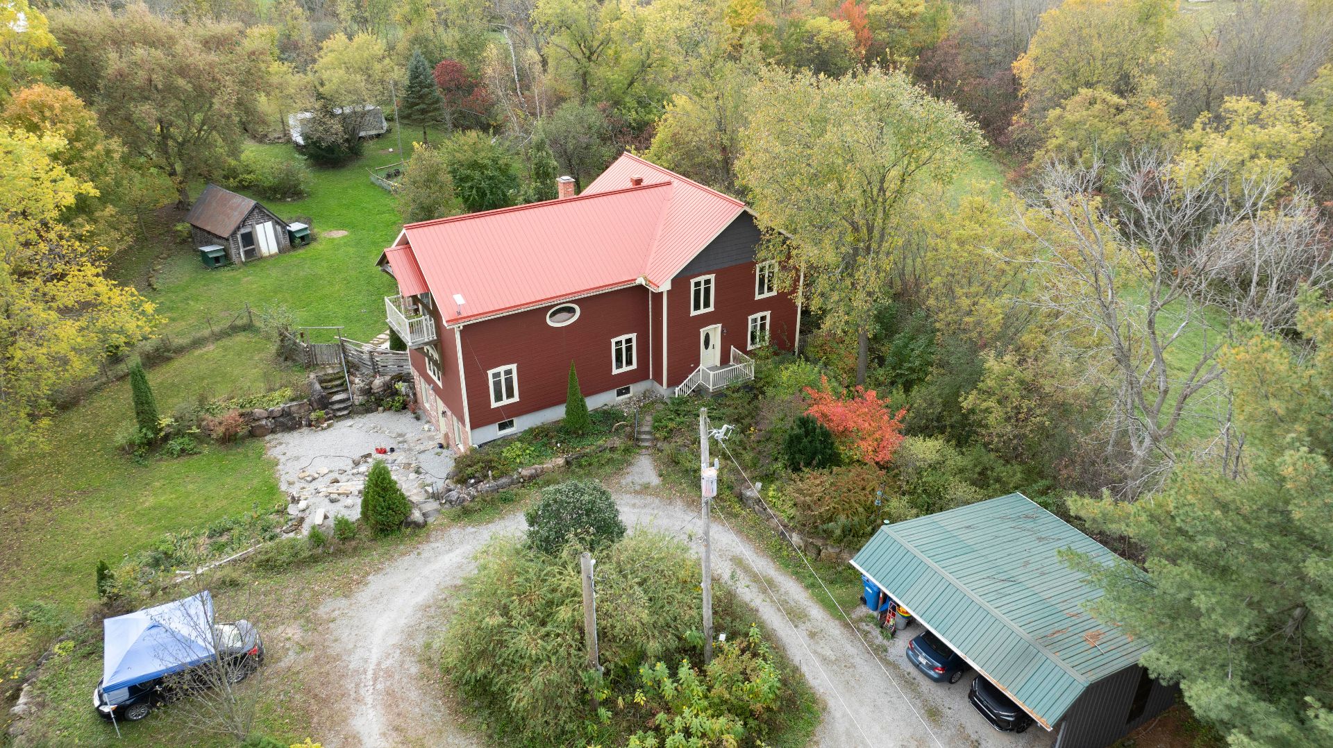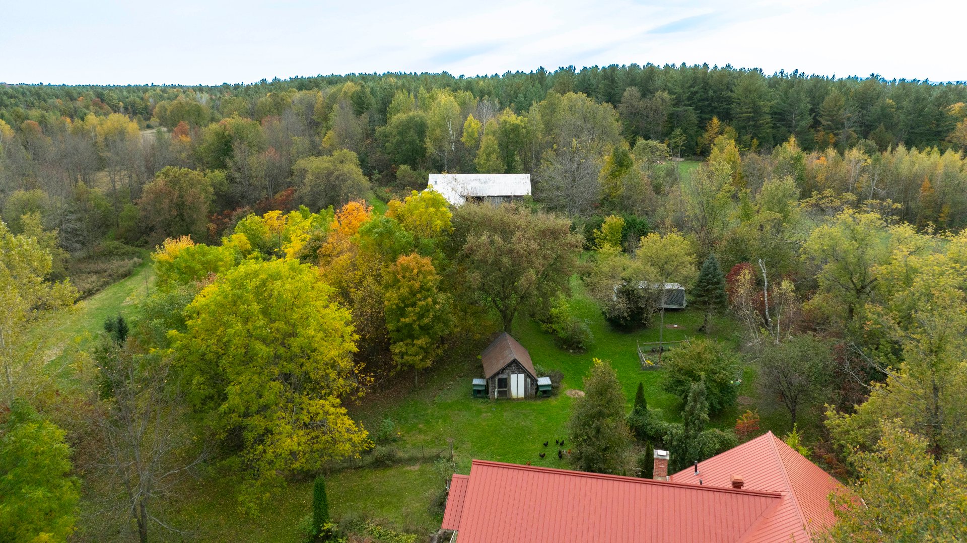 Domaine exceptionnel de 145 acres avec maison en retrait de la route pour une tranquilité absolue. La maison originale a été surélevée et a été intégrée à une nouvelle construction de type "timber frame". Poutres apparentes, plafonds cathédrale, escaliers en érable piqué massif, boiseries, foyer de masse en brique et espace de vie à aire ouverte sont tous des éléments qui donnent une ambiance chaleureuse à cette spacieuse propriété. L'immense chambre des maîtres offre de multiples possibilités d'aménagement en plus d'un accès à son propre petit balcon. Érigée à flanc de colline, le sous-sol bénéficie d'un accès au niveau du sol.