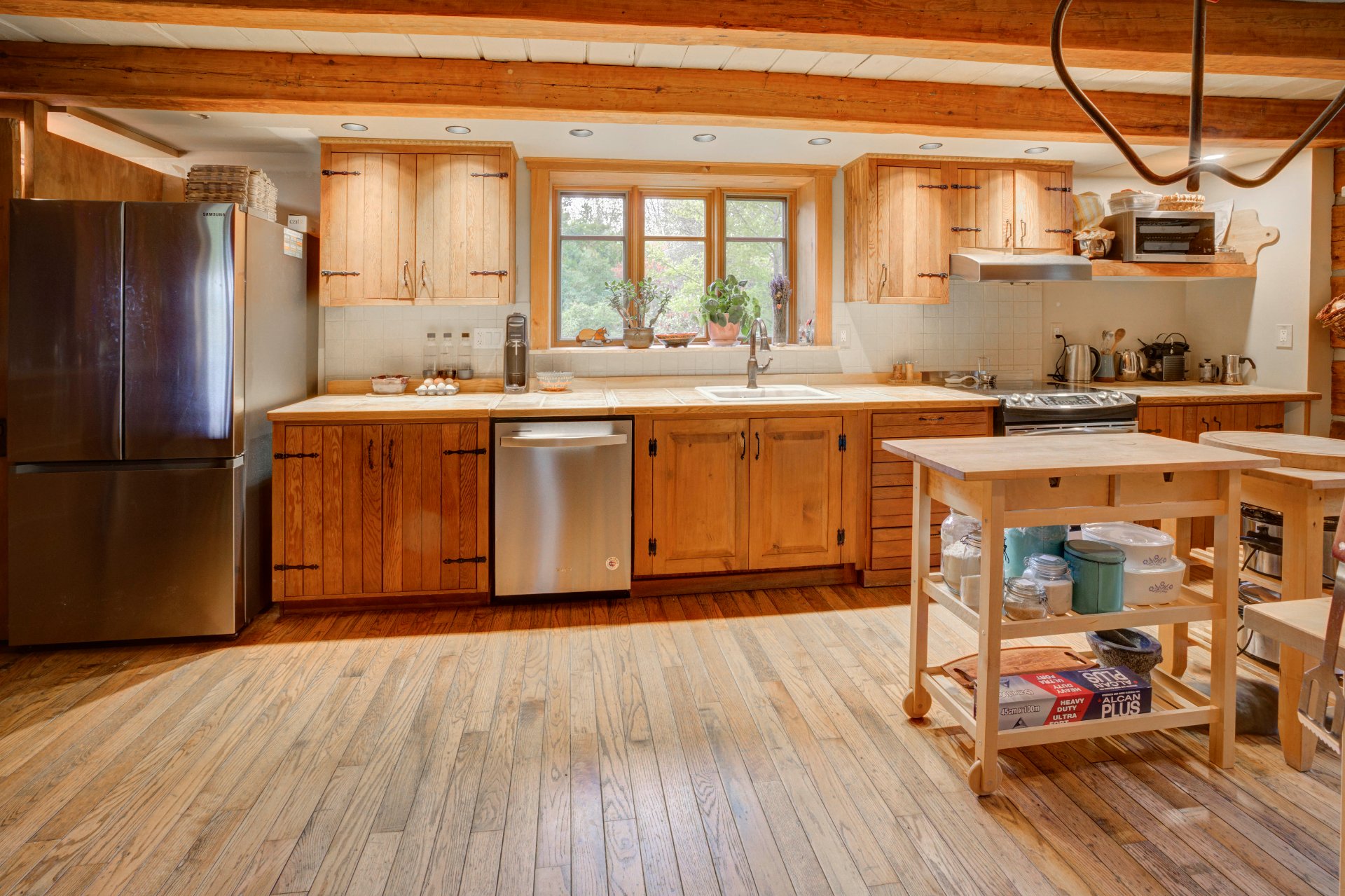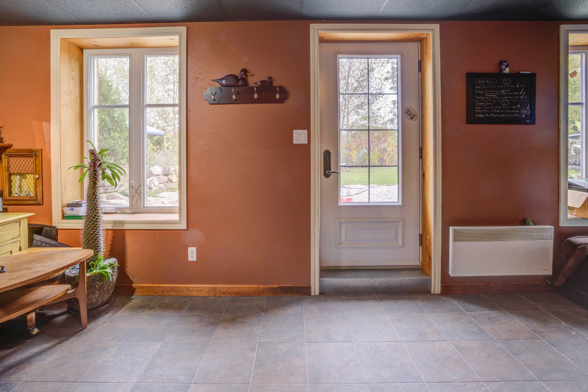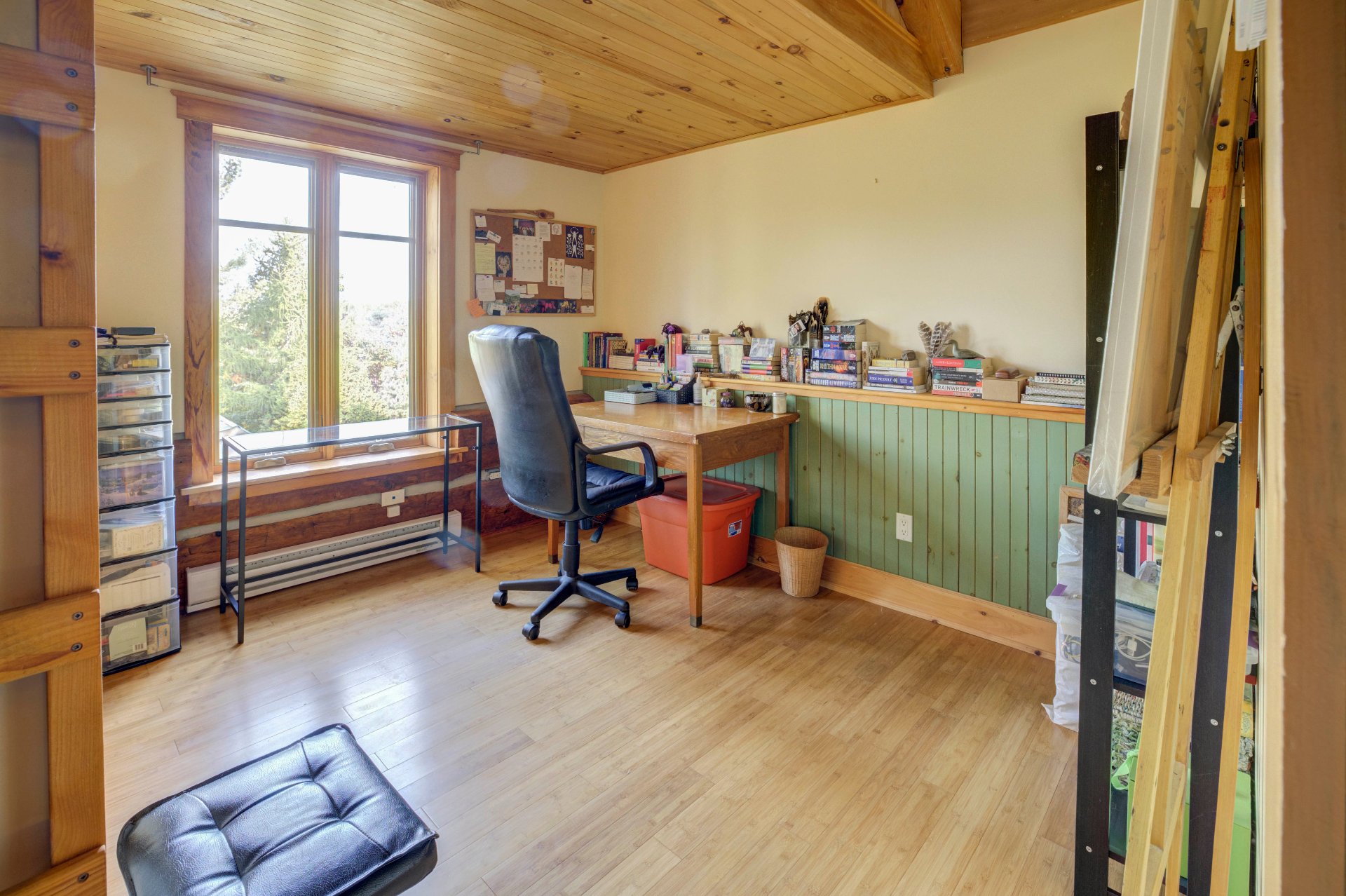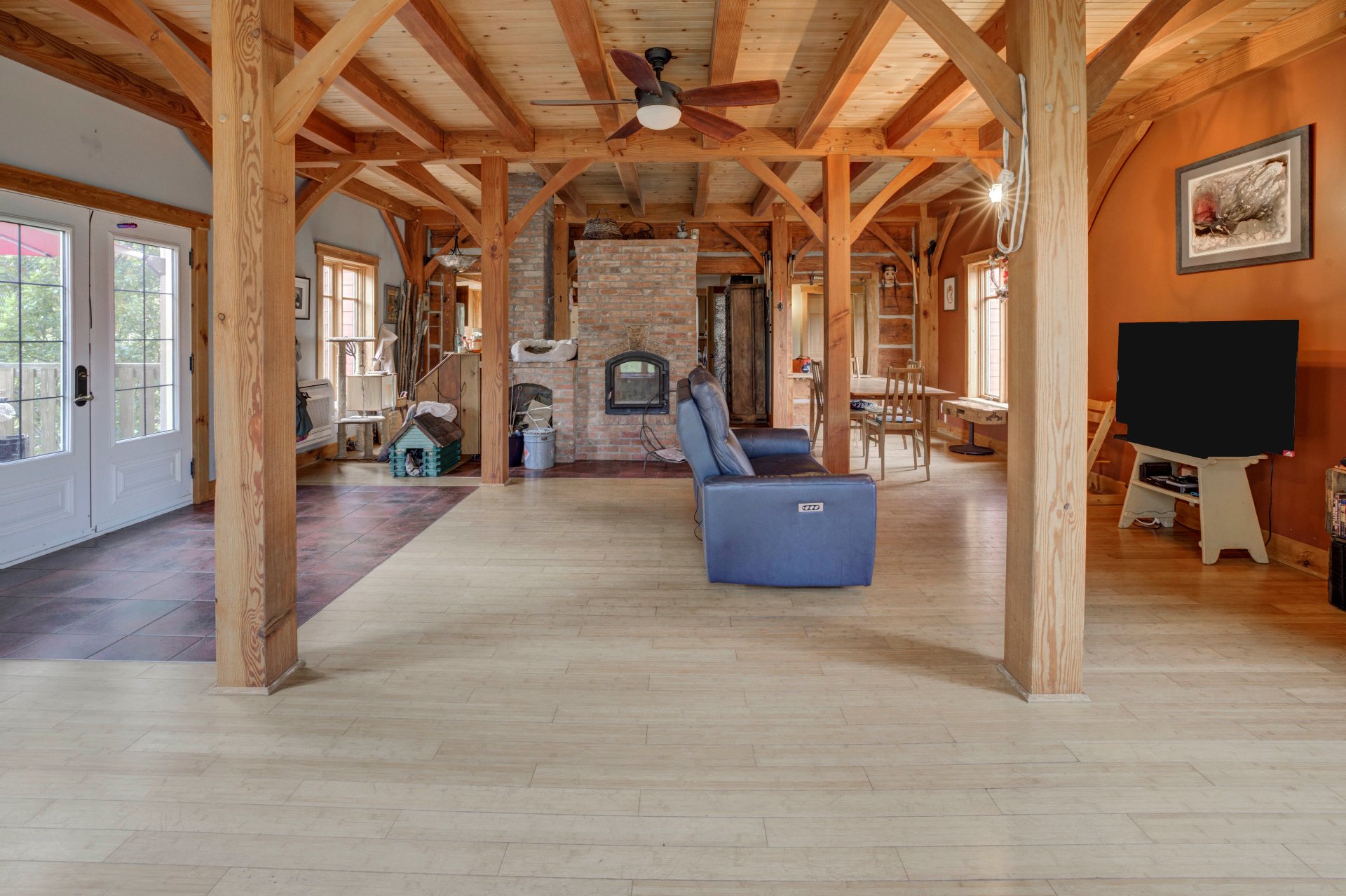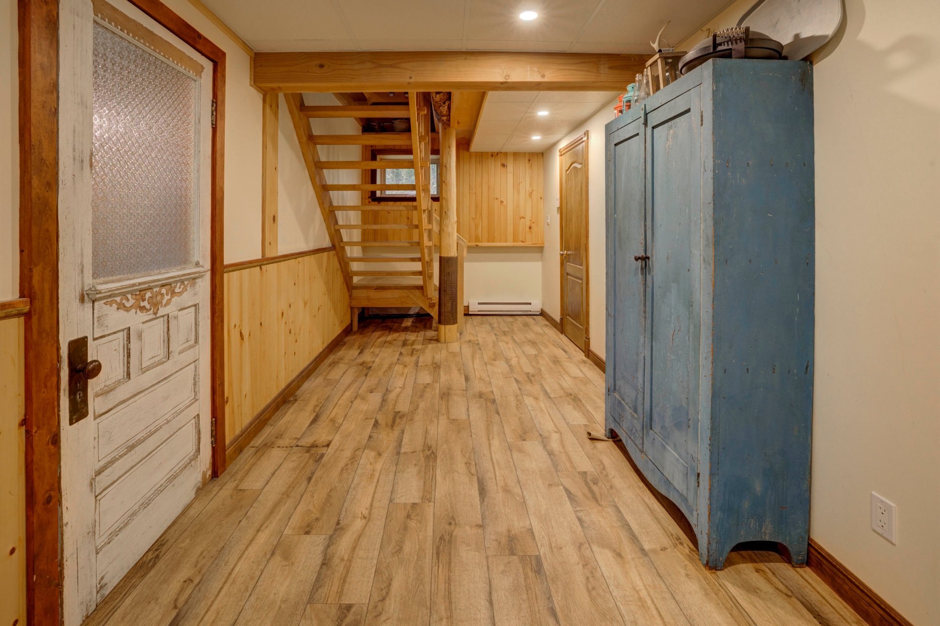 Domaine exceptionnel de 145 acres avec maison en retrait de la route pour une tranquilité absolue. La maison originale a été surélevée et a été intégrée à une nouvelle construction de type "timber frame". Poutres apparentes, plafonds cathédrale, escaliers en érable piqué massif, boiseries, foyer de masse en brique et espace de vie à aire ouverte sont tous des éléments qui donnent une ambiance chaleureuse à cette spacieuse propriété. L'immense chambre des maîtres offre de multiples possibilités d'aménagement en plus d'un accès à son propre petit balcon. Érigée à flanc de colline, le sous-sol bénéficie d'un accès au niveau du sol.